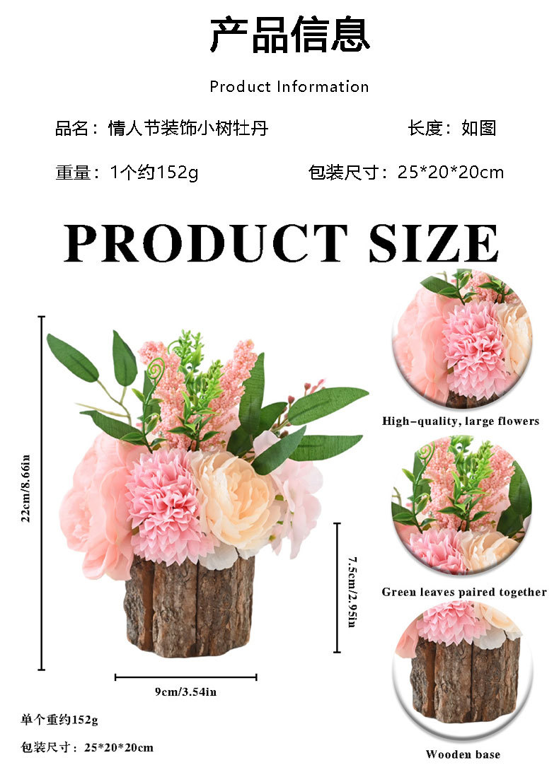 Día de San Valentín simulación de peonía bola crisântemo verde plantación en maceta muelle decorativa decoración de escritorio para el hogar Navidad transfronteriza