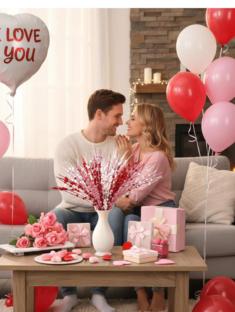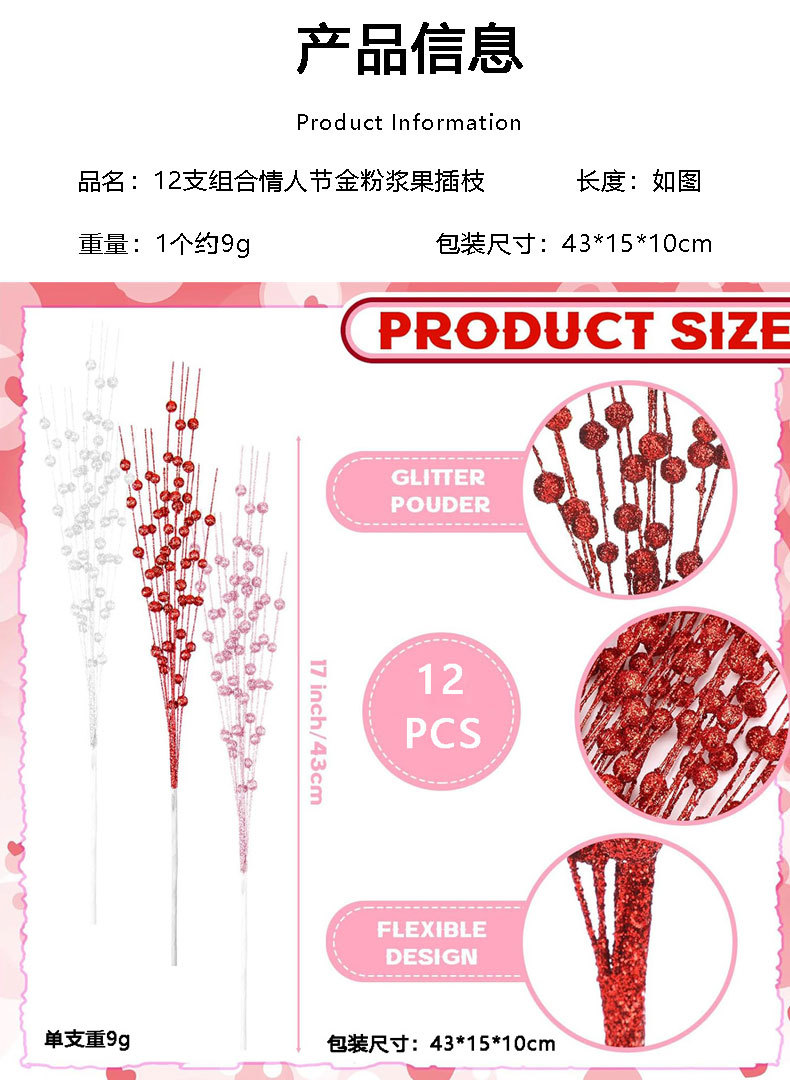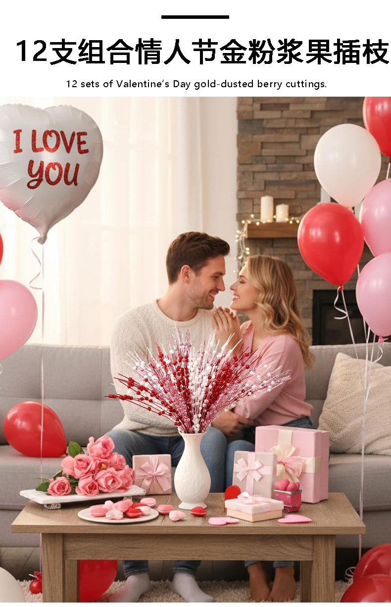 12 días de San Valentín simulación de bayas enchufe de festividad atmósfera decoración escenario de diseño de polvo de oro de amor transfronterizo