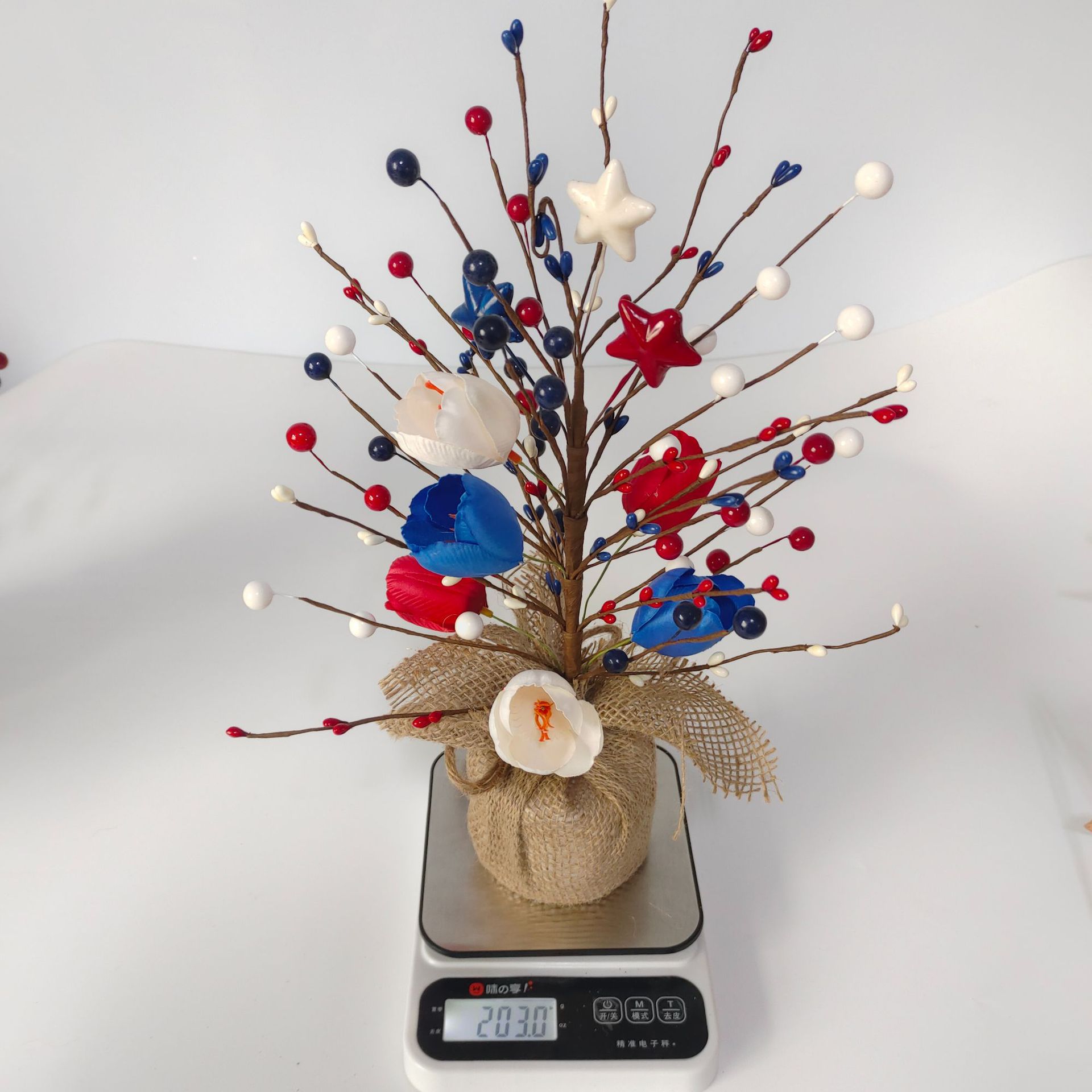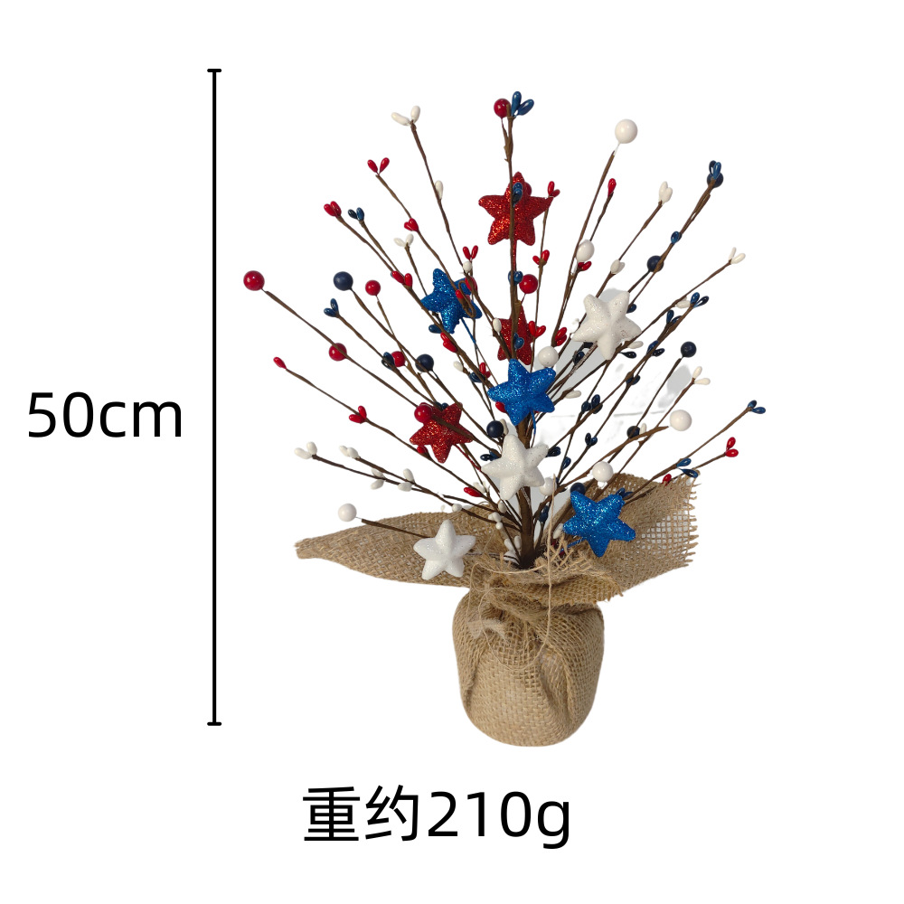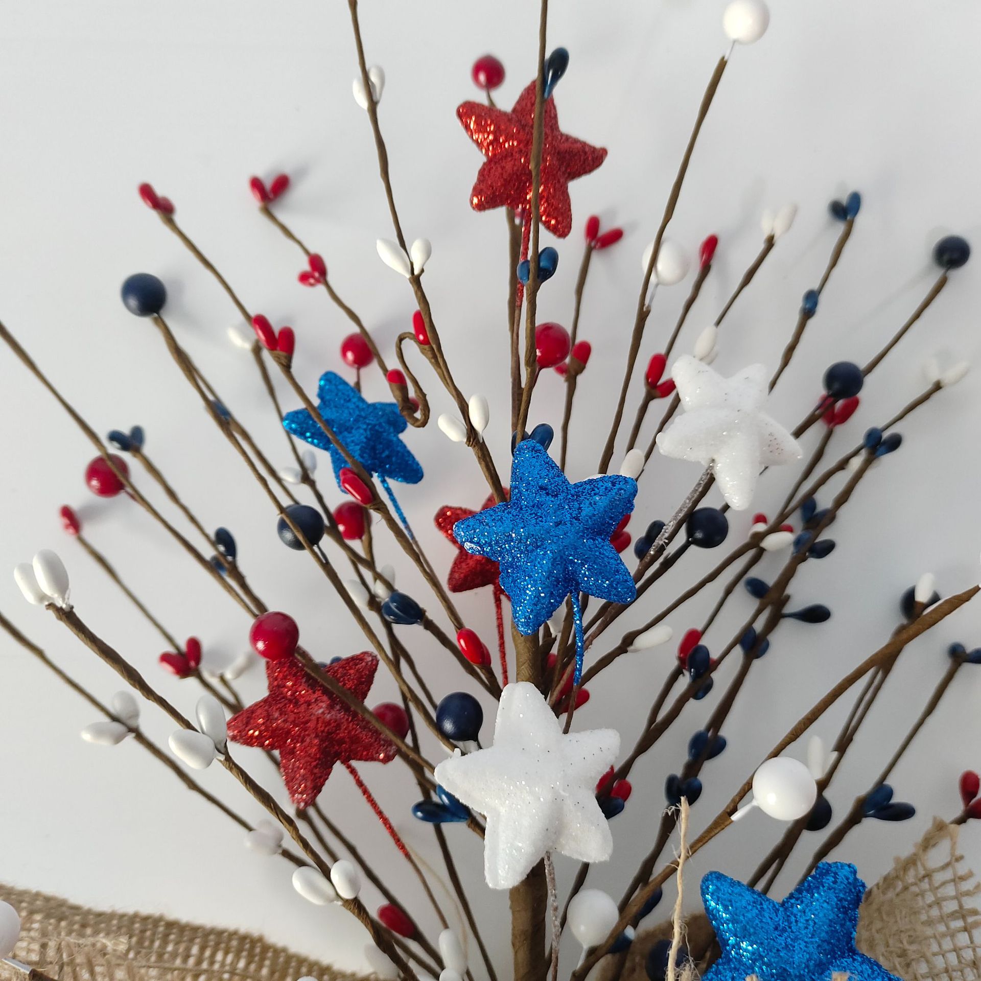 Adornos del Día de la Independencia de EE. UU. Ramas rojas, blancas y azules Adornos de la fiesta del Día Nacional de EE. UU. Pulpa de cinco estrellas