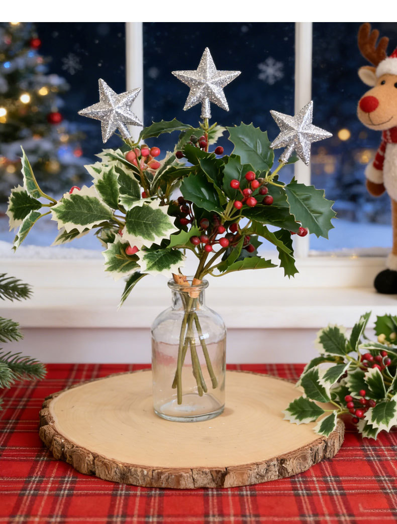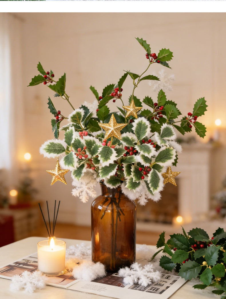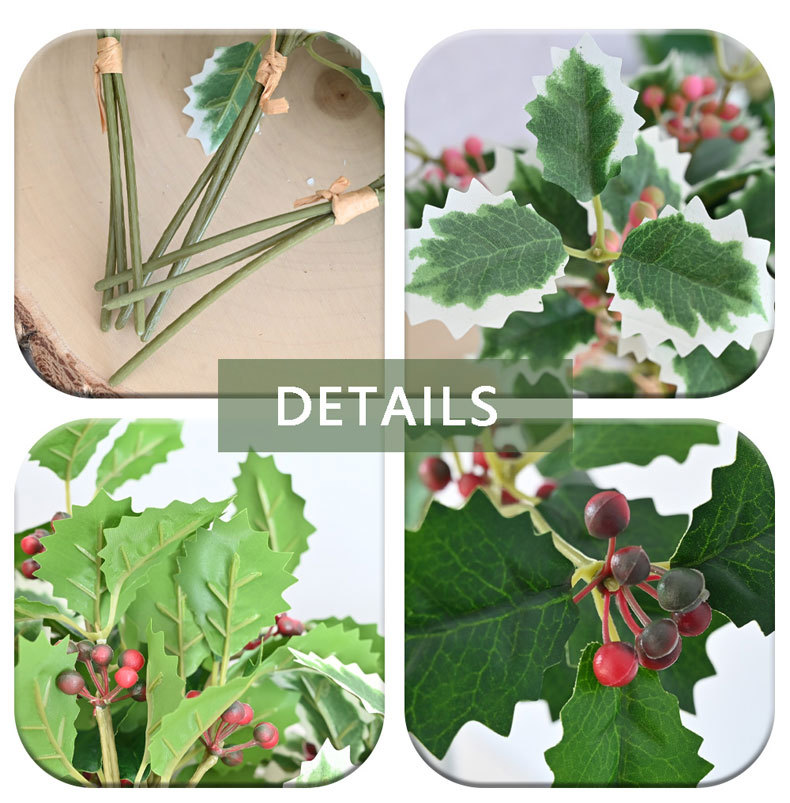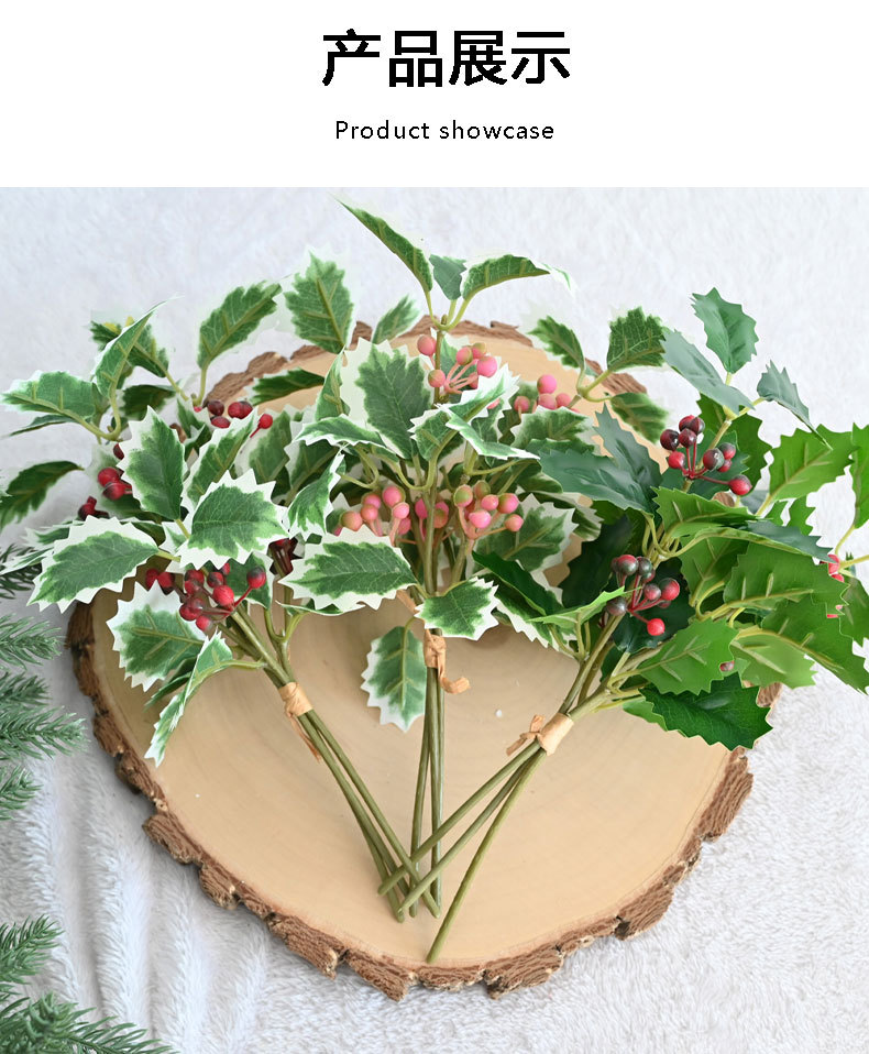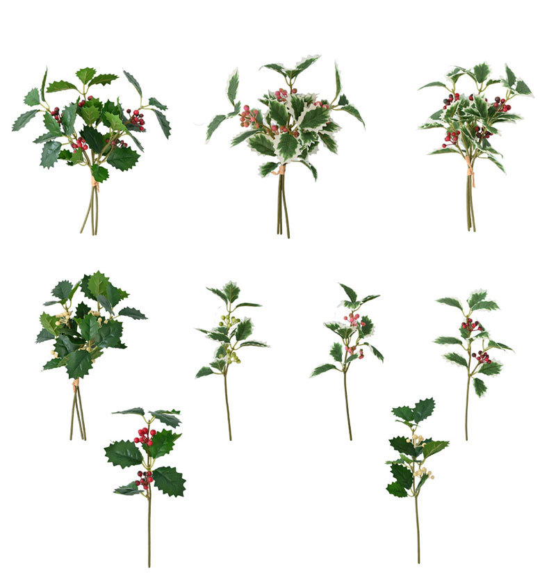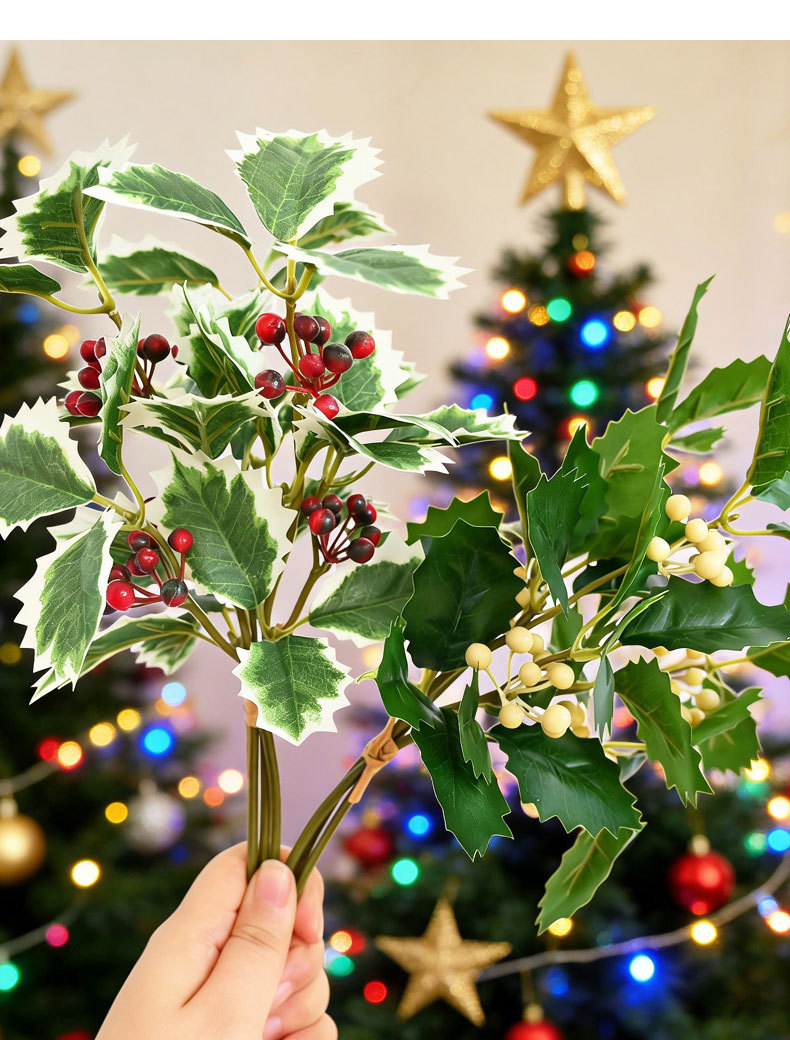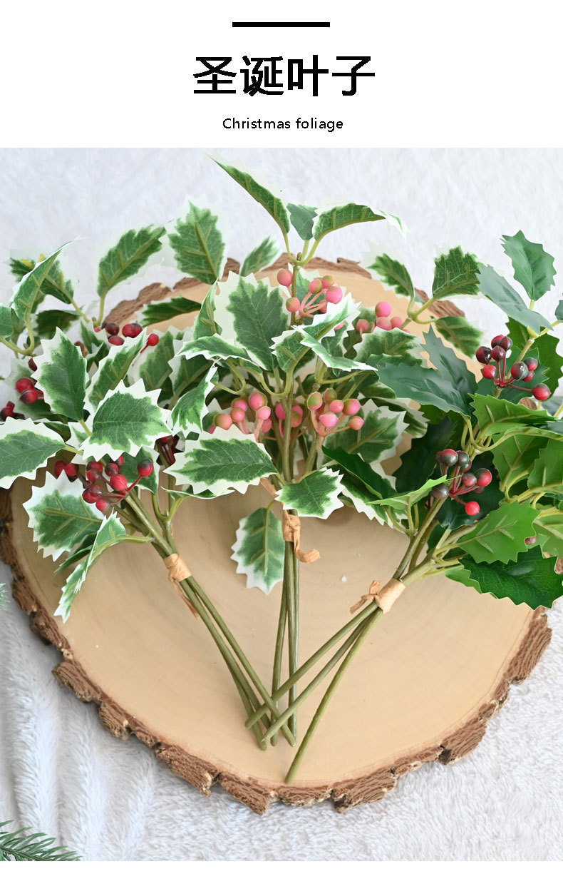 Hoja de Navidad bayas imitación verde fruta roja decoración del hogar árbol de Navidad decoración de mesa diy ramo de fiesta