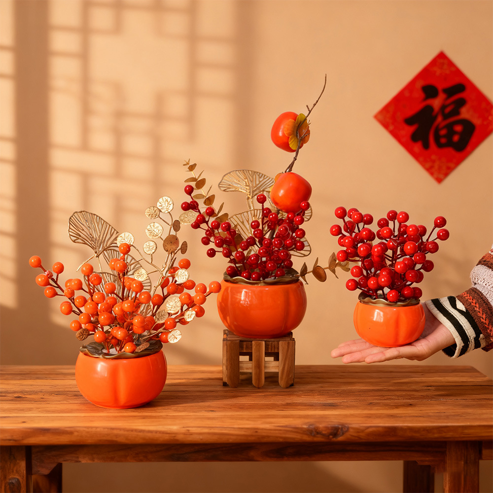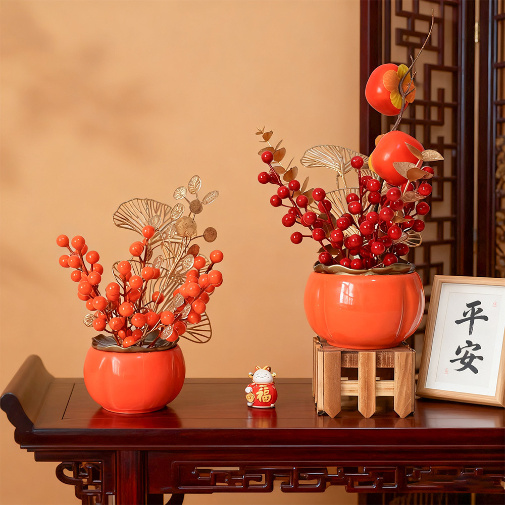 Flores de imitación de flores de fruta de riqueza de vacaciones de Año Nuevo decoración de casa de boda barril de caqui ornamentos de decoración de decoración
