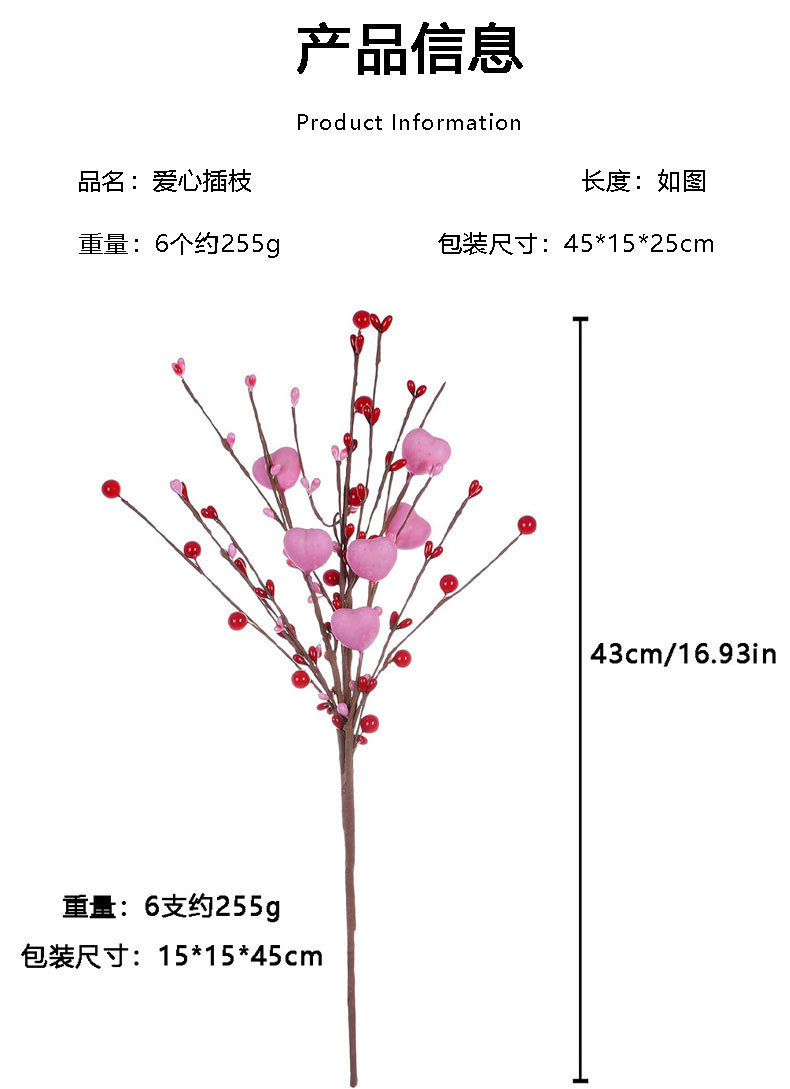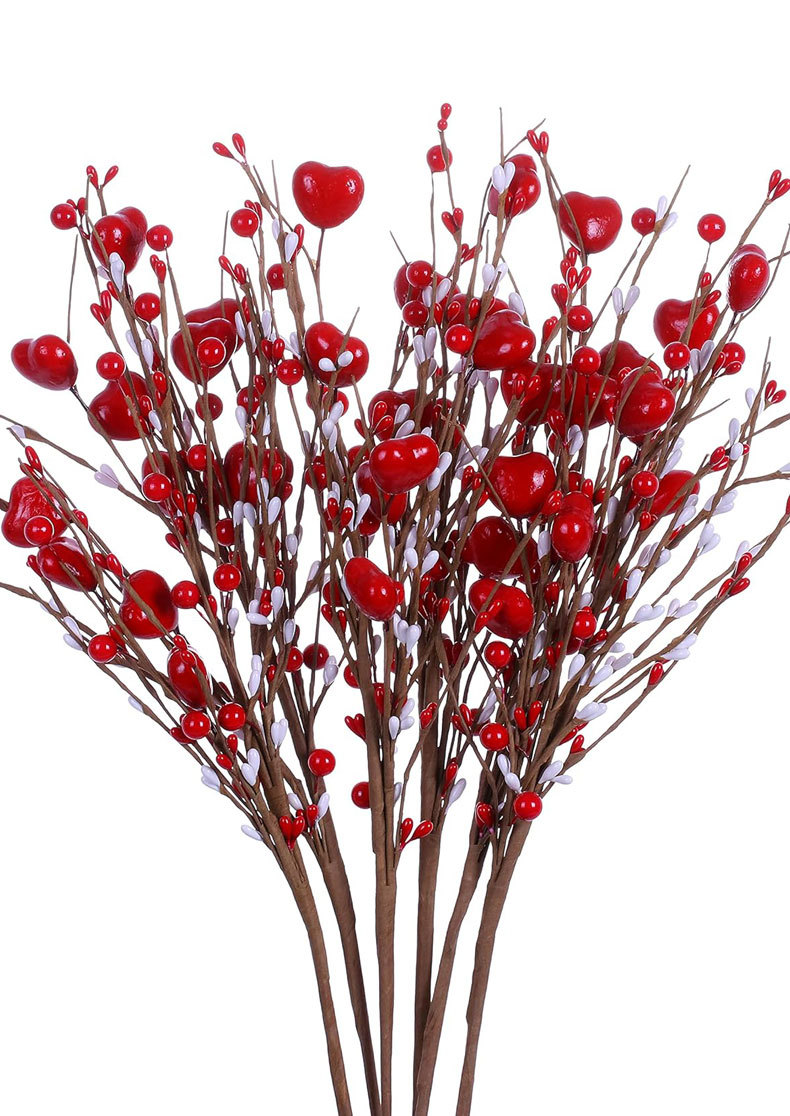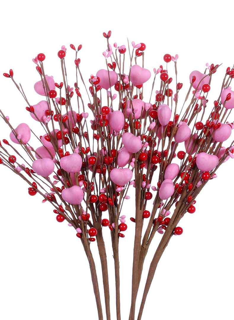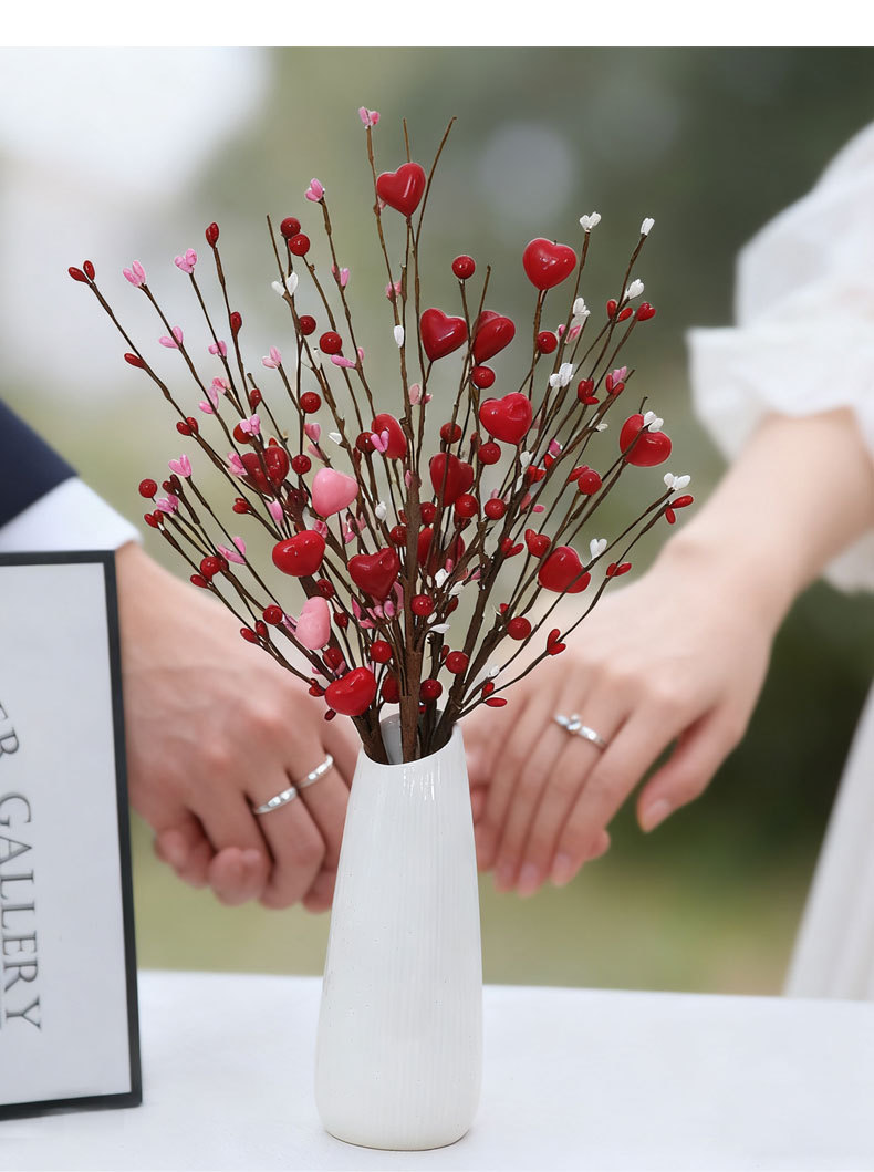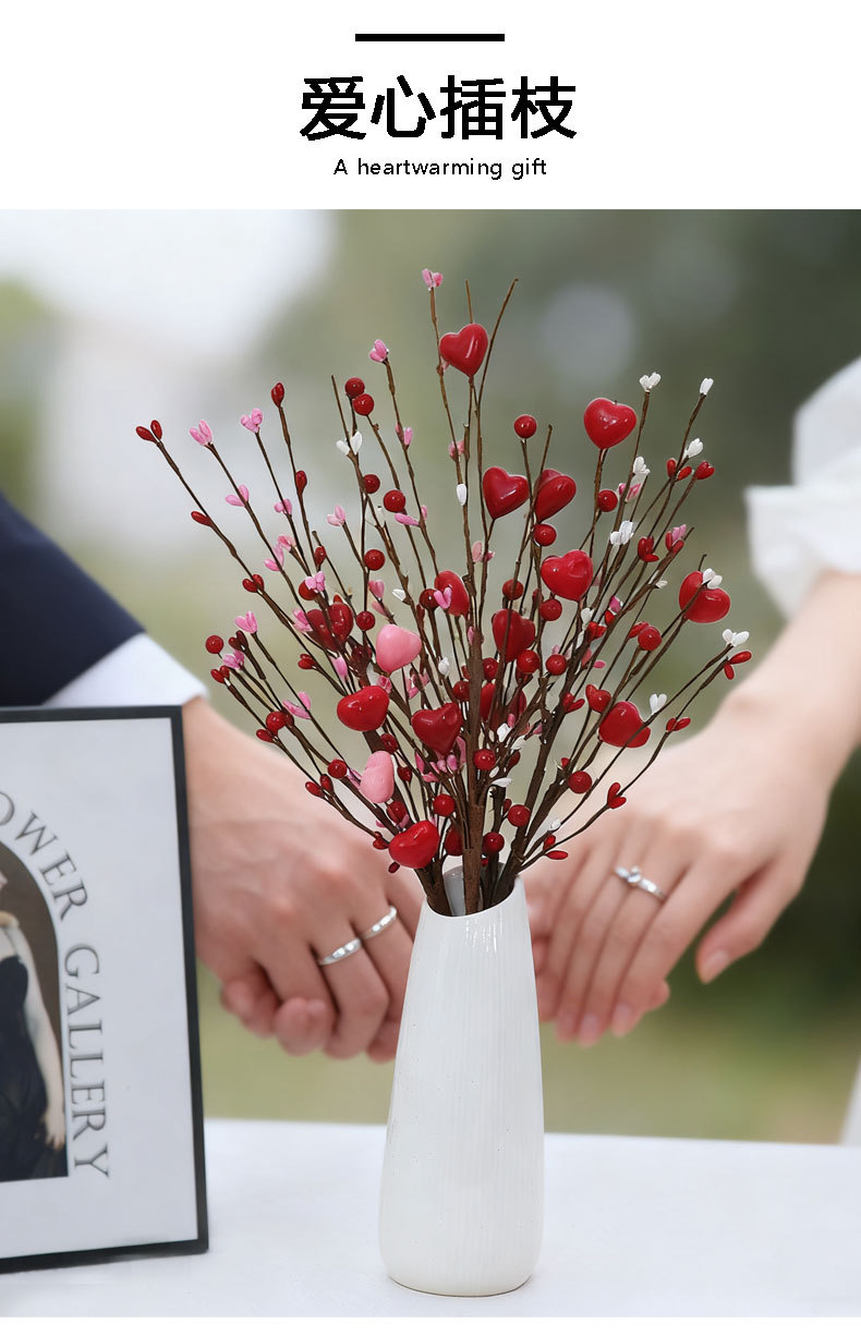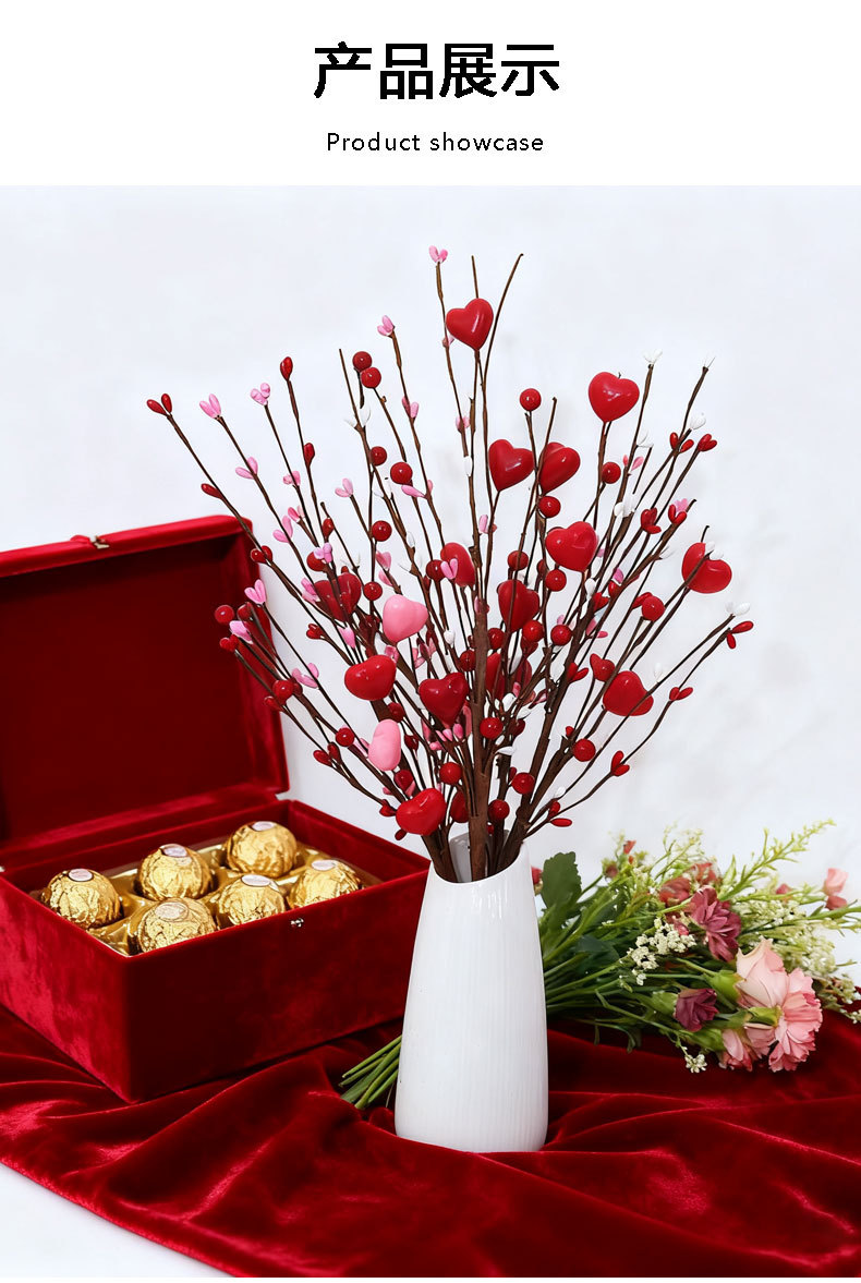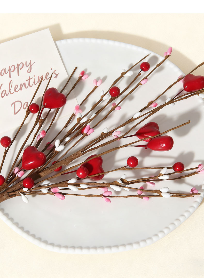 6 transfronterizos nuevo día de San Valentín amor bayas simuladas flor decoración floral rama de Amazon día de San Valentín en forma de corazón
