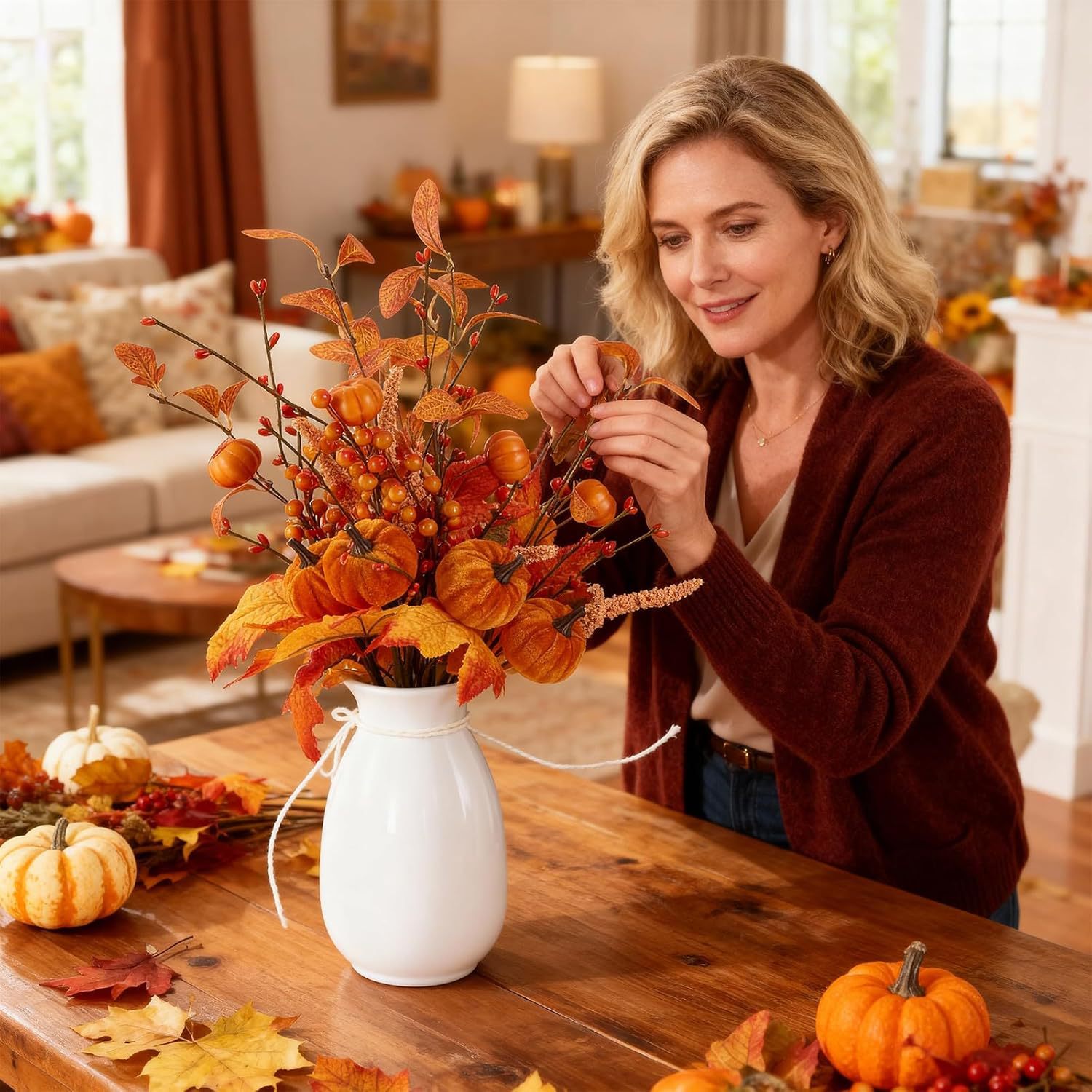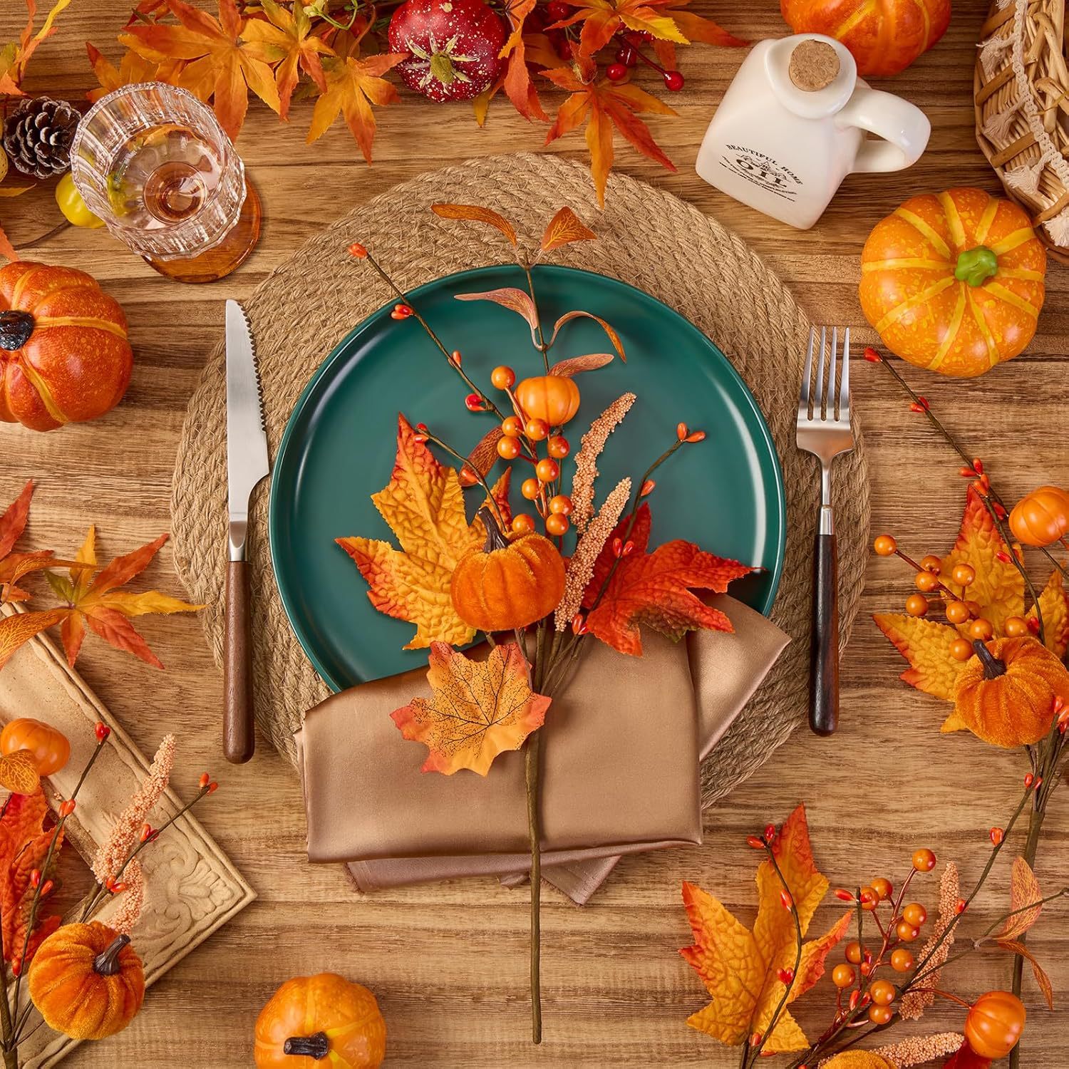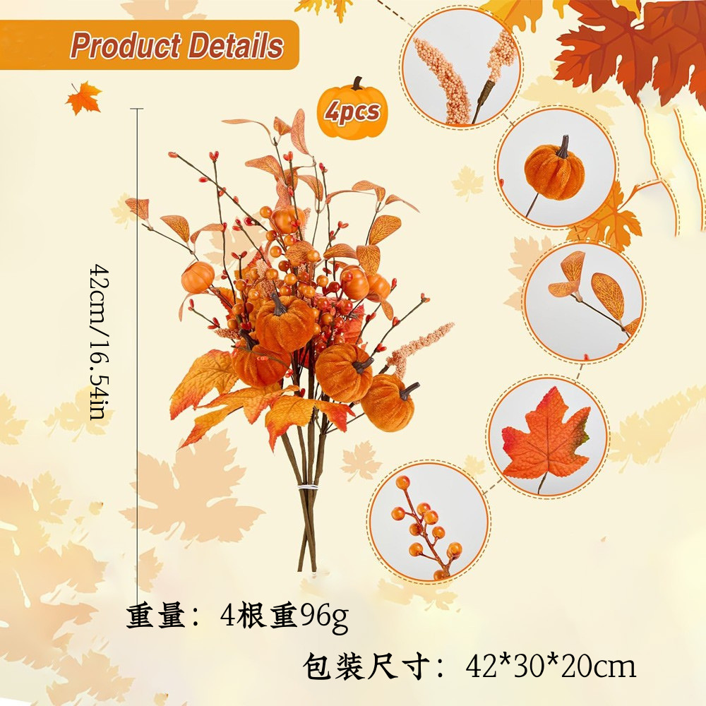 4 calabazas de imitación de hojas de arce decoración de calabazas de tela caliente decoración de flores de imitación de otoño de la sala de estar