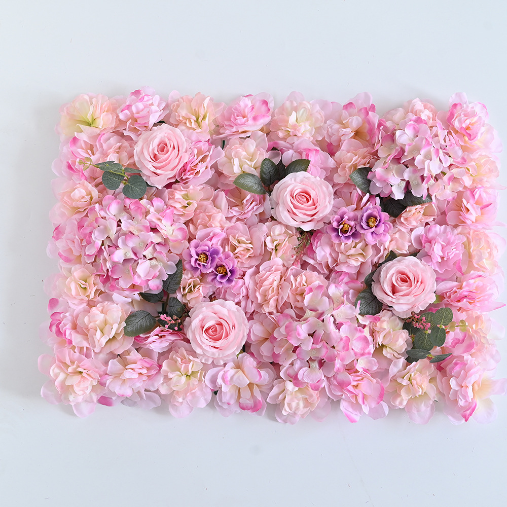 Simulación de pared de flores filas de flores de fondo pared red perforación de tarjetas de flores falsas decoración de pared decorativa decoración de bodas interiores rosa plantación