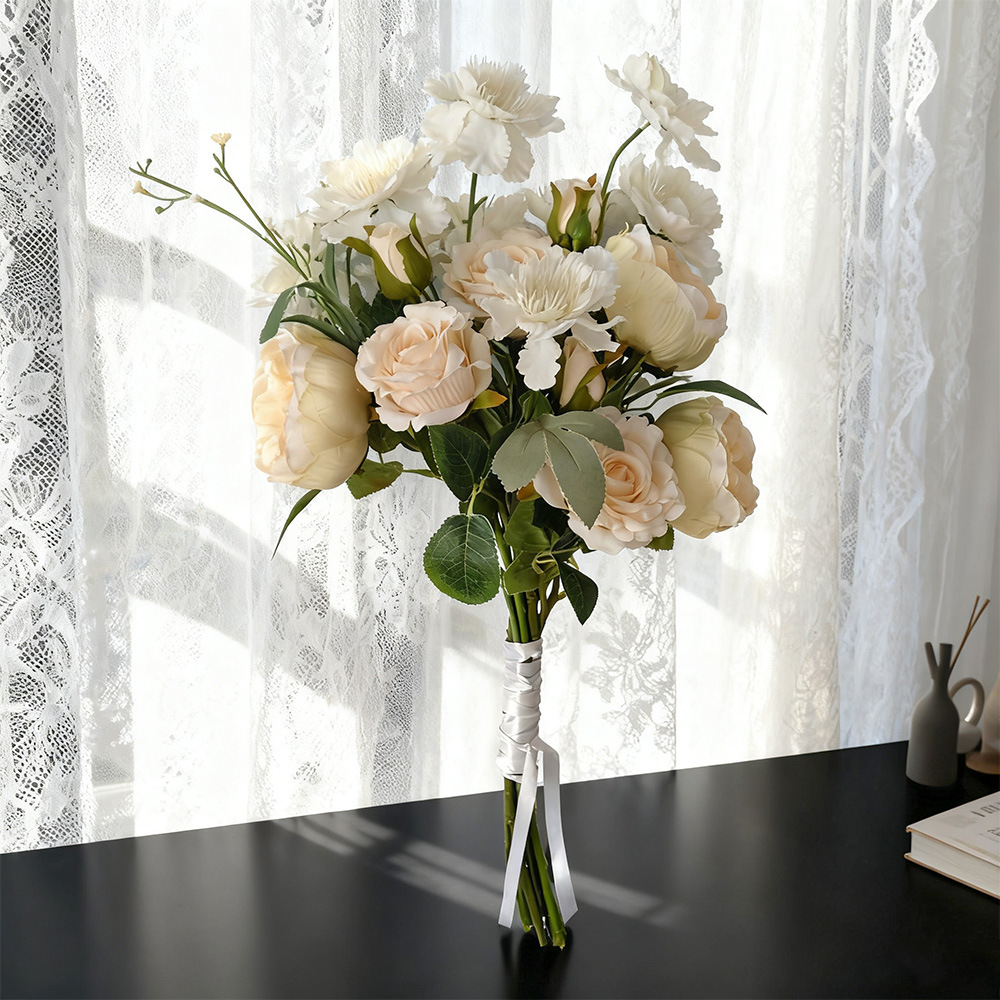 2025 Amazon nuevo producto rosa simulación flores de mano al aire libre vestido de boda props de fotografía boda flores de mano novia