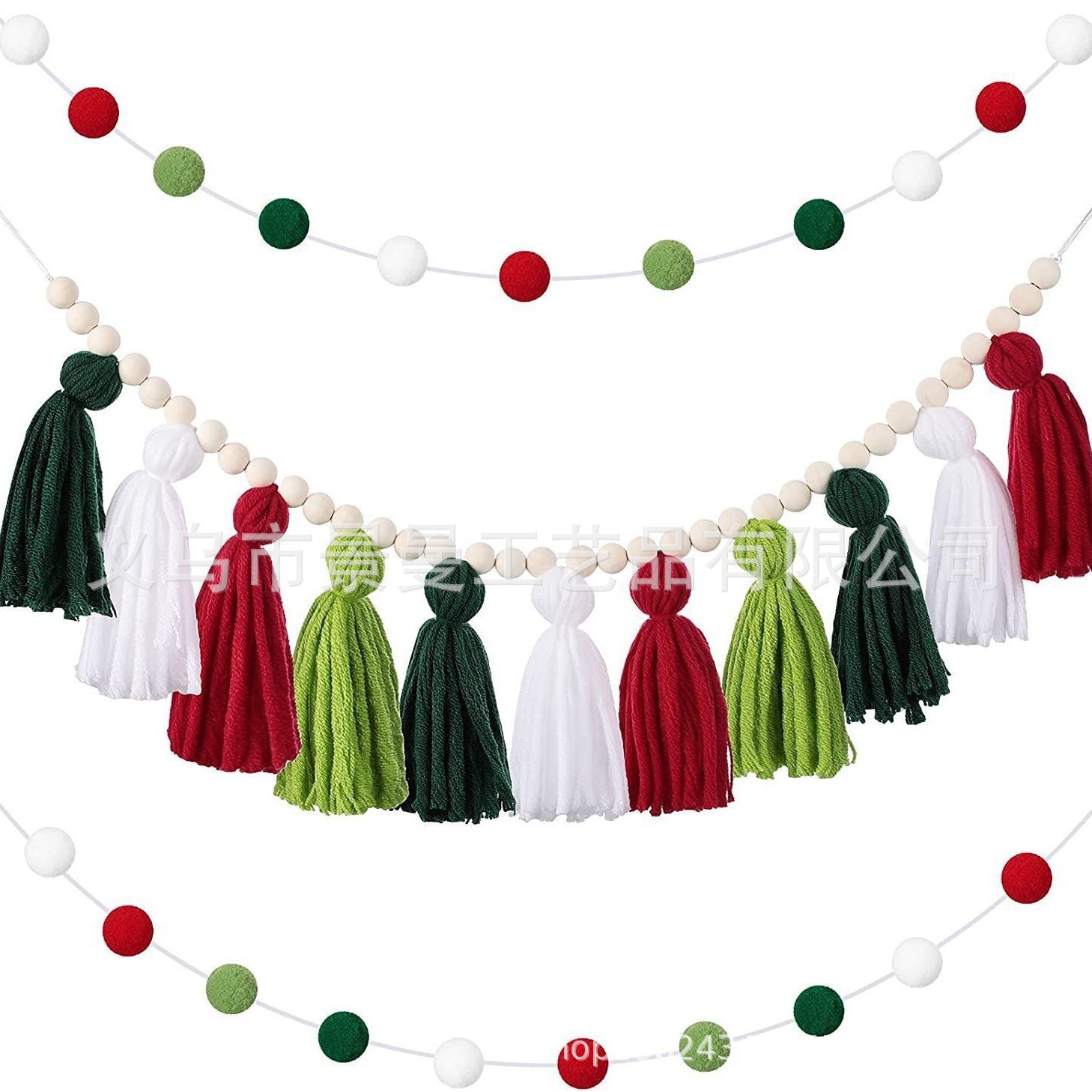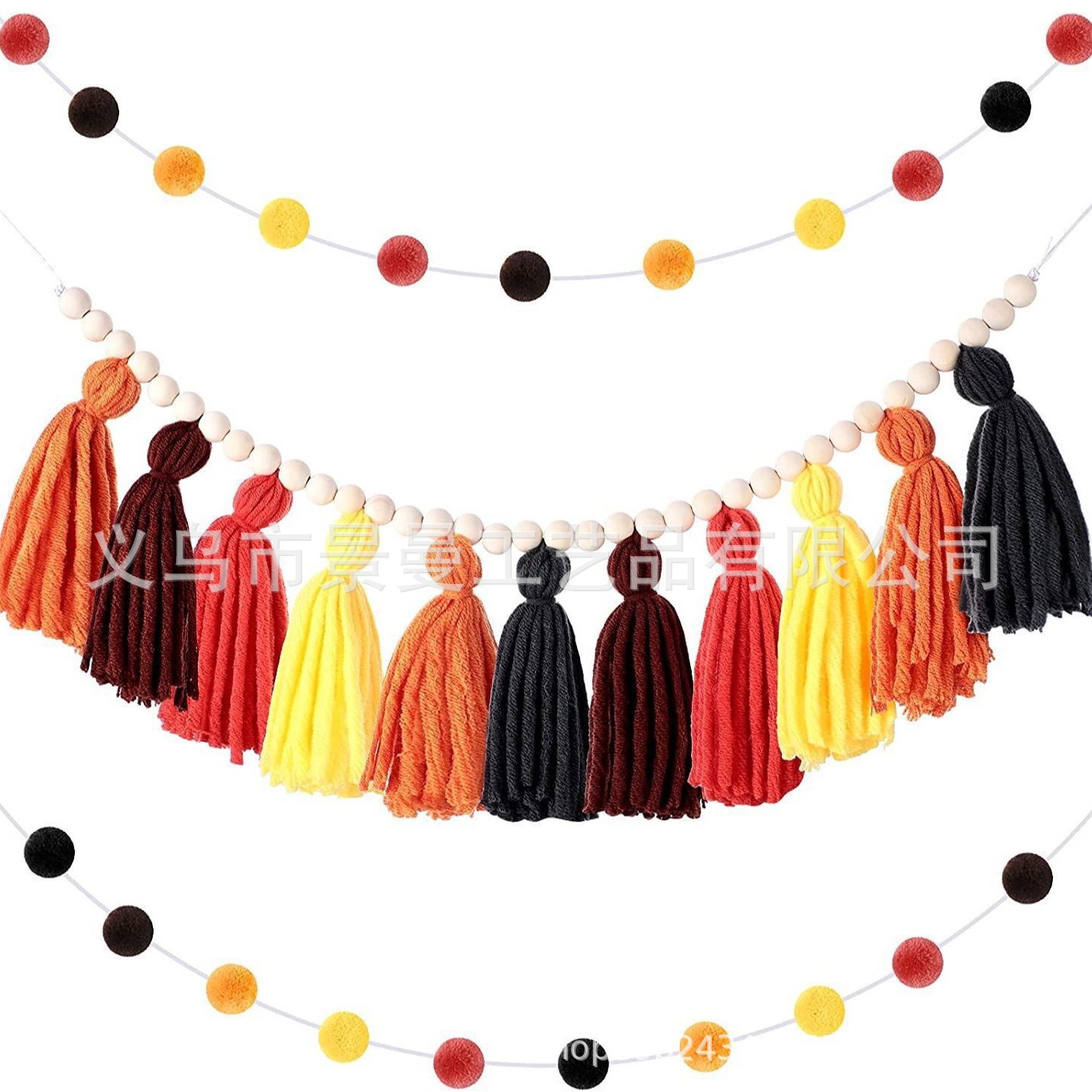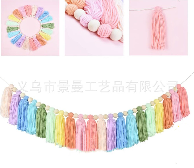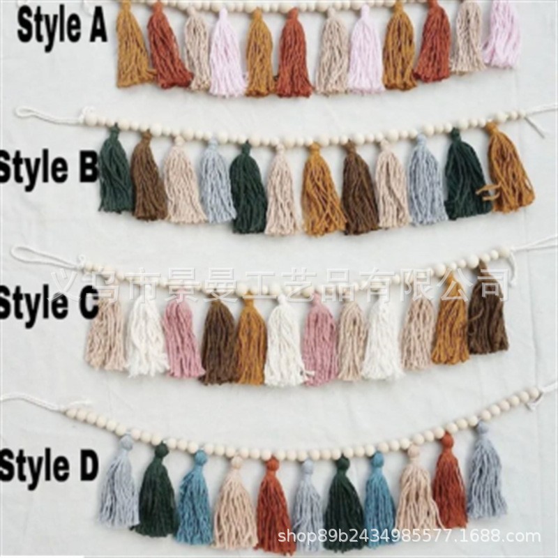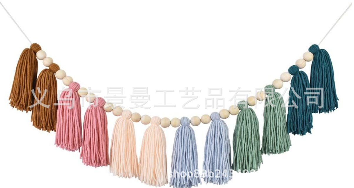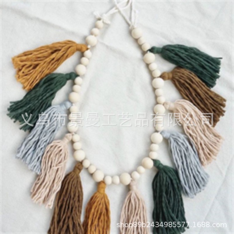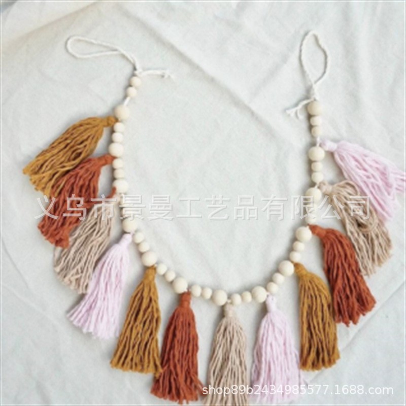 2024 cross-border ins Estilo nórdico conjunto completo de cuentas de madera Bola de piel borla cadena adornos tejidos cadena decoración de la pared colgante de pared
