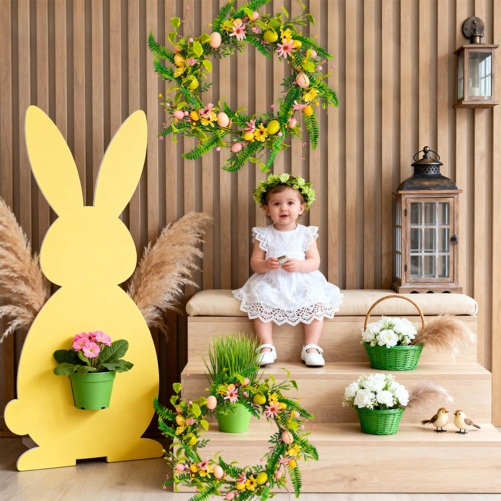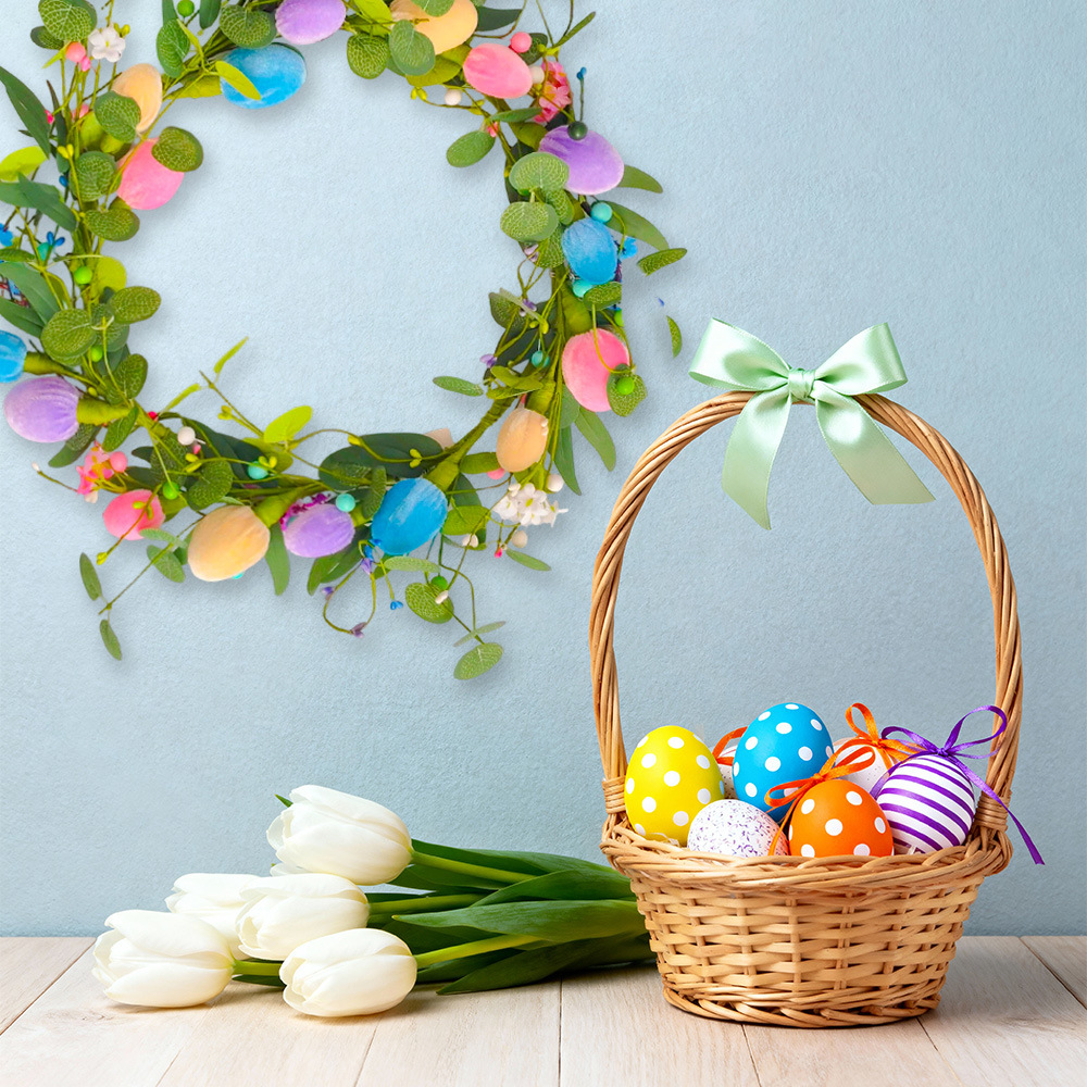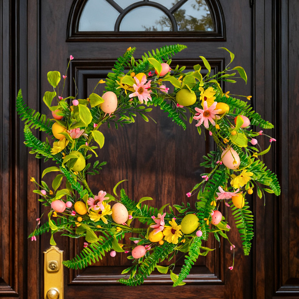 Guirlanda de Pascua transfronteriza simulación de hierba de agua de vinas guirlanda portal colgante decoración de Pascua huevo de resurrección colorido