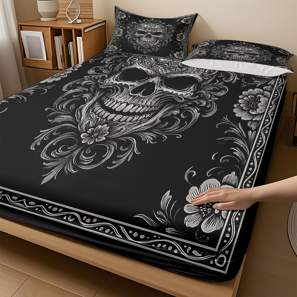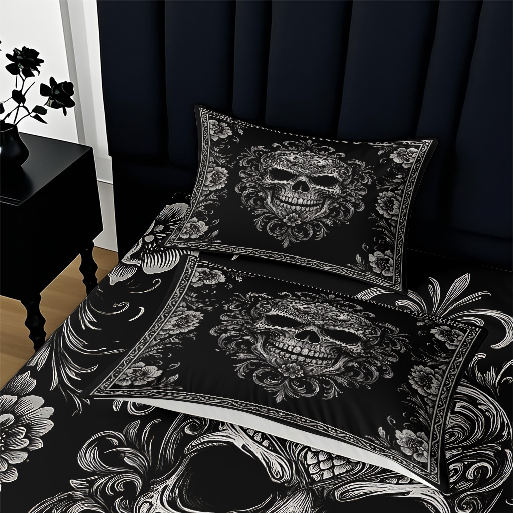 TEMU / JIT abrasión cama Kits cráneo patrón de impresión digital HD ropa de cama para diseñar