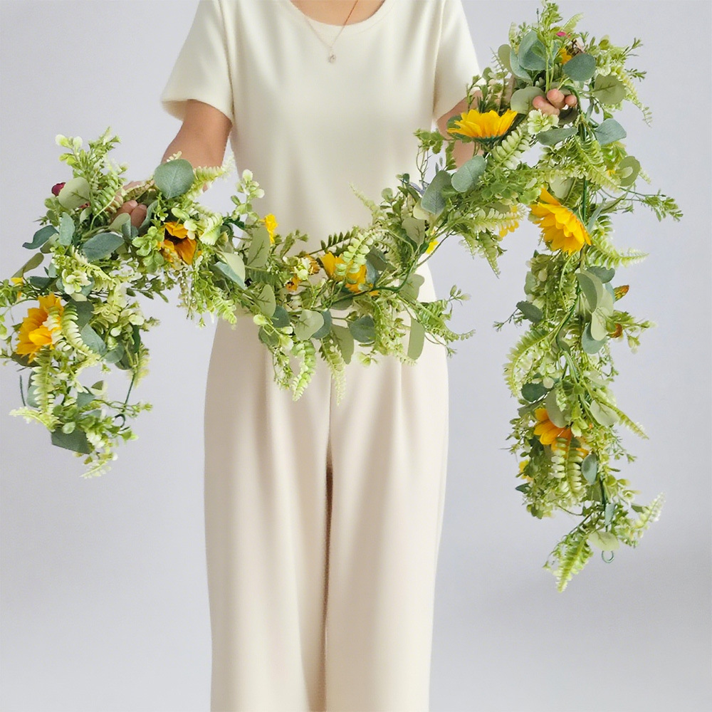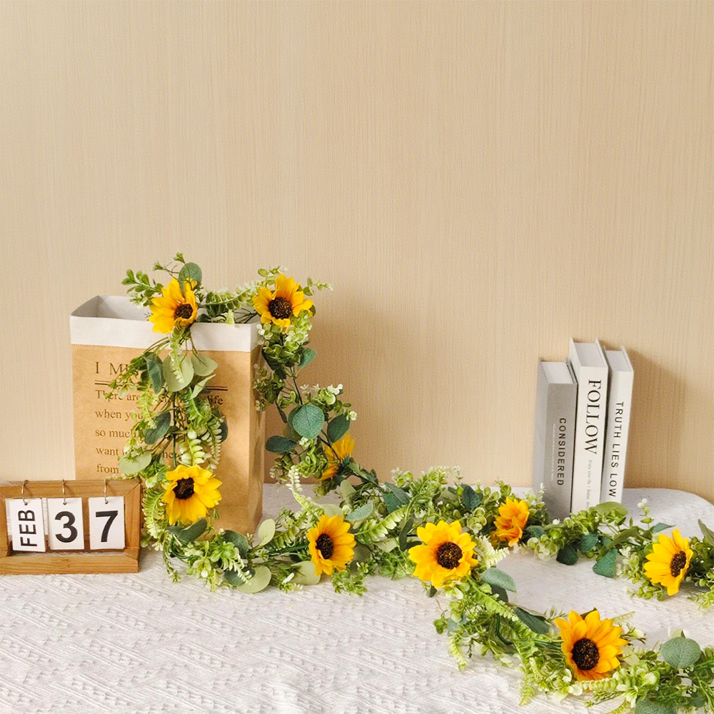 Simulación de girasol de seda de plástico decoración al aire libre flores falsas de sol de vid vid vid Amazonas transfronterizo