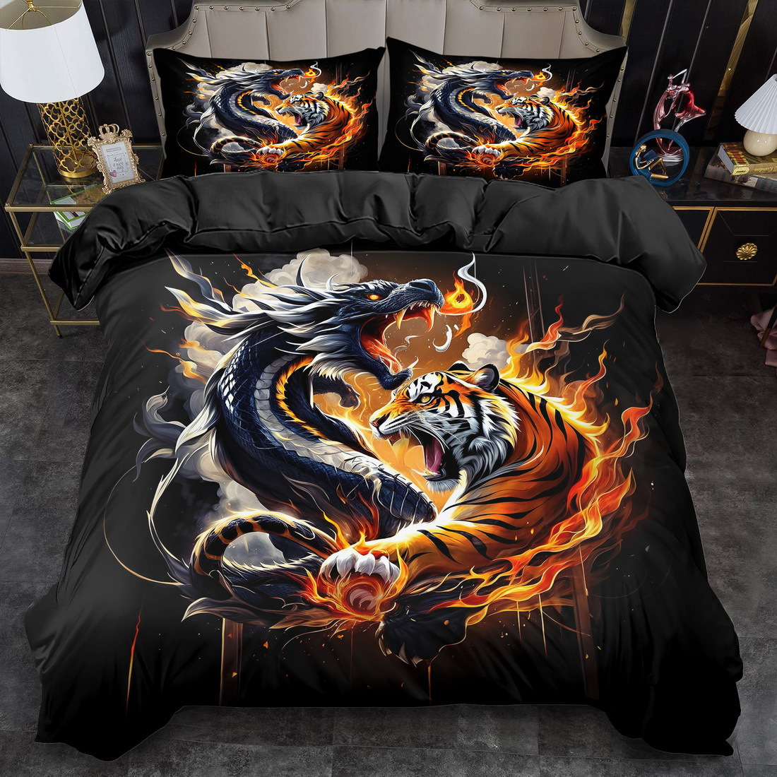 Explosiones transfronterizas abrasiones digitales impresas rojas dragón set fuente de fábrica llevar a cabo TEMU / JIT