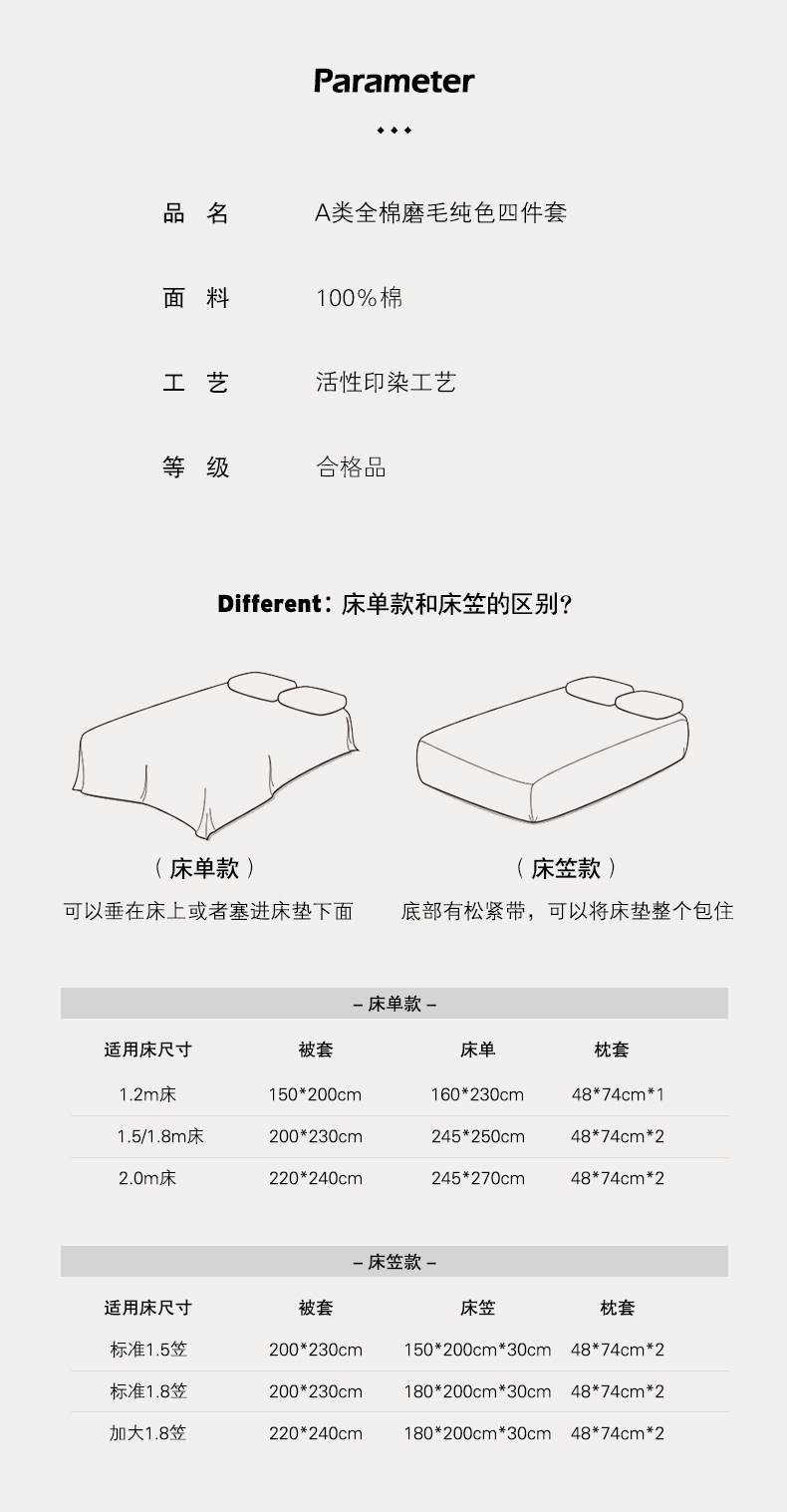 | Especificaciones de tamaño | 1.2m sábanas de tres piezas [aplicable a edredones 150 * 200cm], 1.5m sábanas de cuatro piezas [aplicable a edredones 200 * 230cm], 1.8m sábanas de cuatro piezas [aplicable a edredones 200 * 230cm], 2.0m sábanas de cuatro piezas [aplicable a edredones 220 * 240cm], 1.5m sábanas de cuatro piezas [aplicable a edredones 200 * 230cm], 1.8m sábanas de cuatro piezas [aplicable a edredones 200 * 230cm], 1.8m cama |