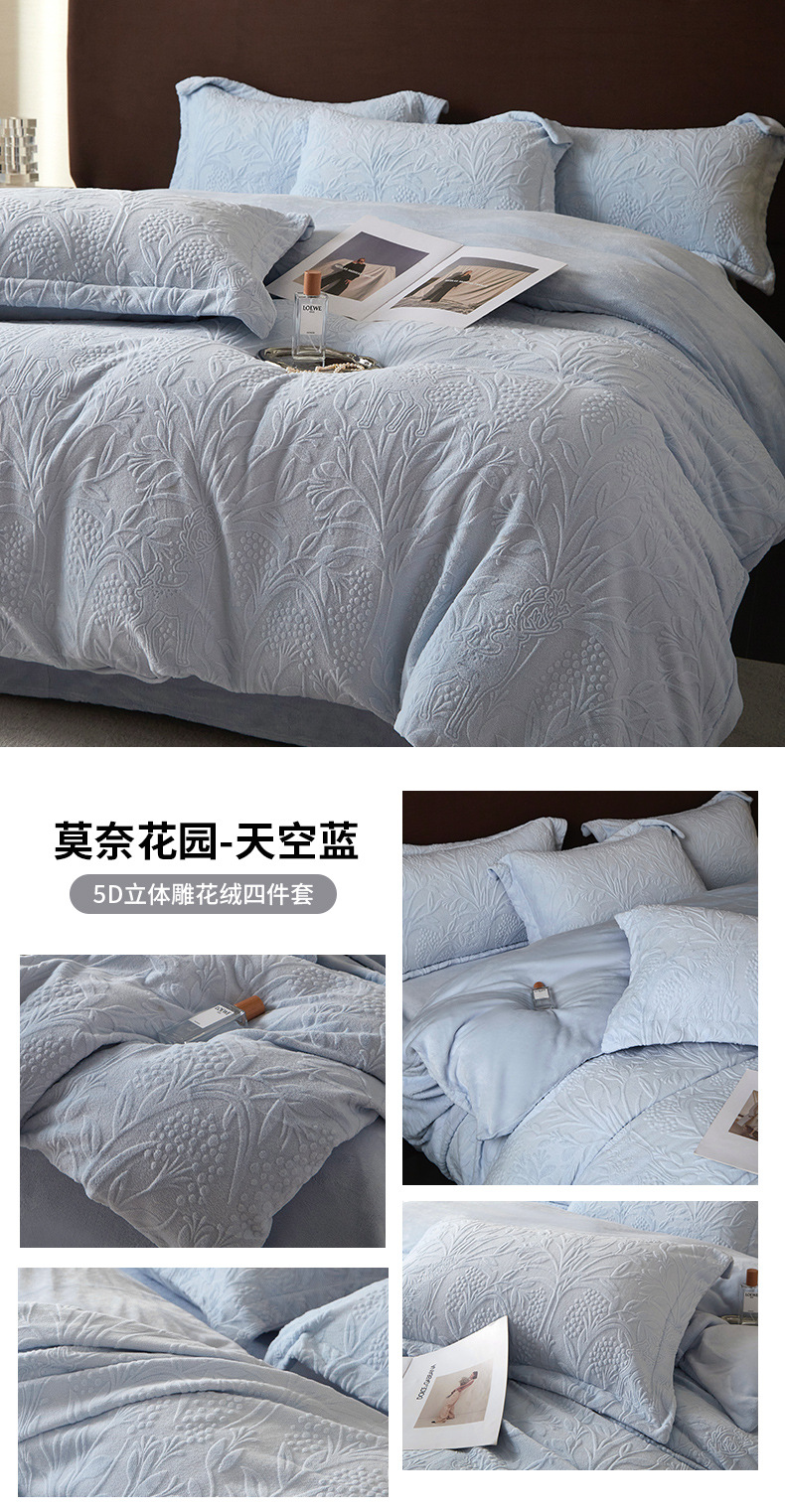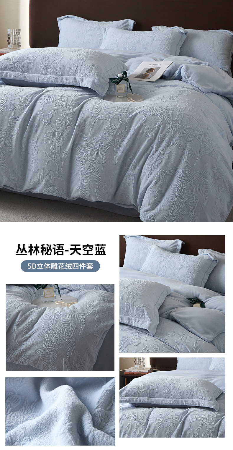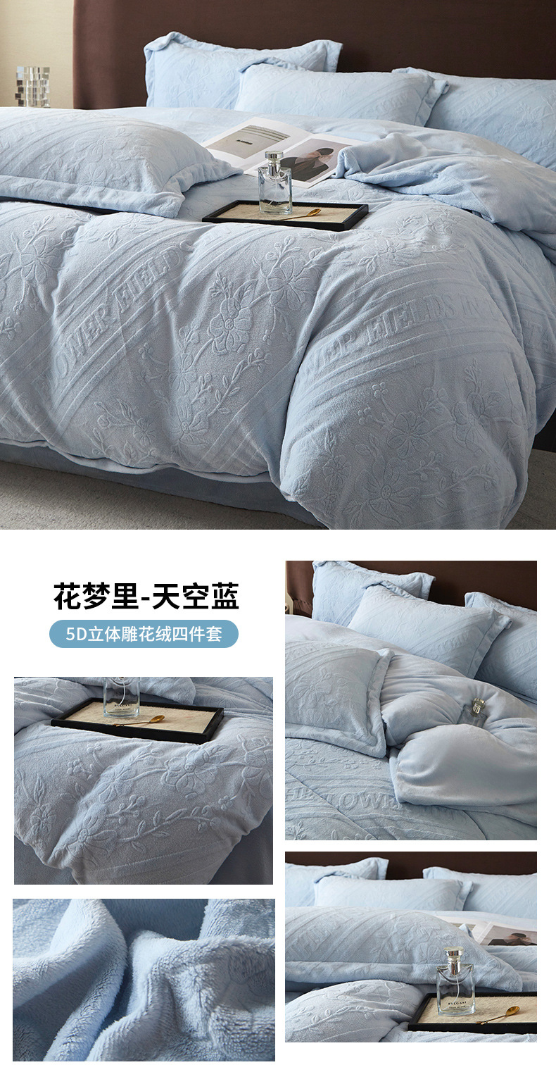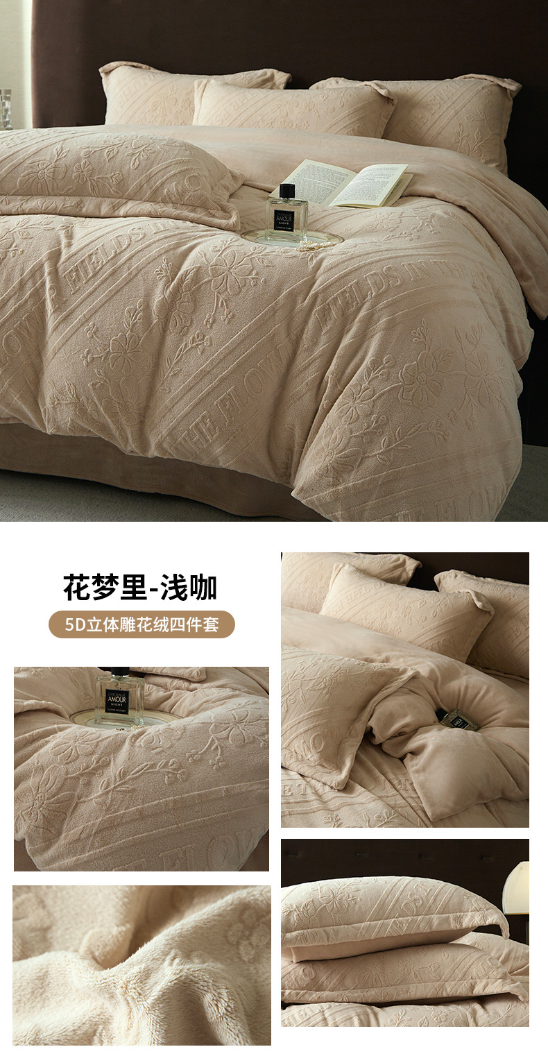 Una clase de cuatro piezas de seda de leche engrosada de alto peso 5D esculpido edredón cubierta sábanas de cama de invierno Kits de calor