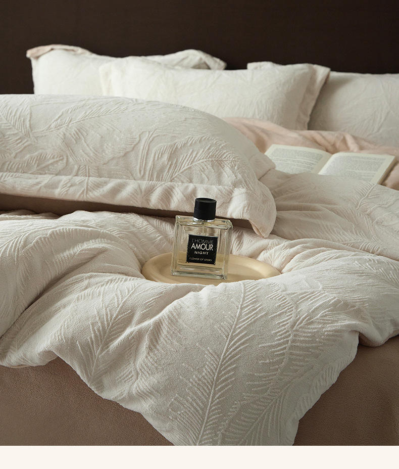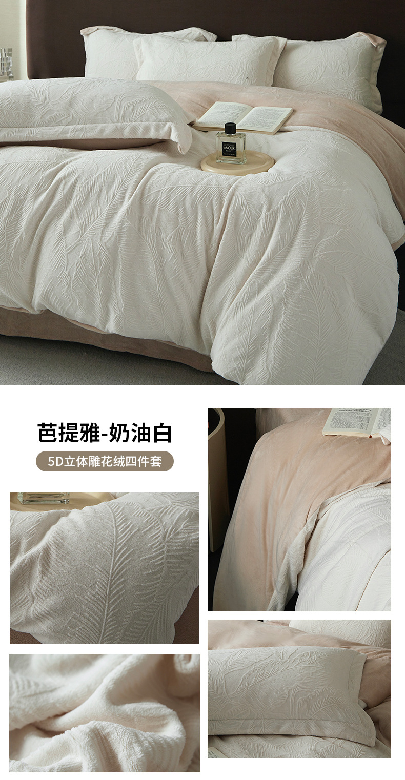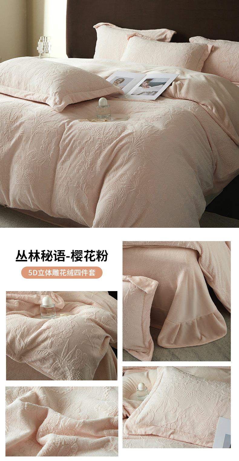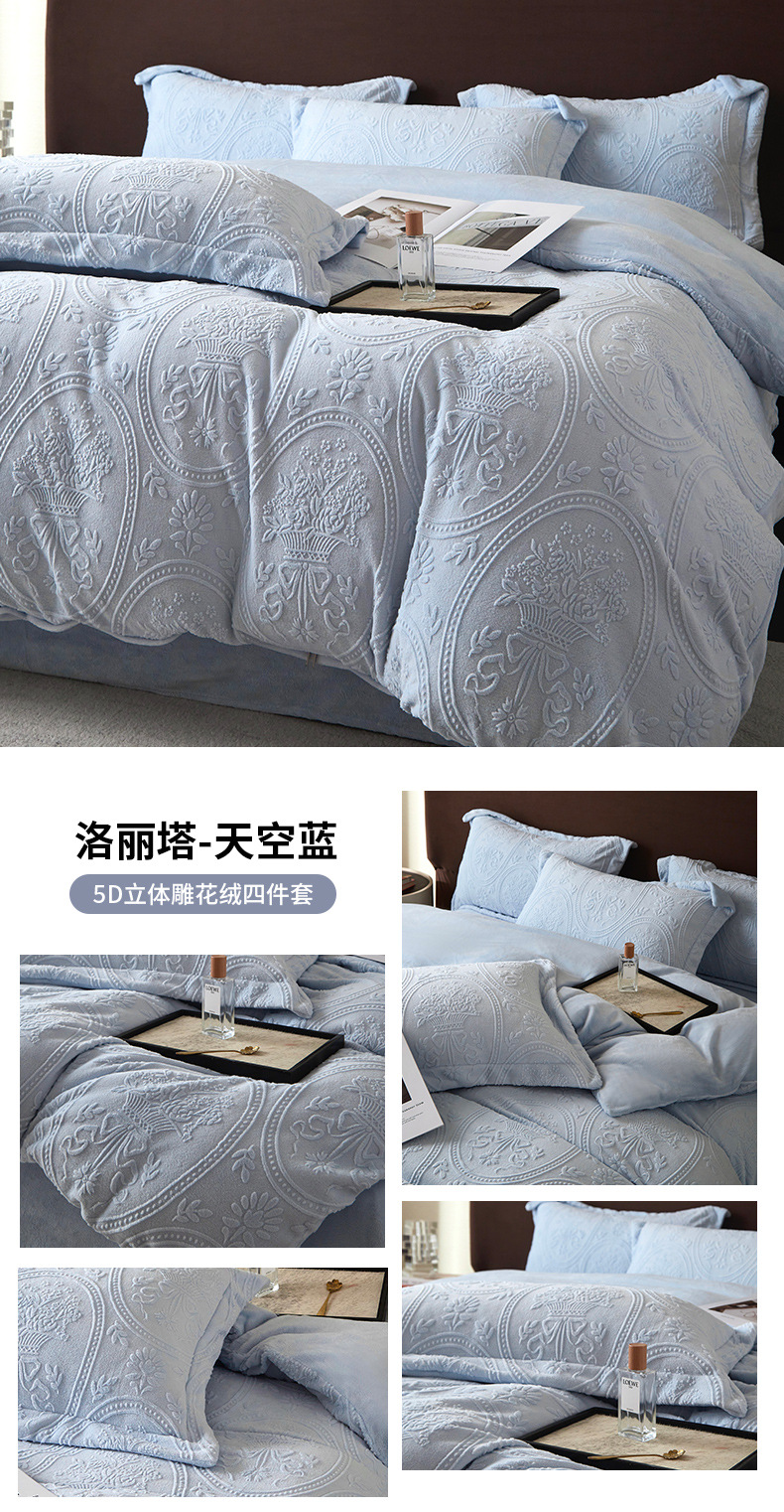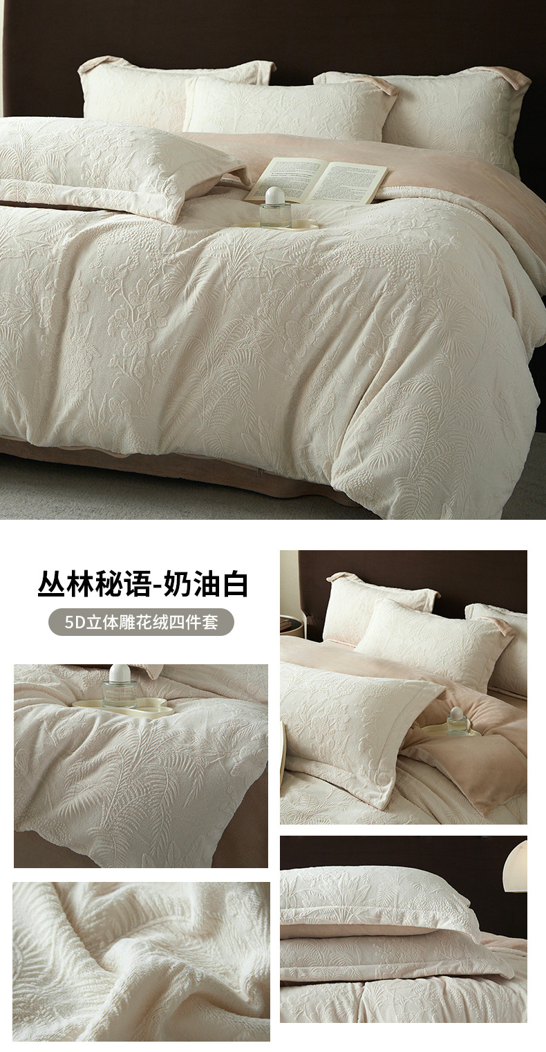 Una clase de cuatro piezas de seda de leche engrosada de alto peso 5D esculpido edredón cubierta sábanas de cama de invierno Kits de calor