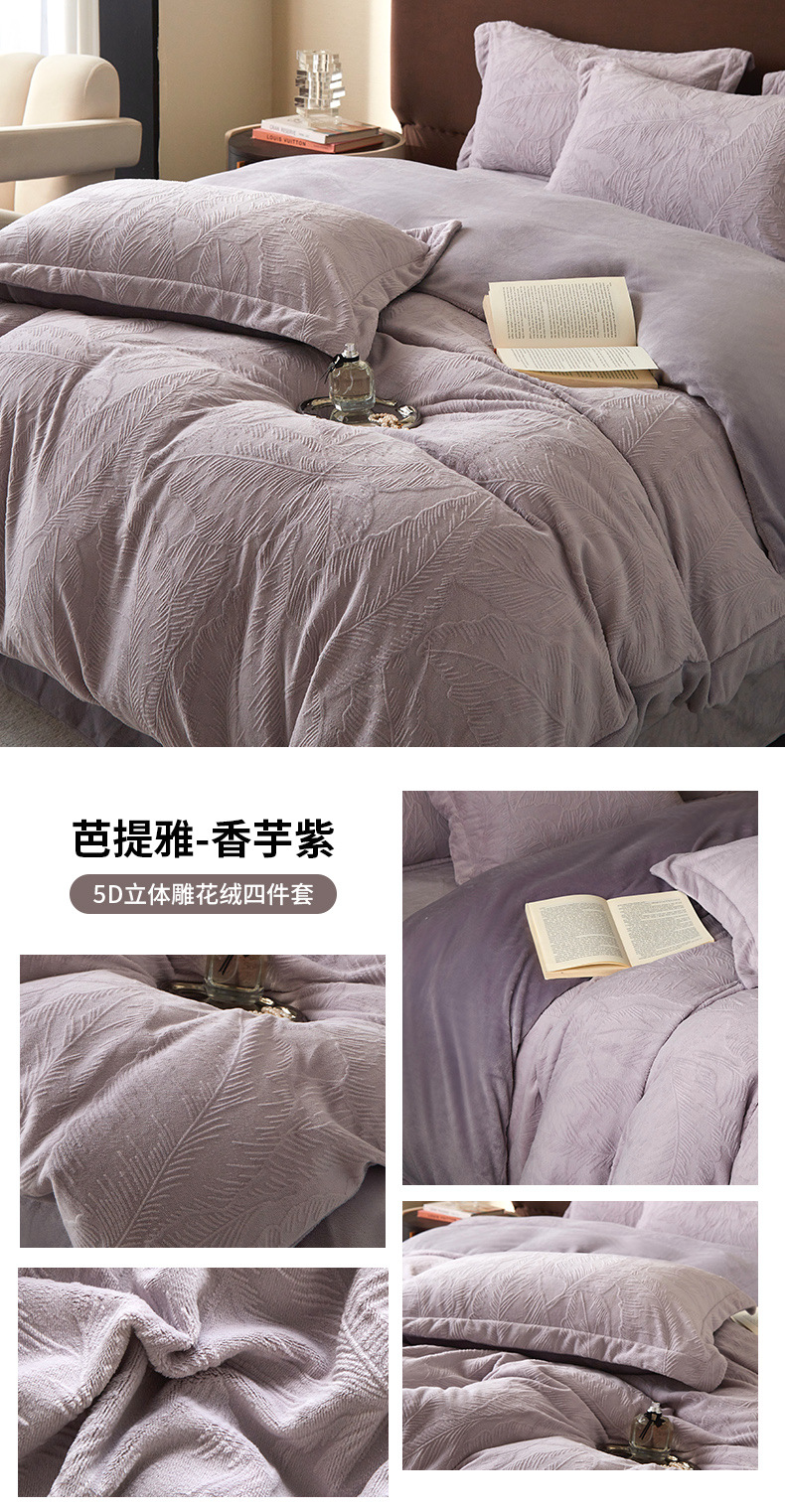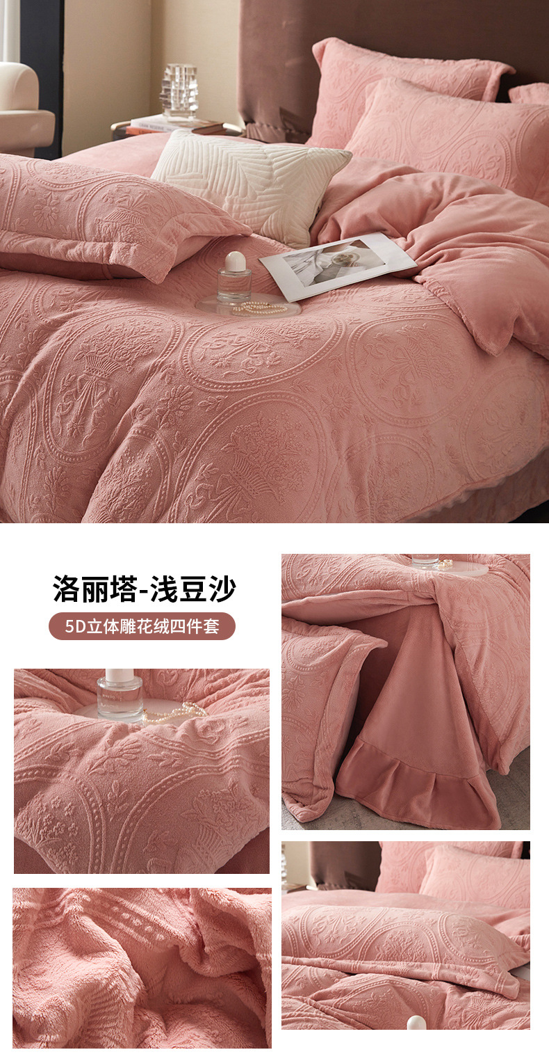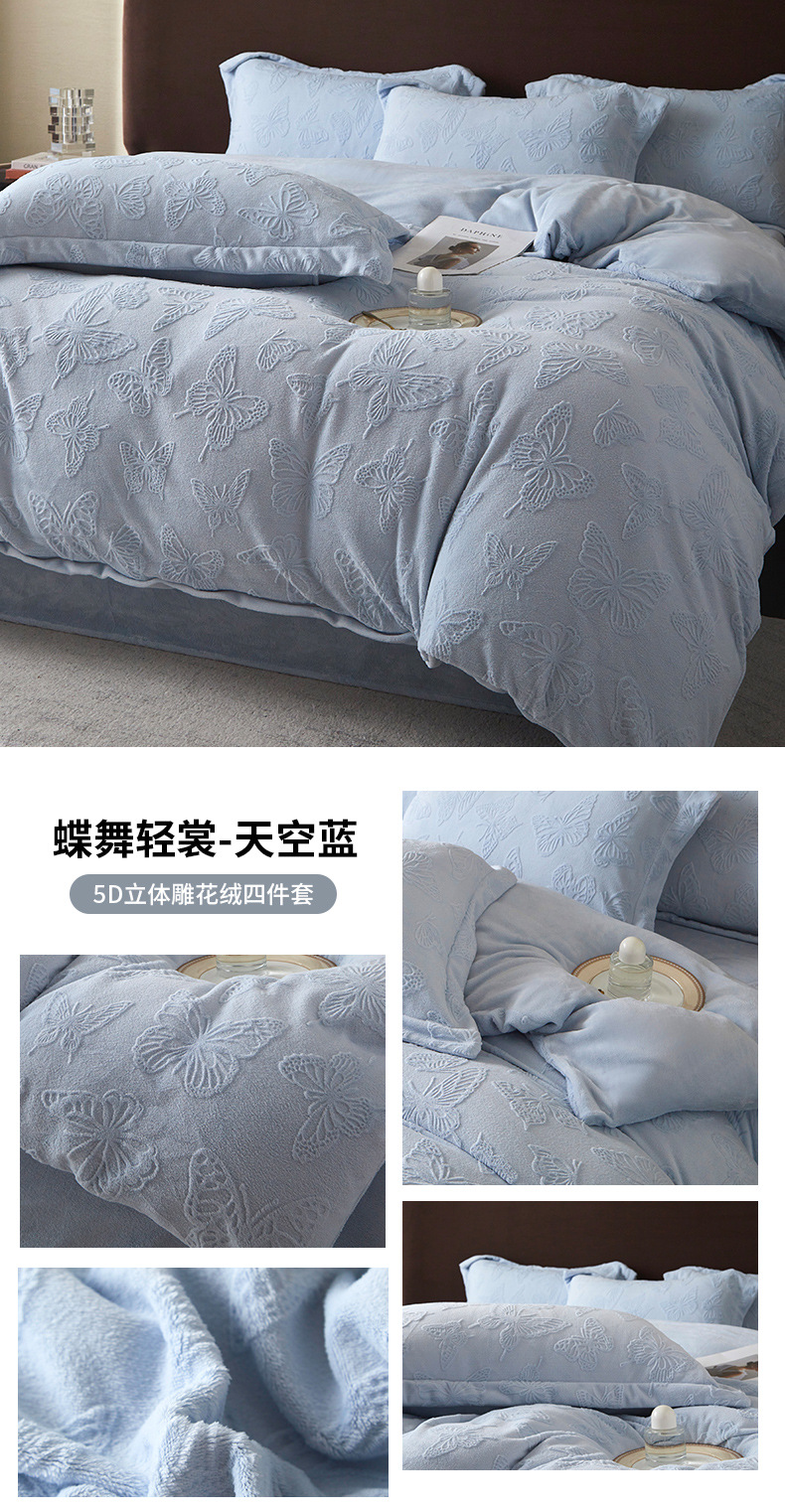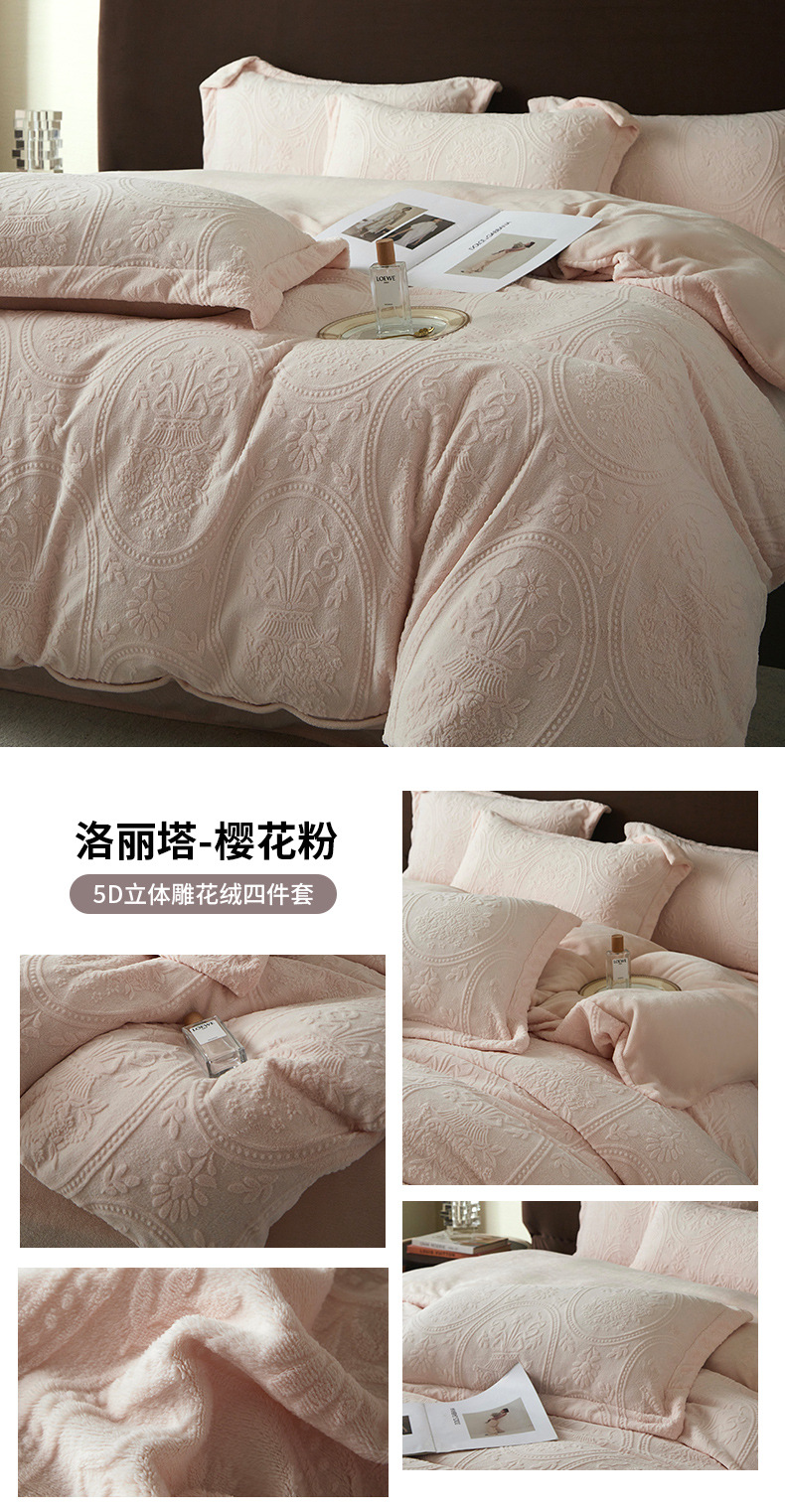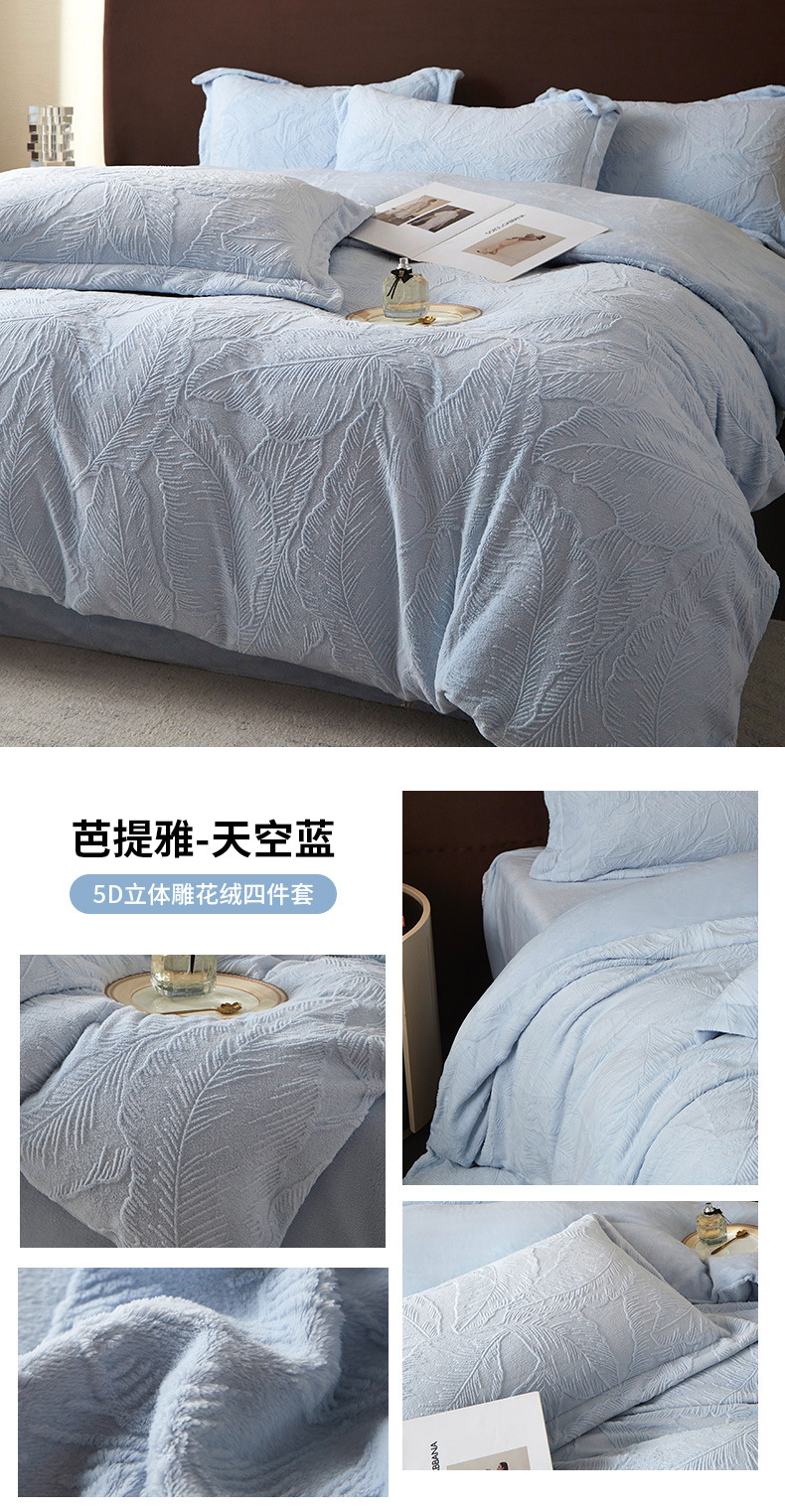 Una clase de cuatro piezas de seda de leche engrosada de alto peso 5D esculpido edredón cubierta sábanas de cama de invierno Kits de calor