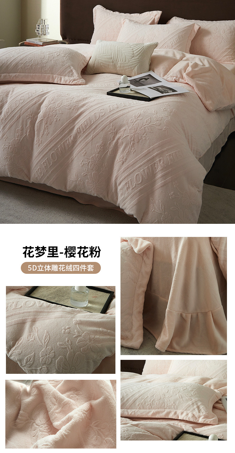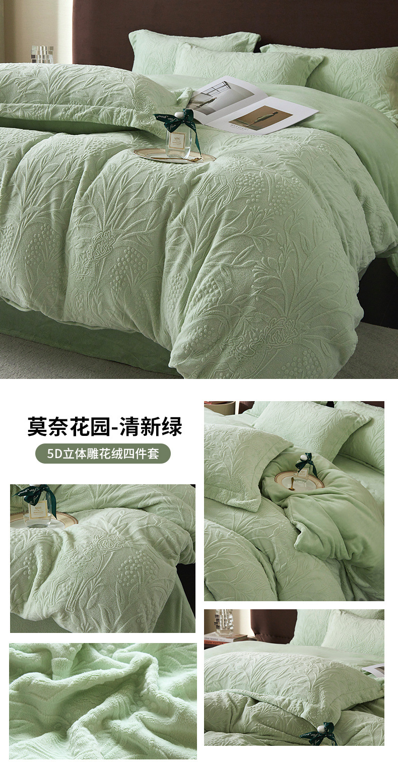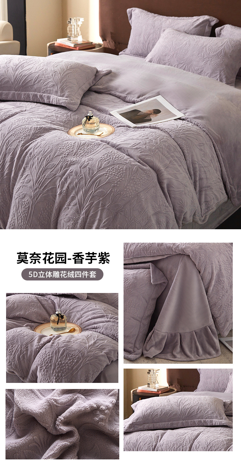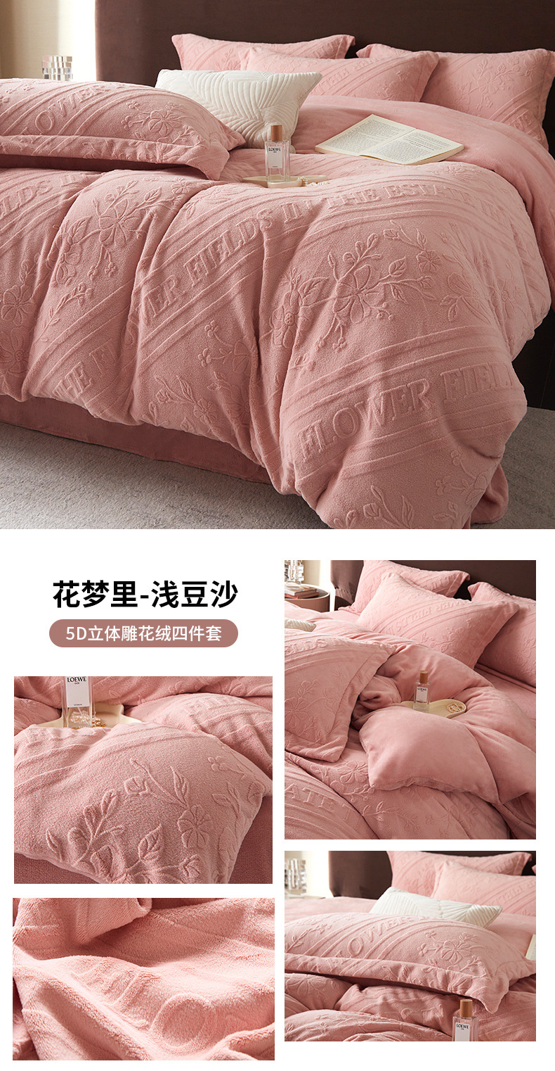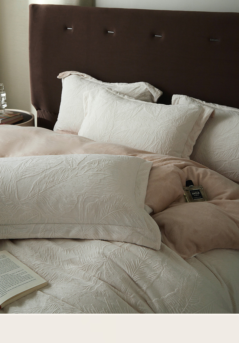Una clase de cuatro piezas de seda de leche engrosada de alto peso 5D esculpido edredón cubierta sábanas de cama de invierno Kits de calor