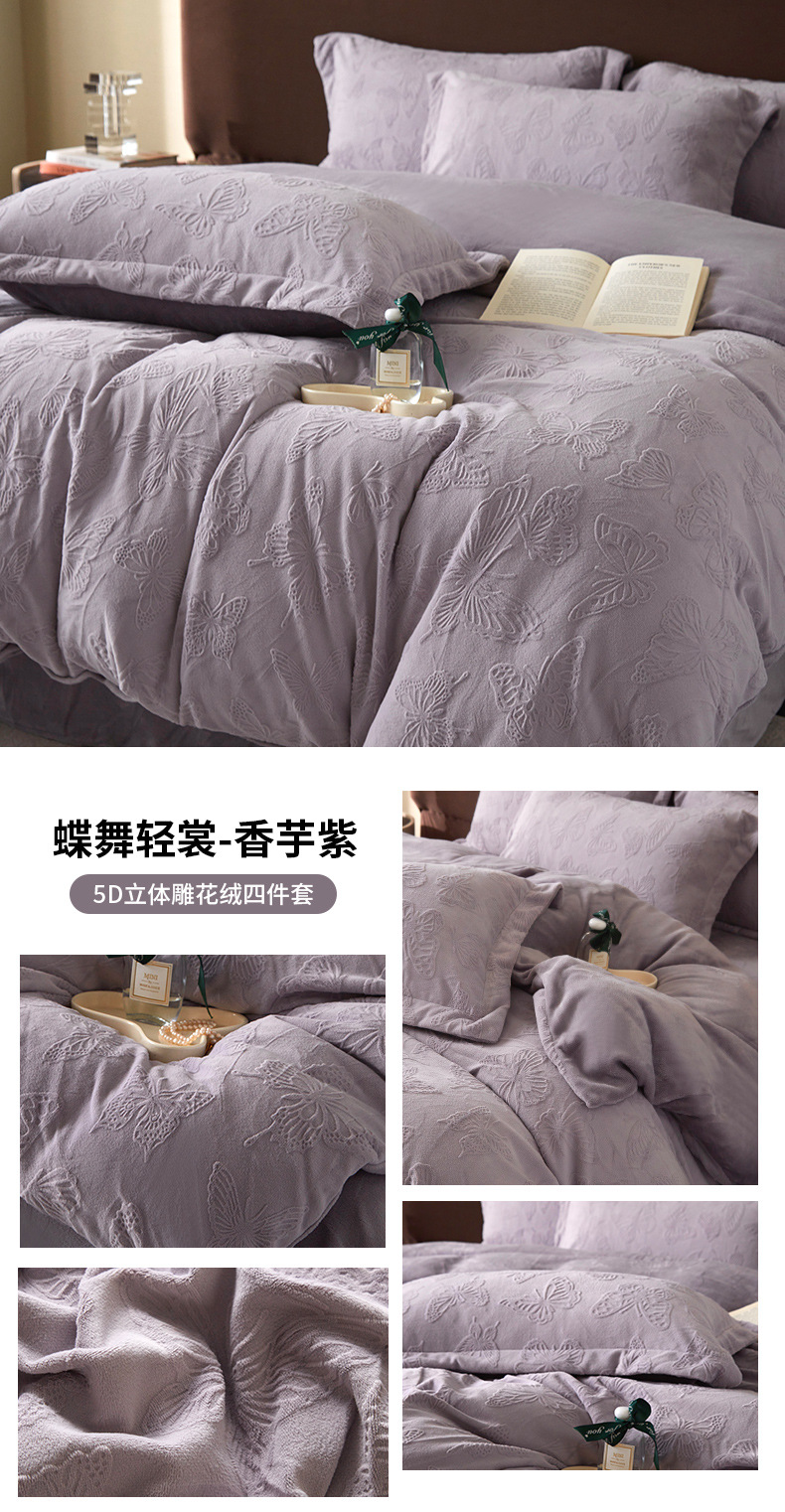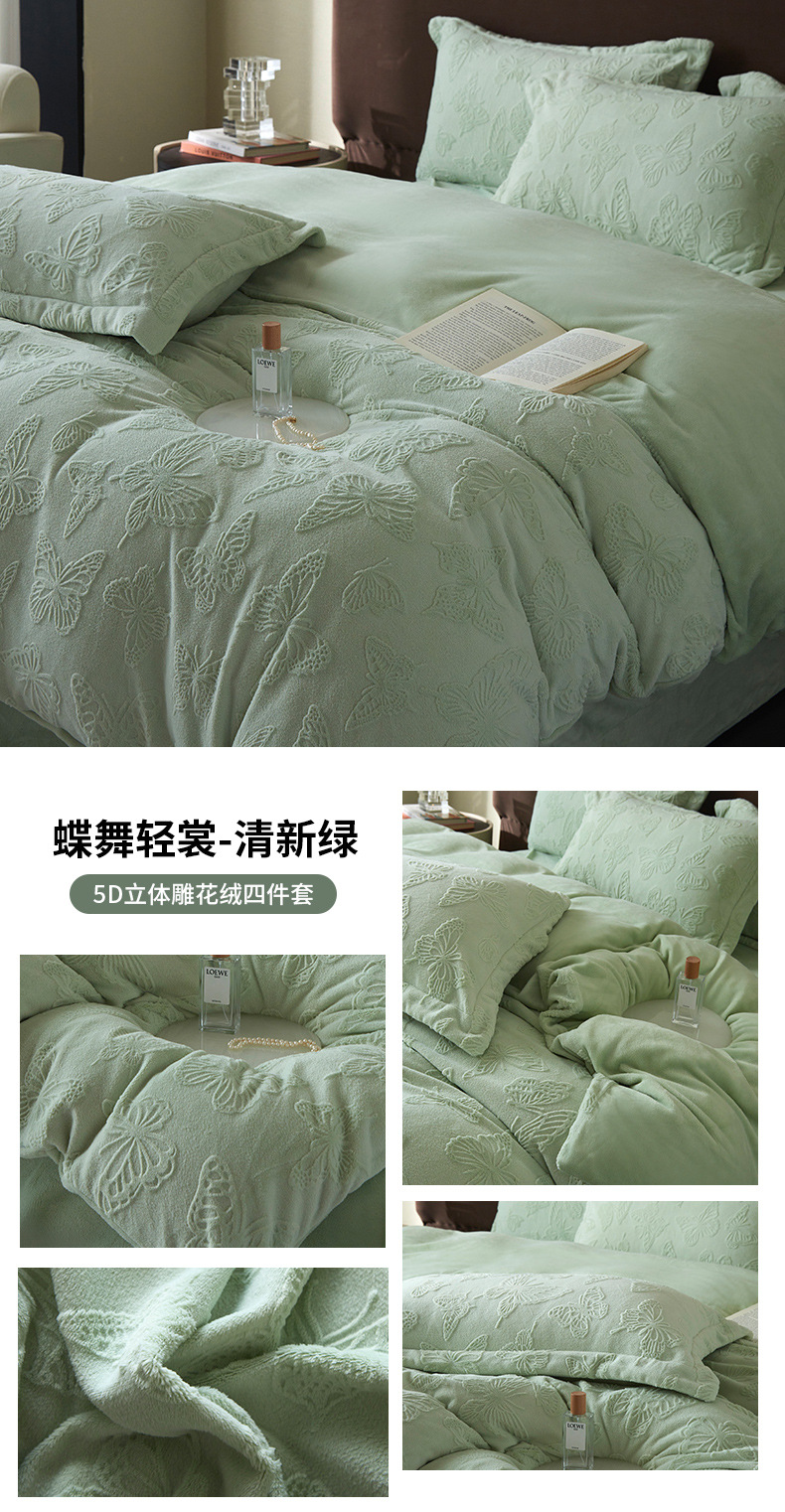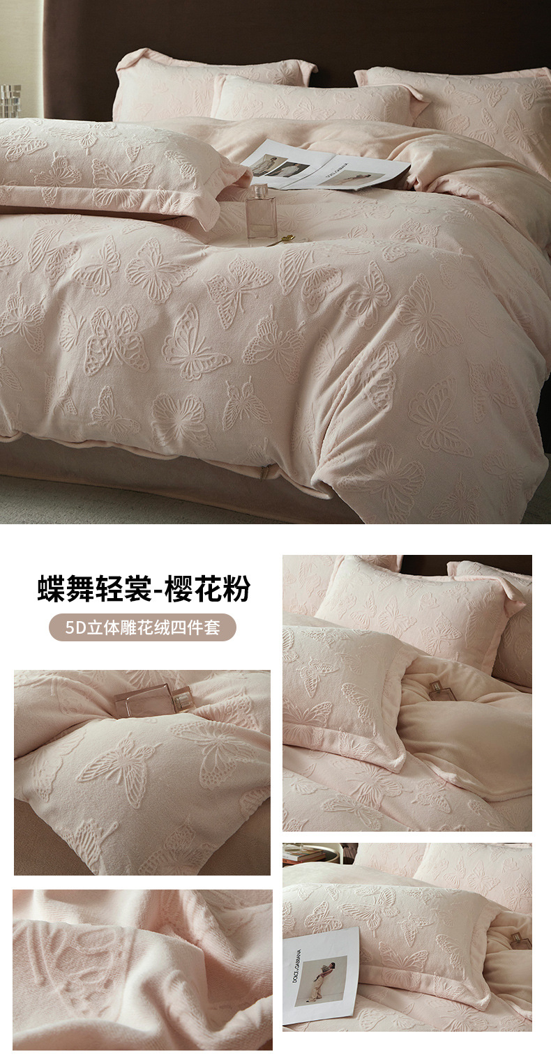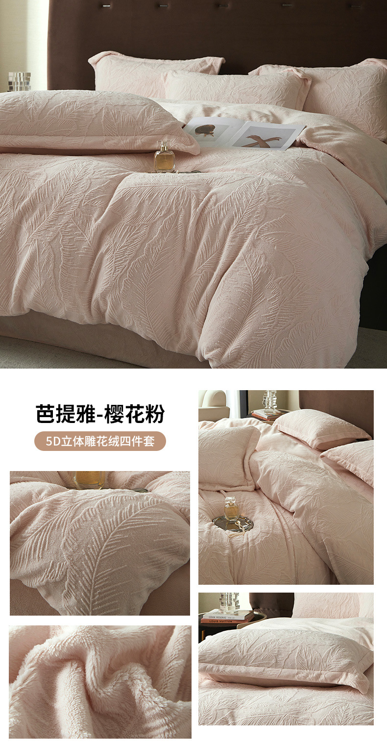 Una clase de cuatro piezas de seda de leche engrosada de alto peso 5D esculpido edredón cubierta sábanas de cama de invierno Kits de calor