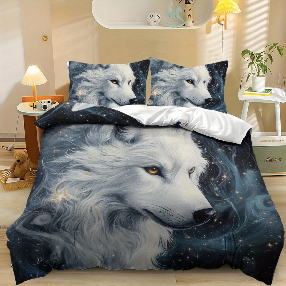 TEMU / JIT transfronterizo impresión digital abrasión edredón kit tridimensional animal lobo blanco estilo textil para el hogar dibujo puede hacer