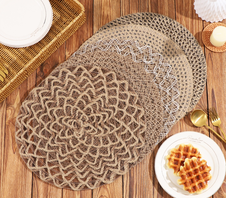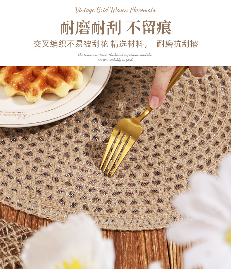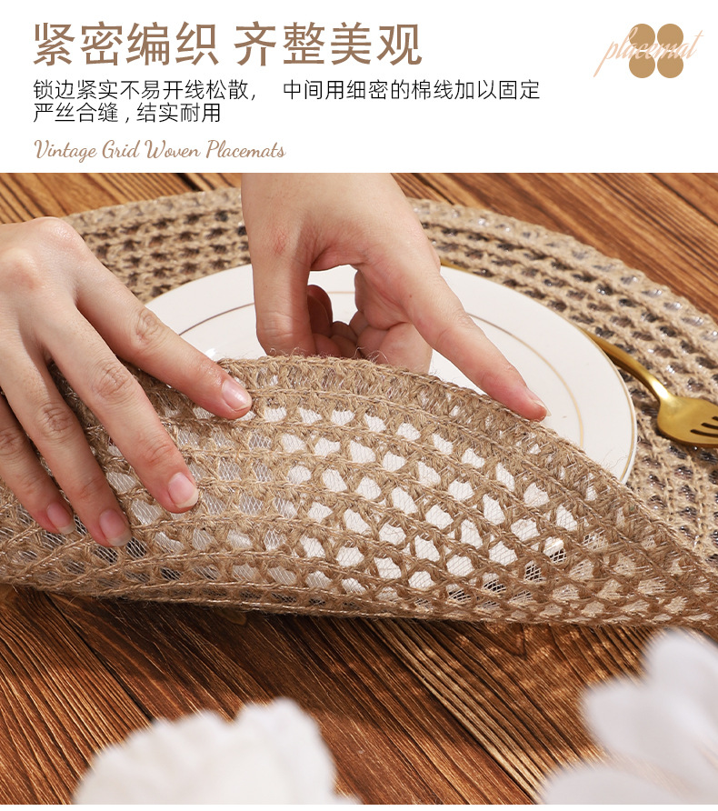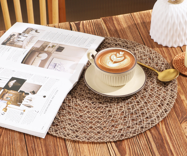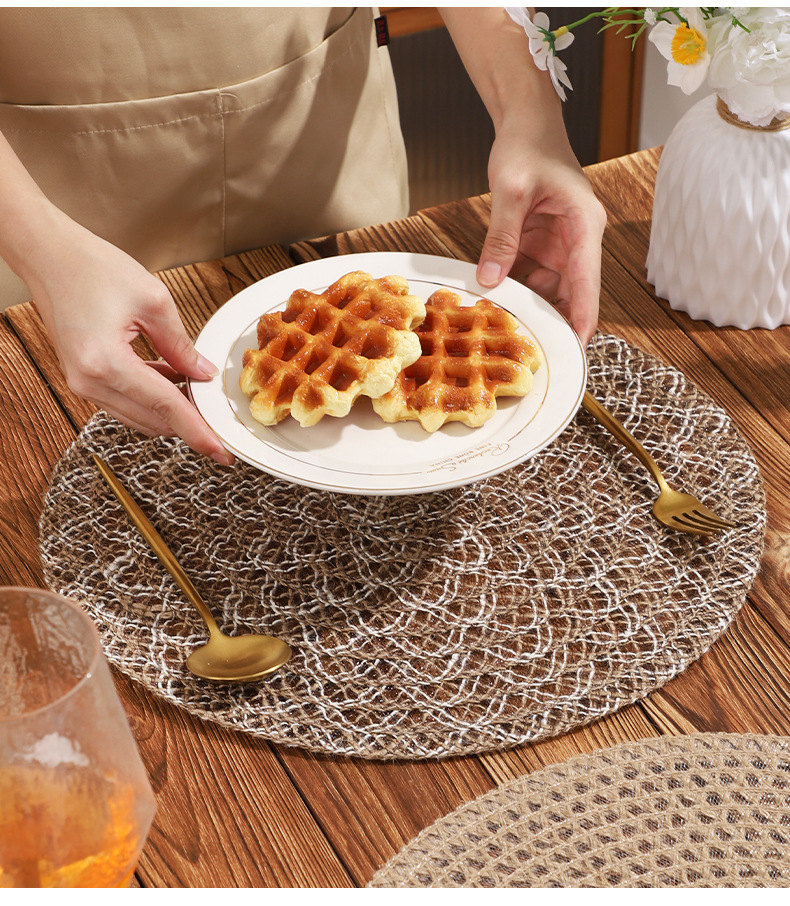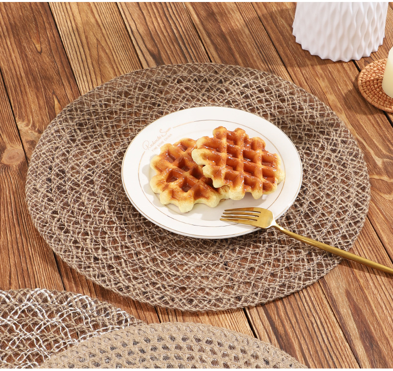 Venta caliente de yute trenzado disco de mesa almohadilla aislante térmico decoración de mesa de comedor occidental almohadilla resistente a altas temperaturas a prueba de quemaduras