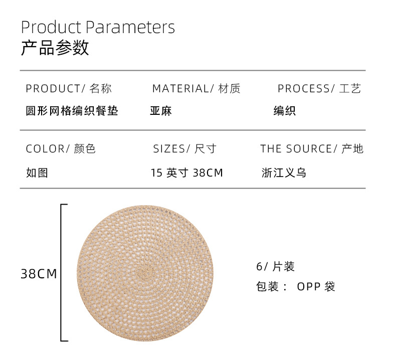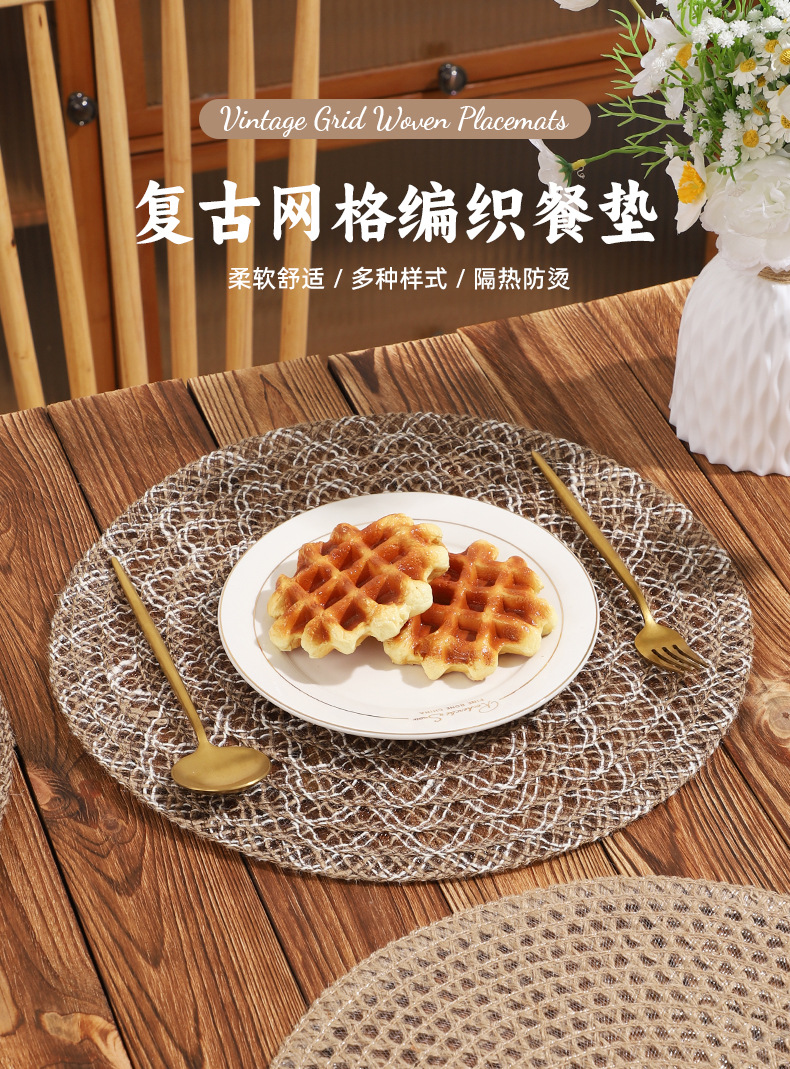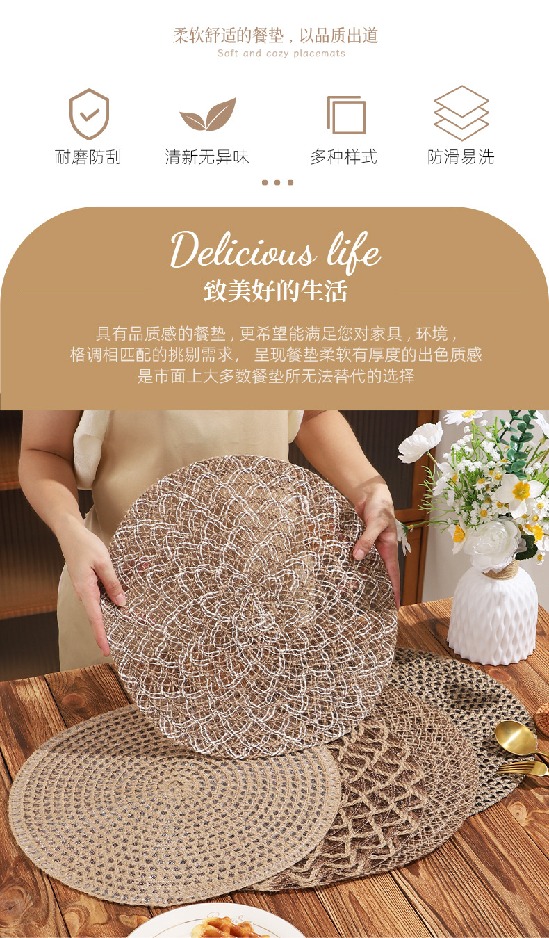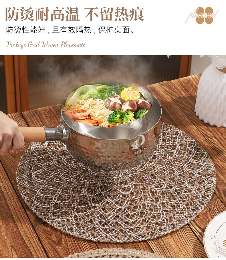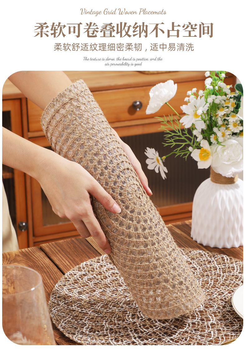 Venta caliente de yute trenzado disco de mesa almohadilla aislante térmico decoración de mesa de comedor occidental almohadilla resistente a altas temperaturas a prueba de quemaduras