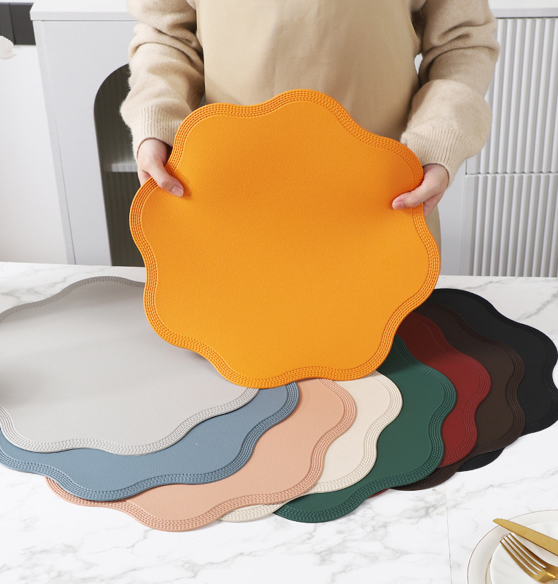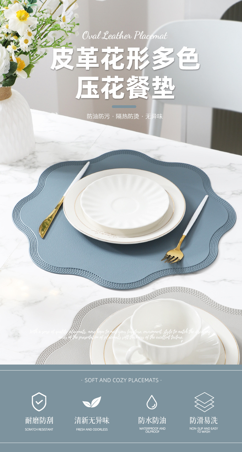 2025pvc cojín de mesa en relieve de cuero, mantel de flor de cuero espumado, mantel protector anti-escaldado de mesa, temu