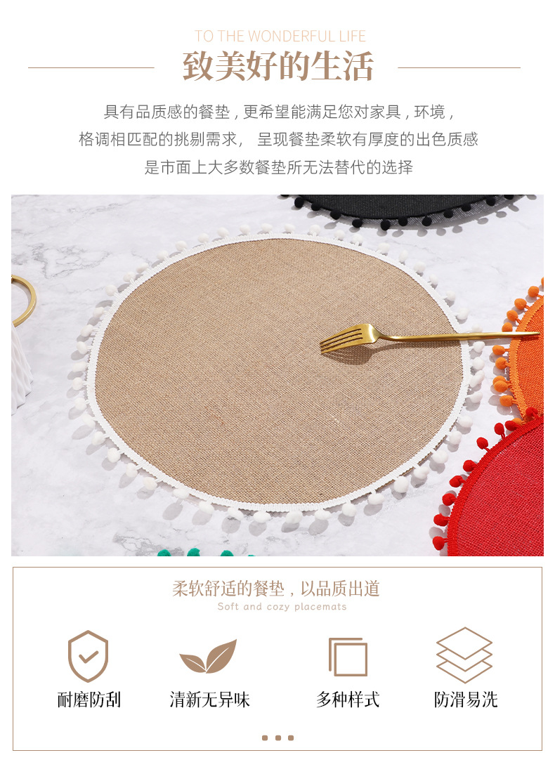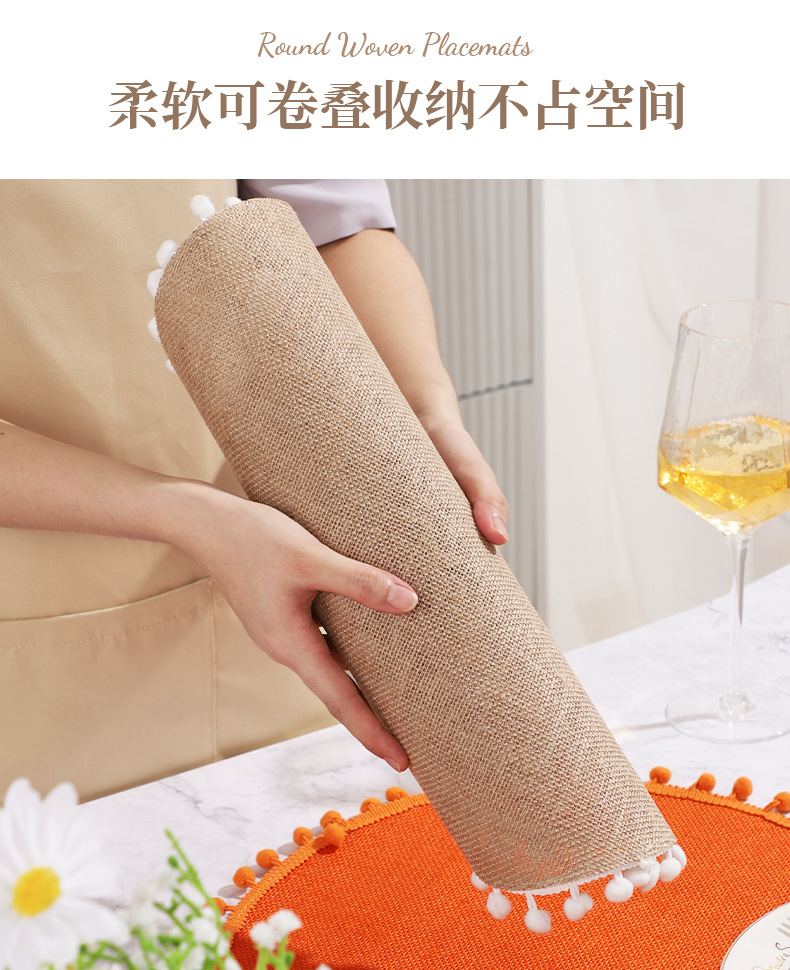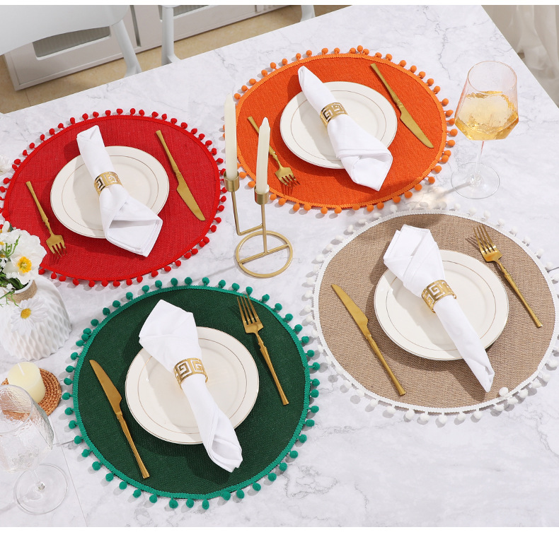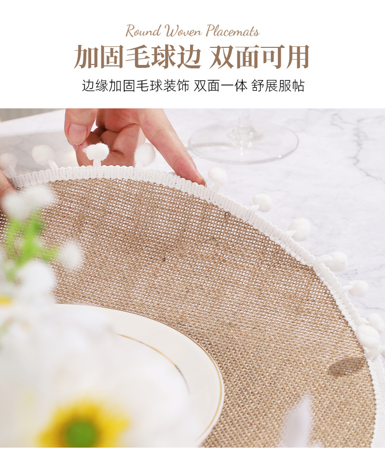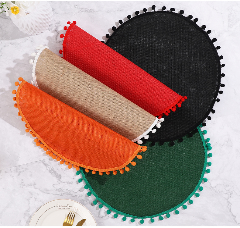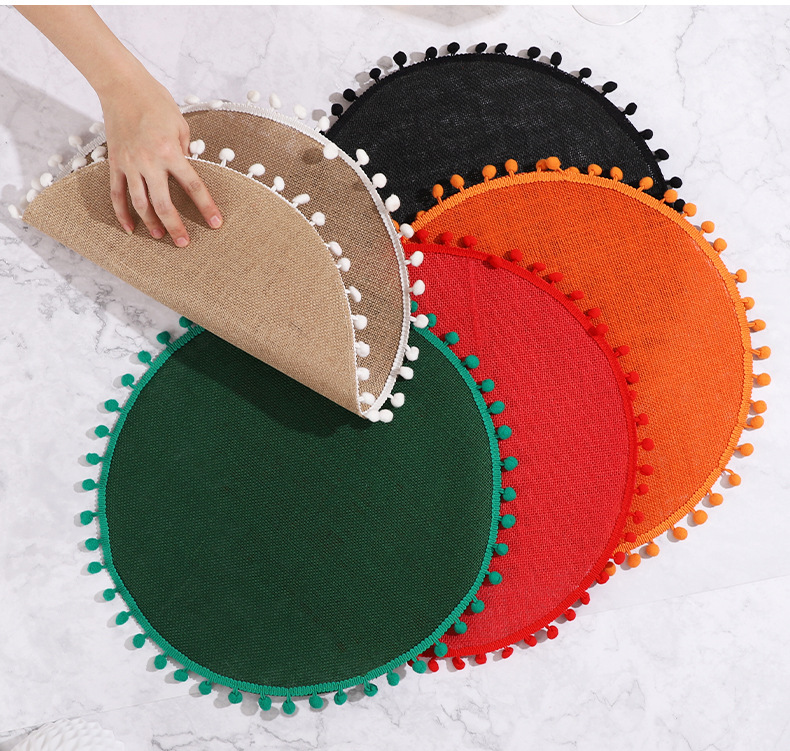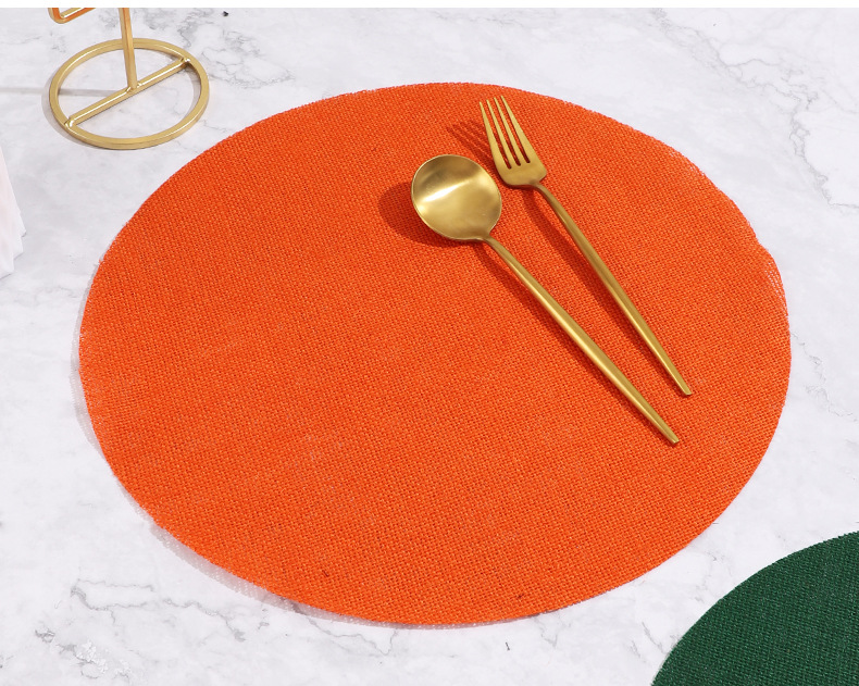 Navidad color transfronterizo mesa de comedor esteras de decoración de material yute esteras de comedor occidentales pueden ser redondas