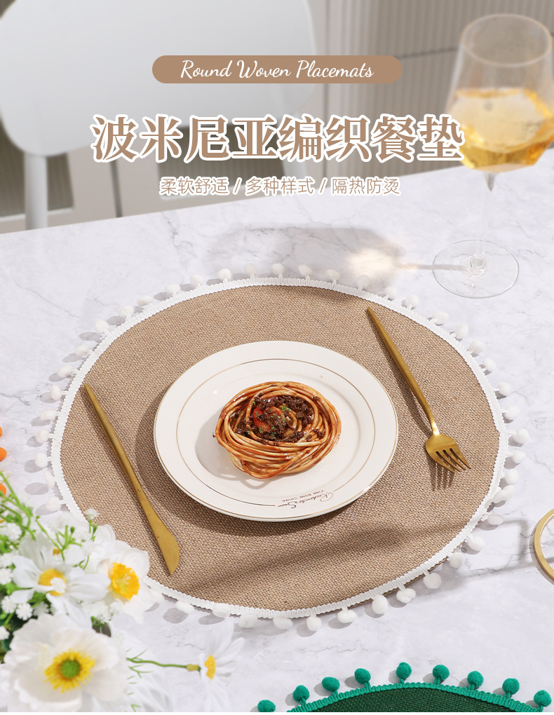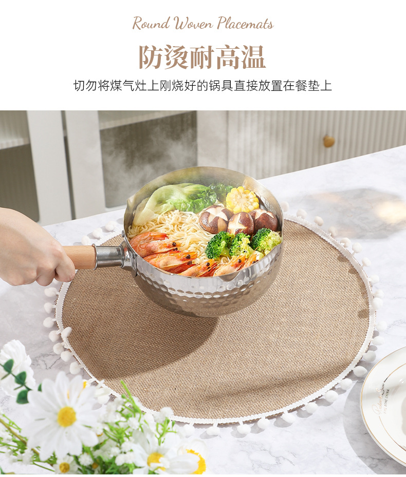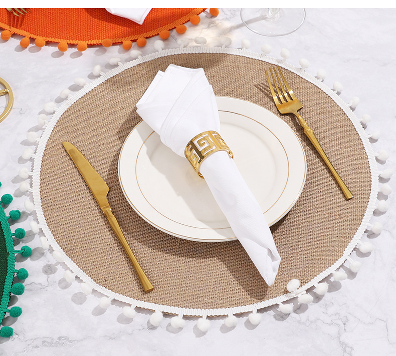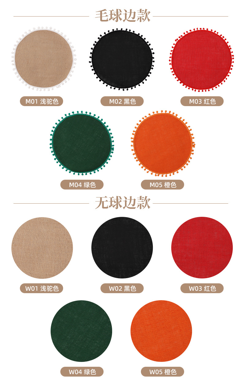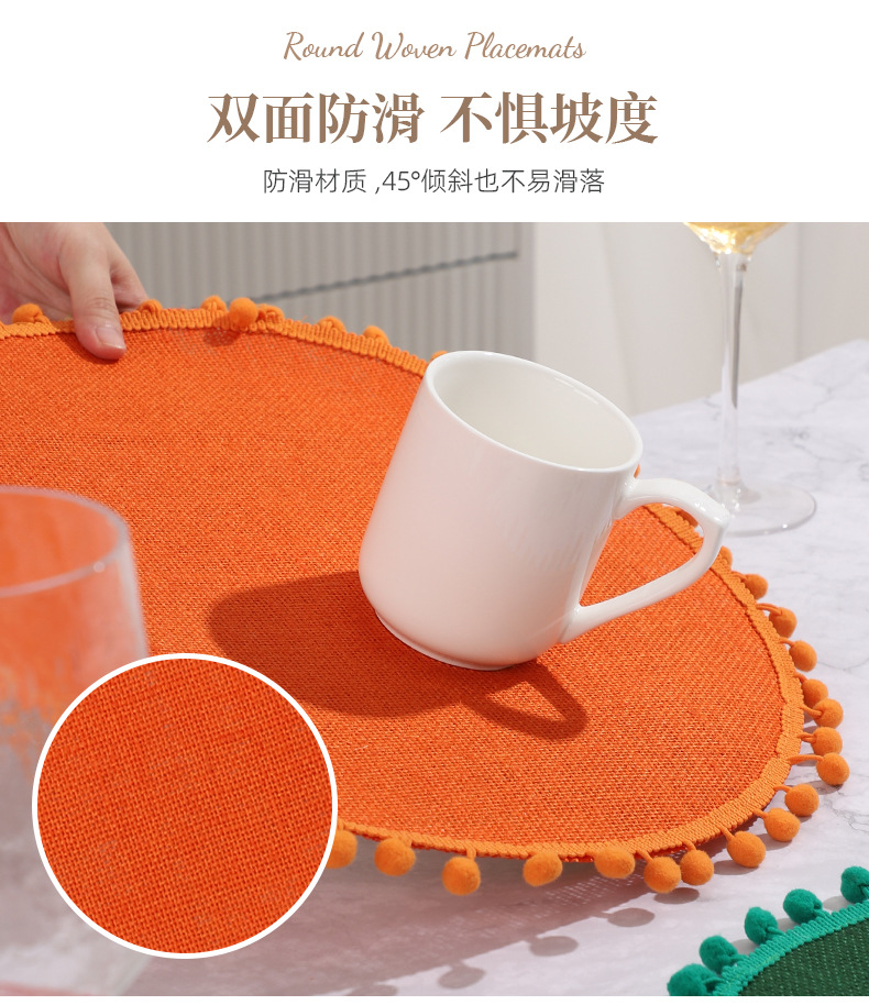 Navidad color transfronterizo mesa de comedor esteras de decoración de material yute esteras de comedor occidentales pueden ser redondas