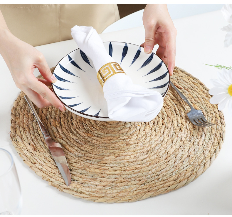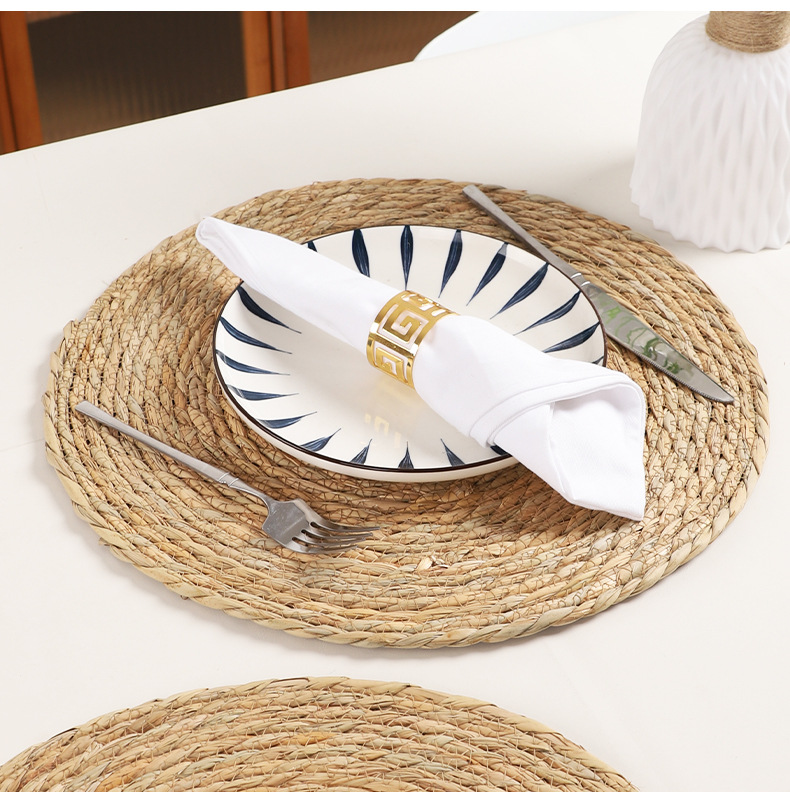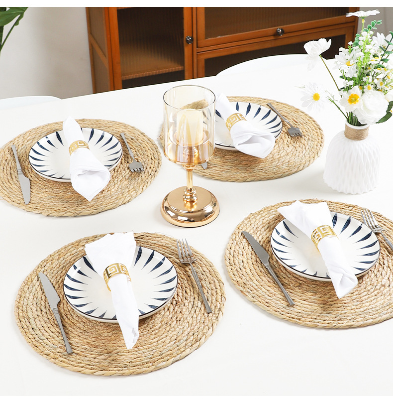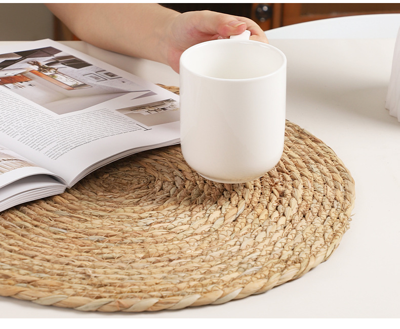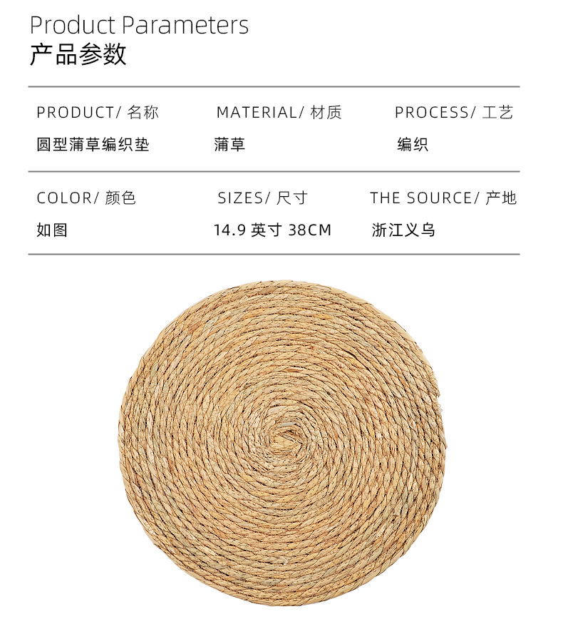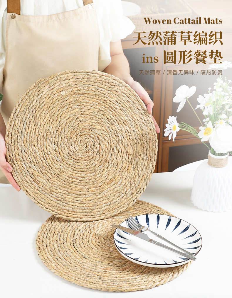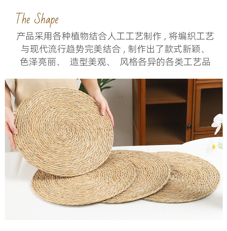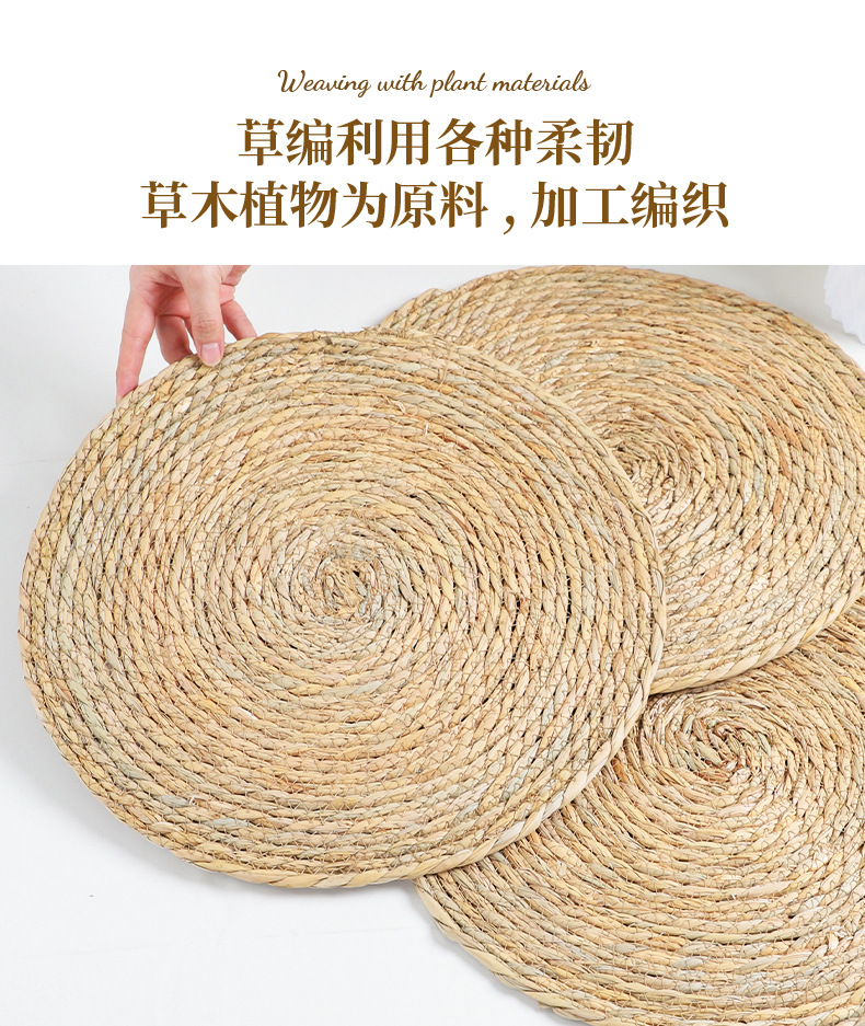 Temu venta caliente planta seda hierba tejido redondo aislamiento térmico alfombra de mesa alfombra de ambiente estudiantes mantel de olla