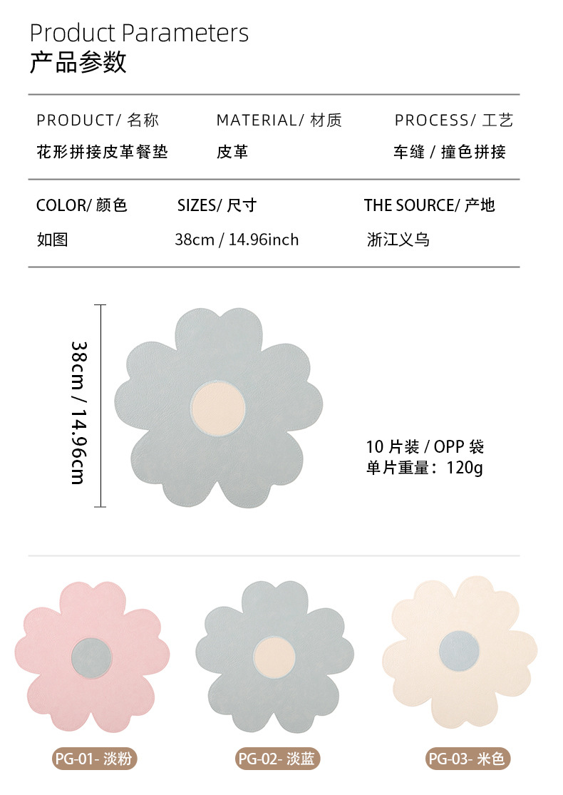 | Número de artículo | Leather-Flower Stitching Leather Comedor Mat |