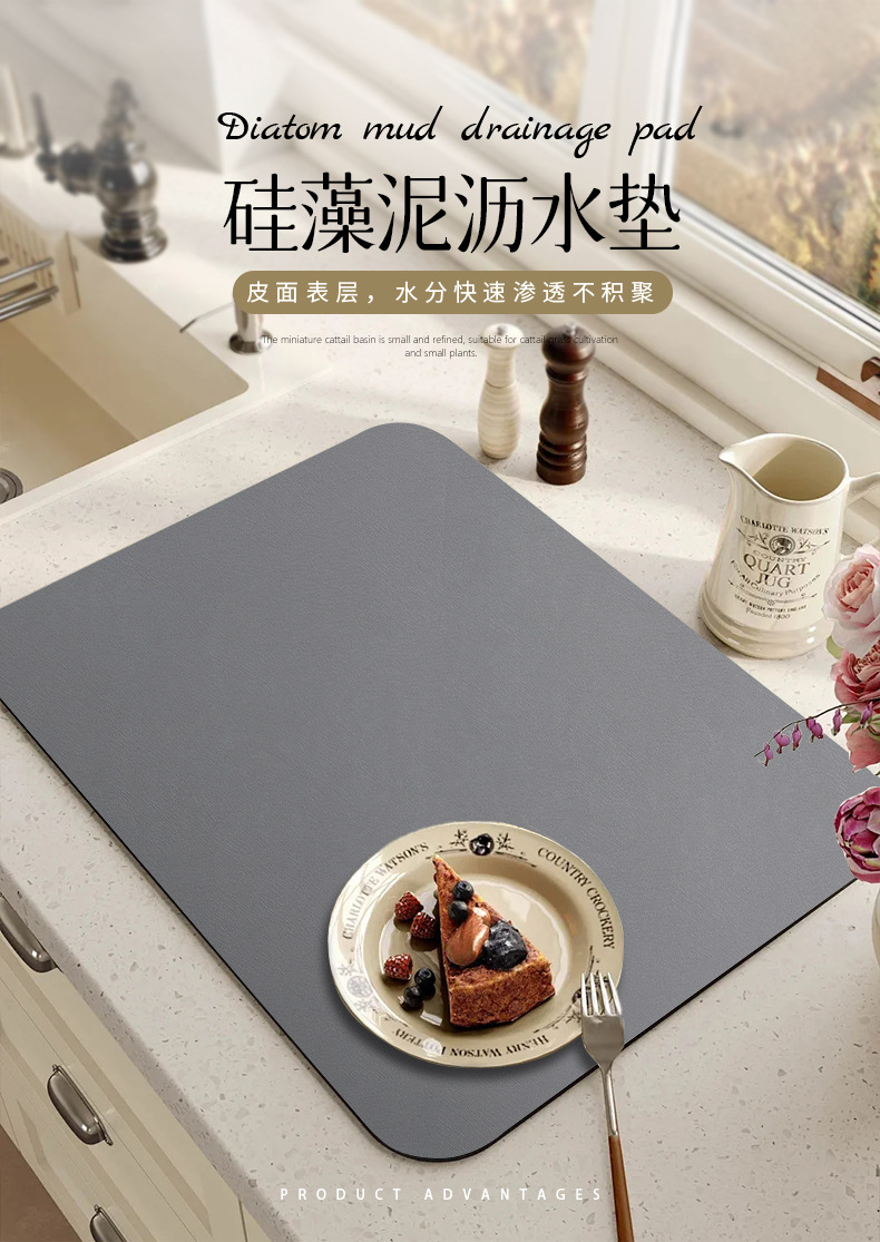 Almohadilla absorbente de piel de barro de diatomeas, mesa de lavado, almohadilla de drenaje, mantel para mascotas, almohadilla de aislamiento térmico de goma antideslizante y absorbente