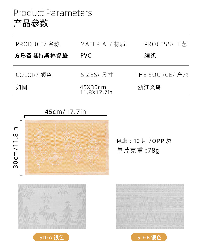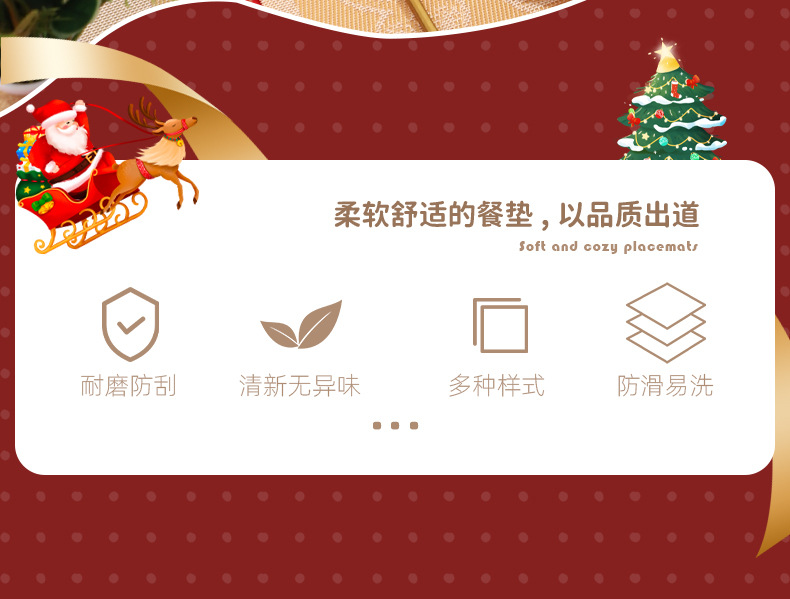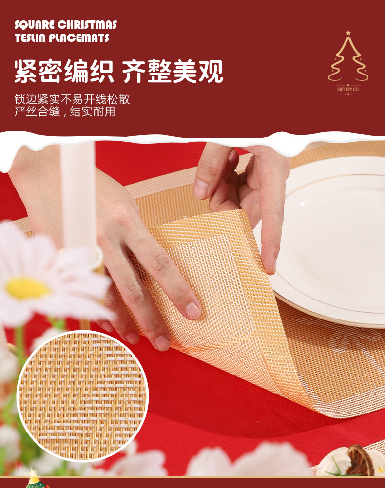 Elementos de almohadilla de Navidad rectangular simple almohadilla de comedor occidental aislante de tazas almohadilla de decoración de platos de comedor caseros de Navidad limitada