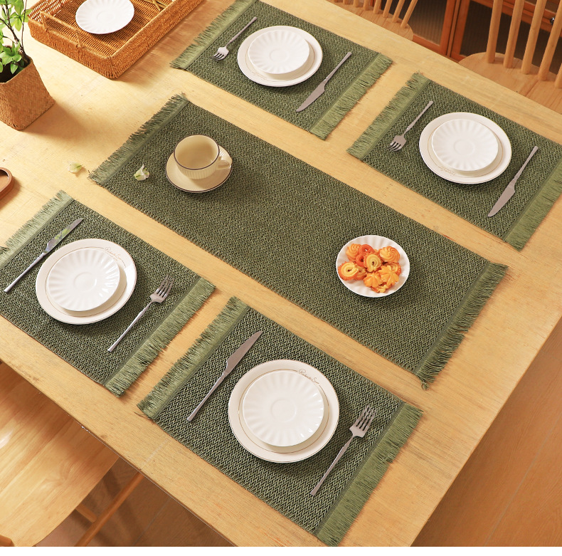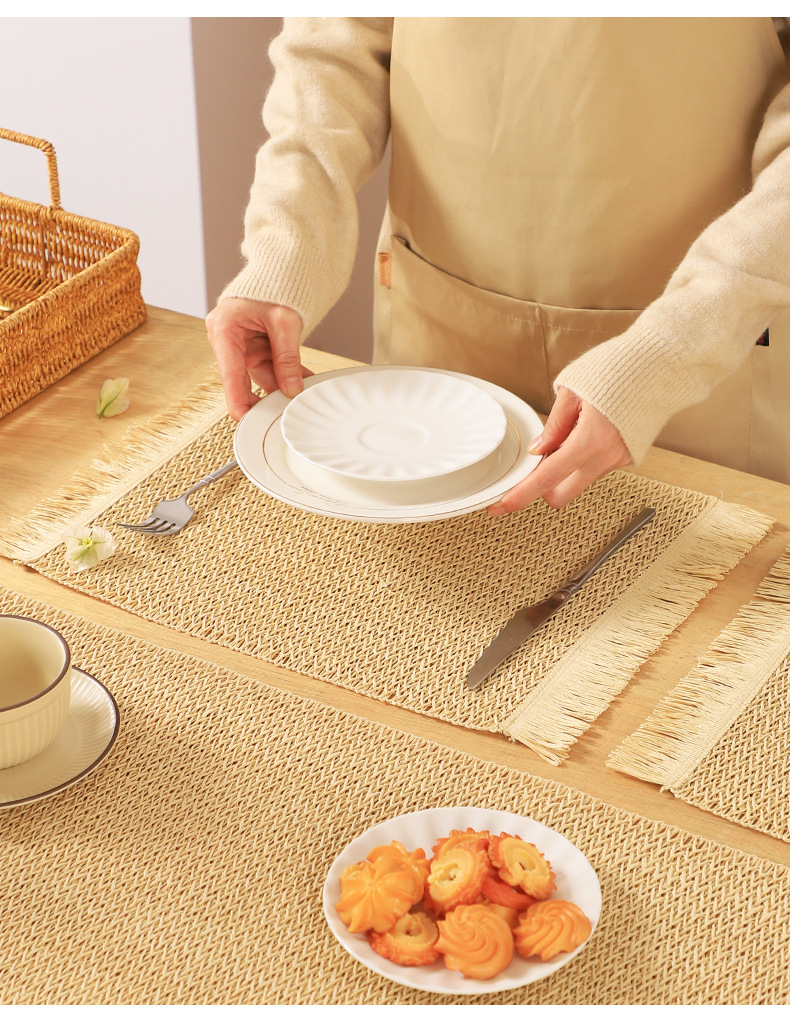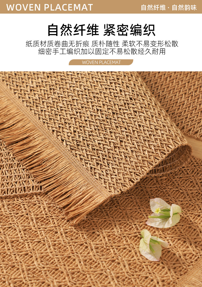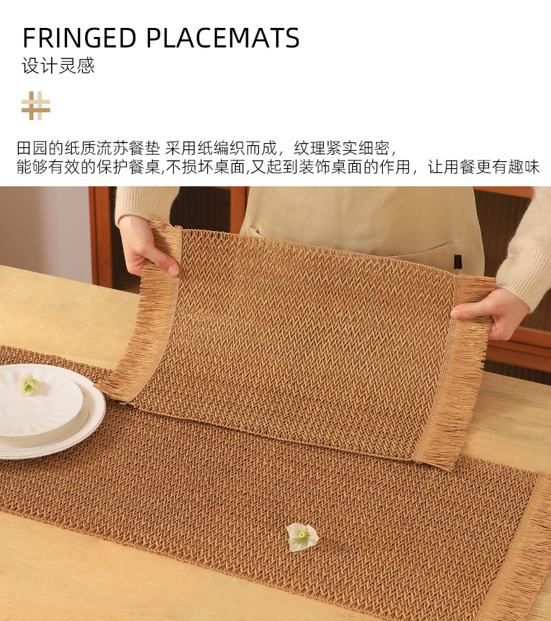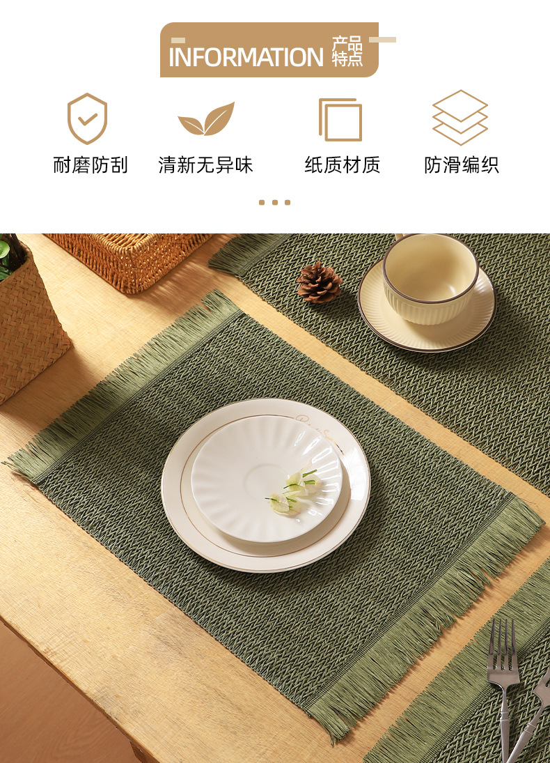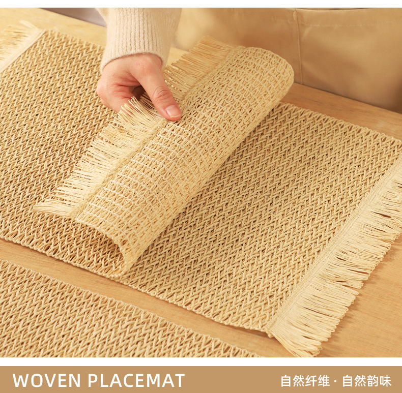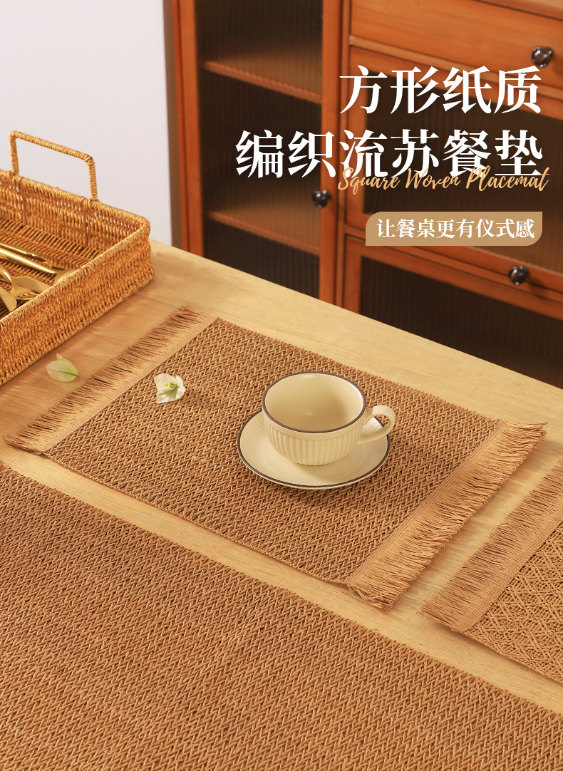 Almohadilla de mesa tejida de papel de color natural rectangular al por mayor transfronterizo, posavasos de aislamiento térmico, protección de escritorio de protección ambiental japonesa