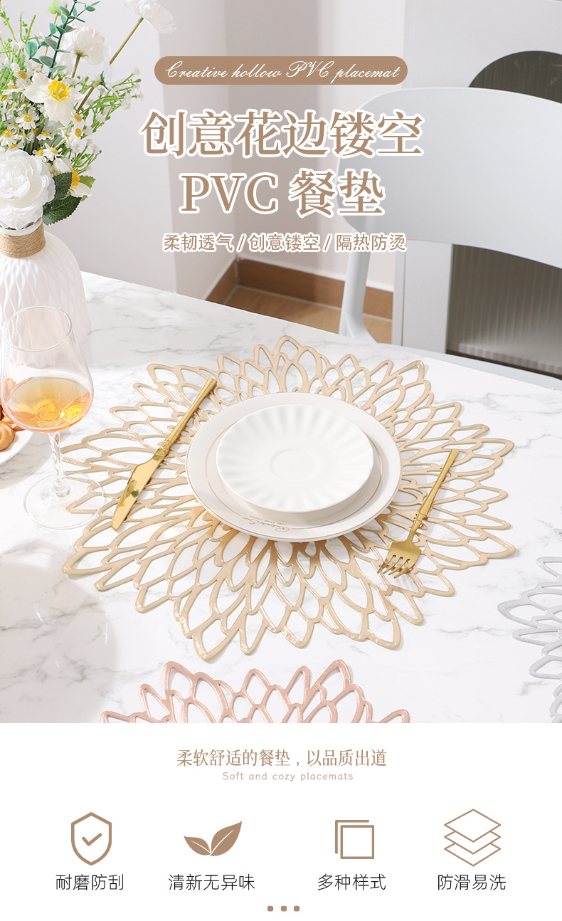Venta caliente transfronteriza almohadilla de aislamiento de estampado en caliente de pvc sentido avanzado hogar estilo ins alfombra de mesa exterior protección de escritorio mantel occidental