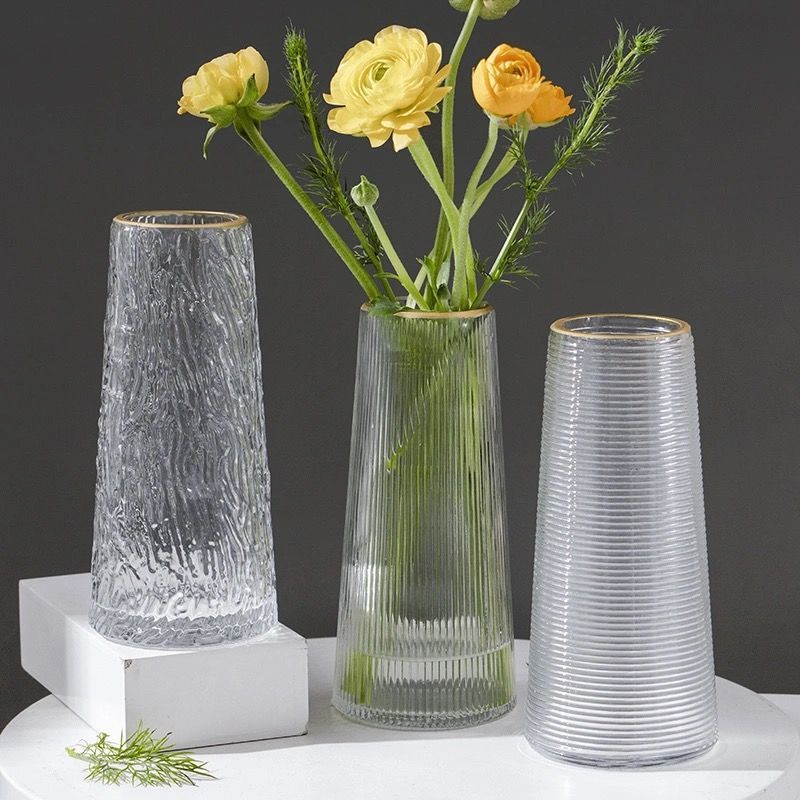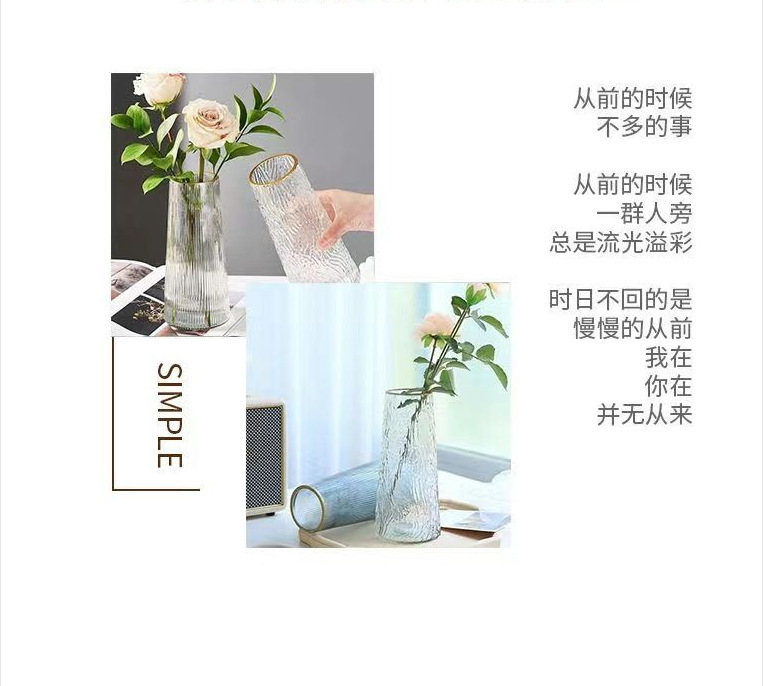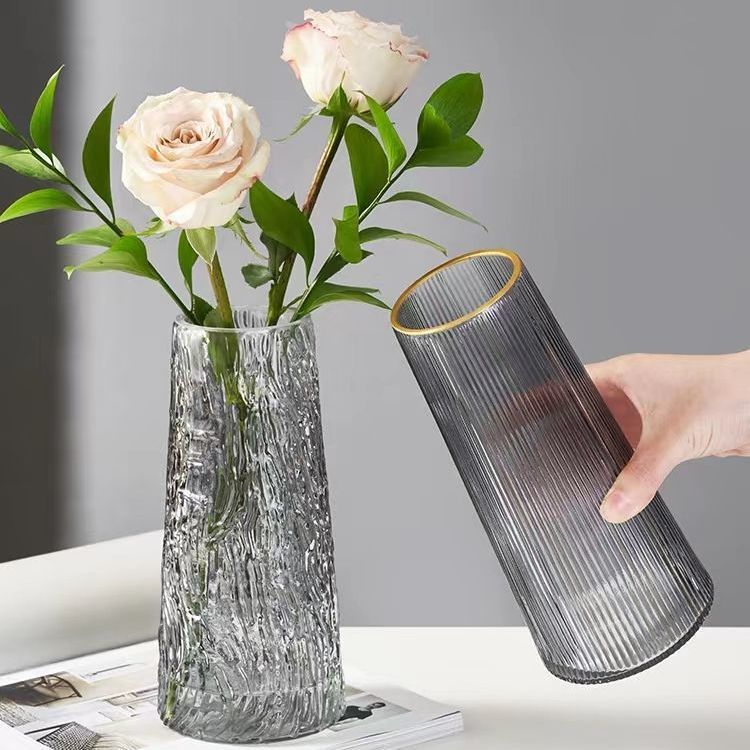 Vaso de vidrio transparente creativo de escritorio de agua rosa flor