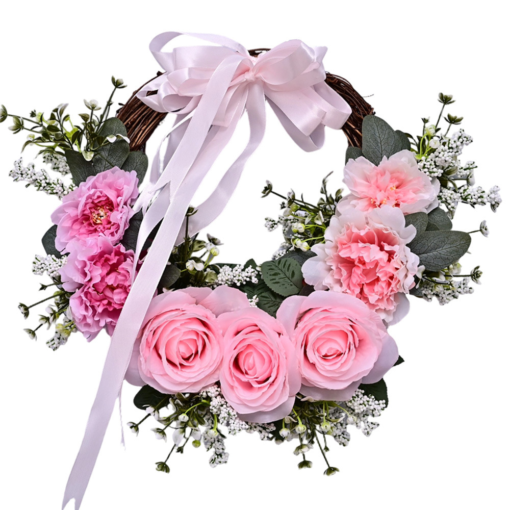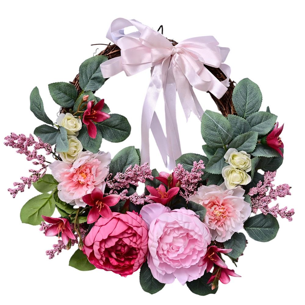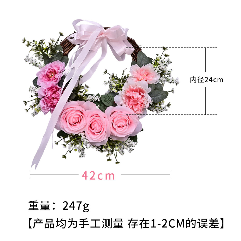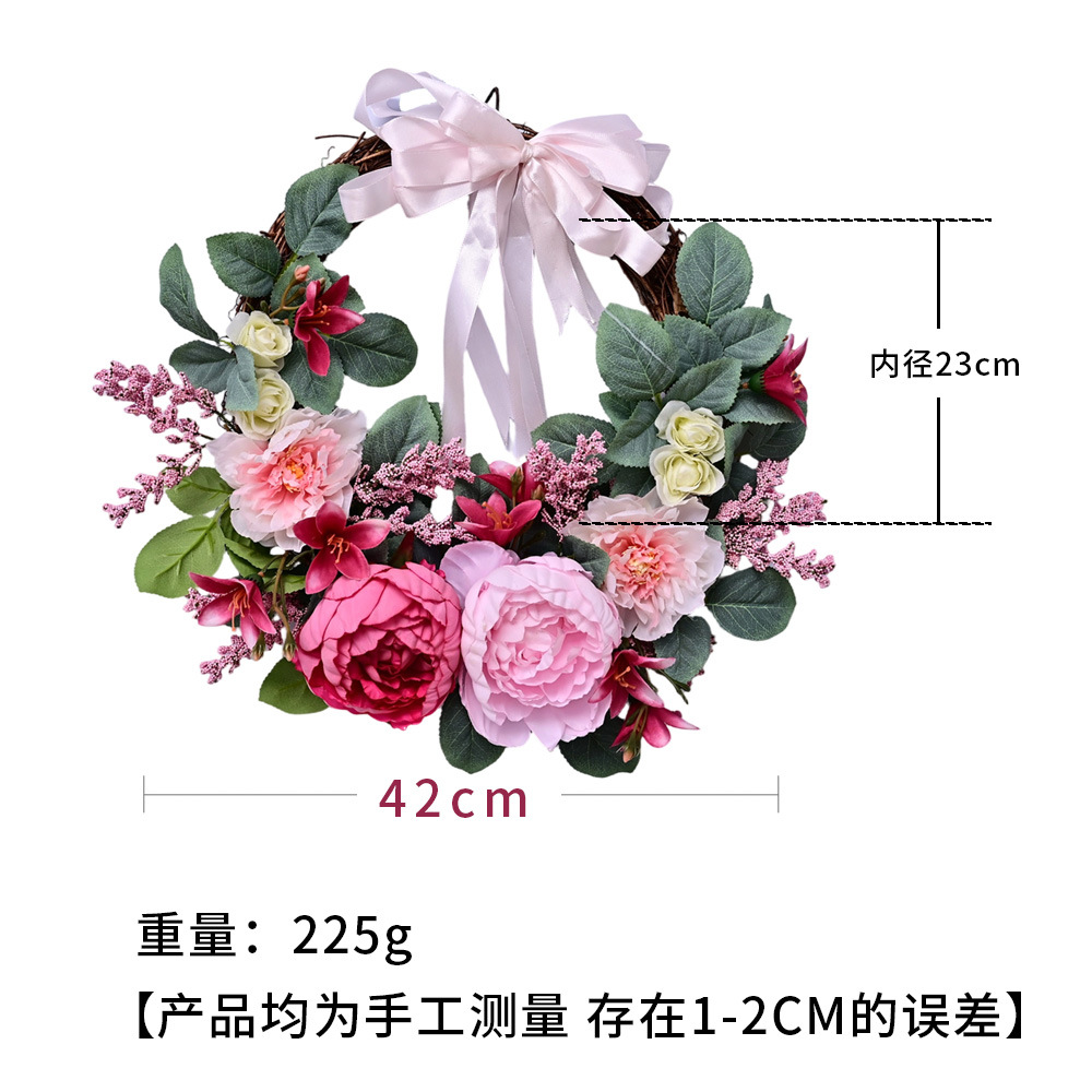 Al por mayor transfronterizo de flores de peonía coronas de flores de hojas verdes de color rosa colgando la puerta colgando la decoración de la casa de vacaciones coronas de flores accesorios colgando la pared