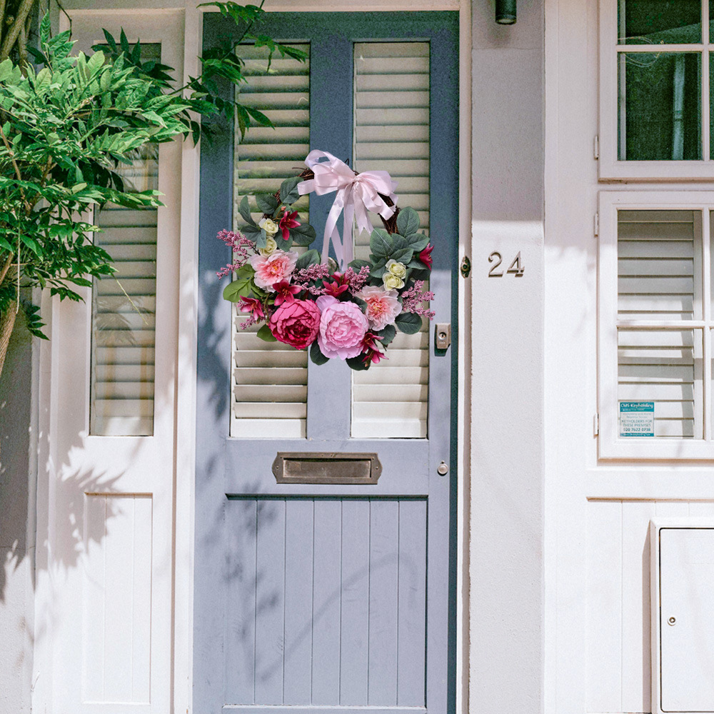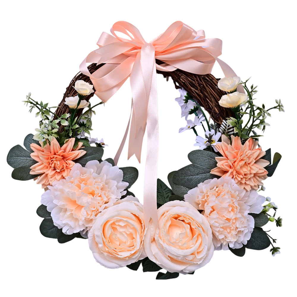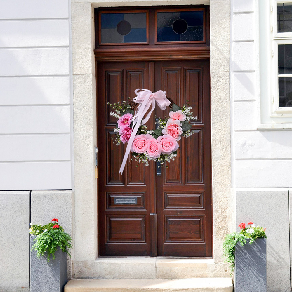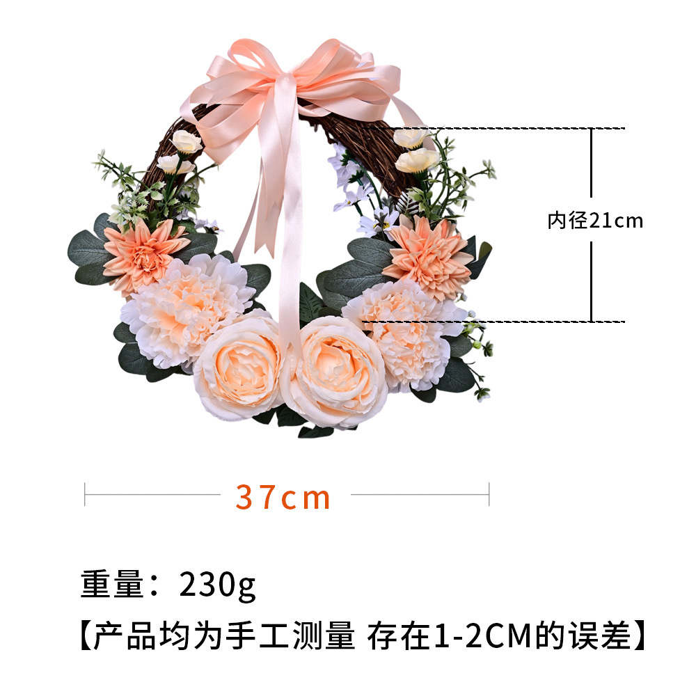 Al por mayor transfronterizo de flores de peonía coronas de flores de hojas verdes de color rosa colgando la puerta colgando la decoración de la casa de vacaciones coronas de flores accesorios colgando la pared