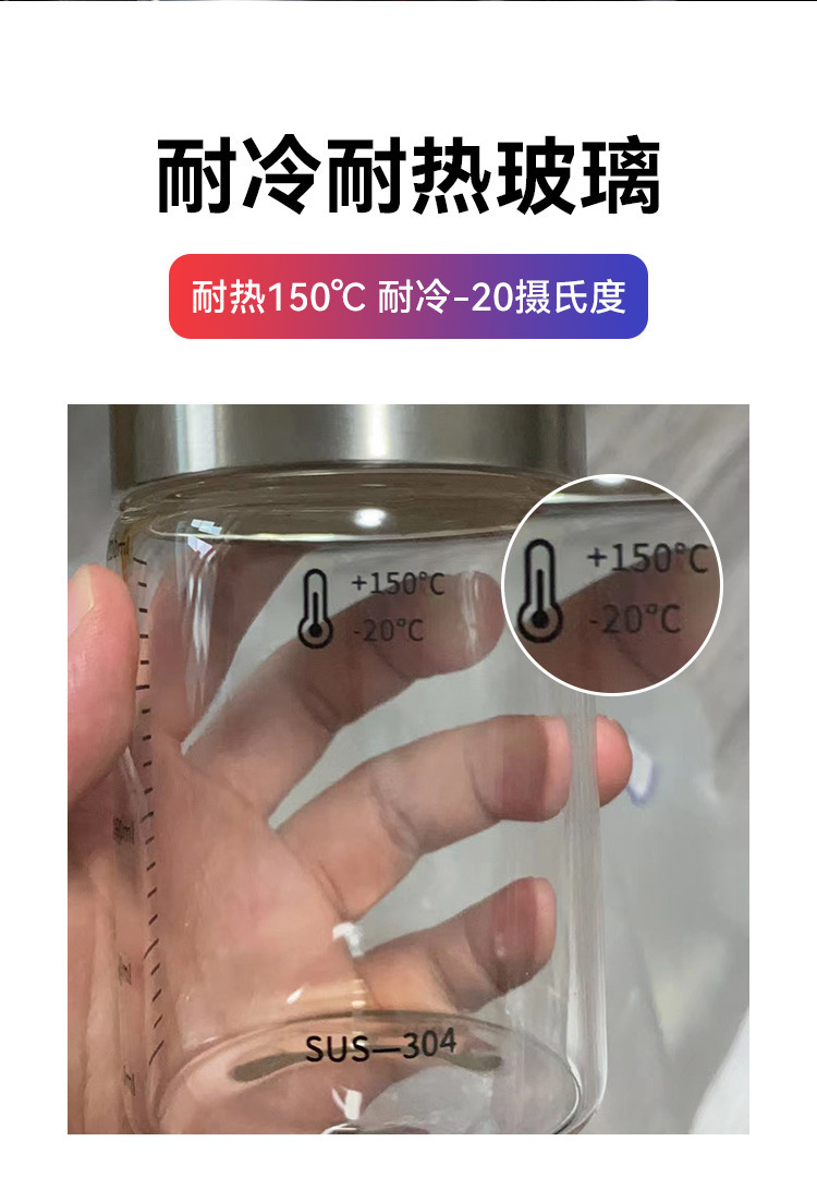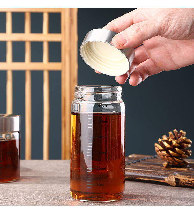 Taza de vidrio resistente a altas temperaturas doméstica portátil de almacenamiento de líquido medicinal sellado botella de alta borosilicina