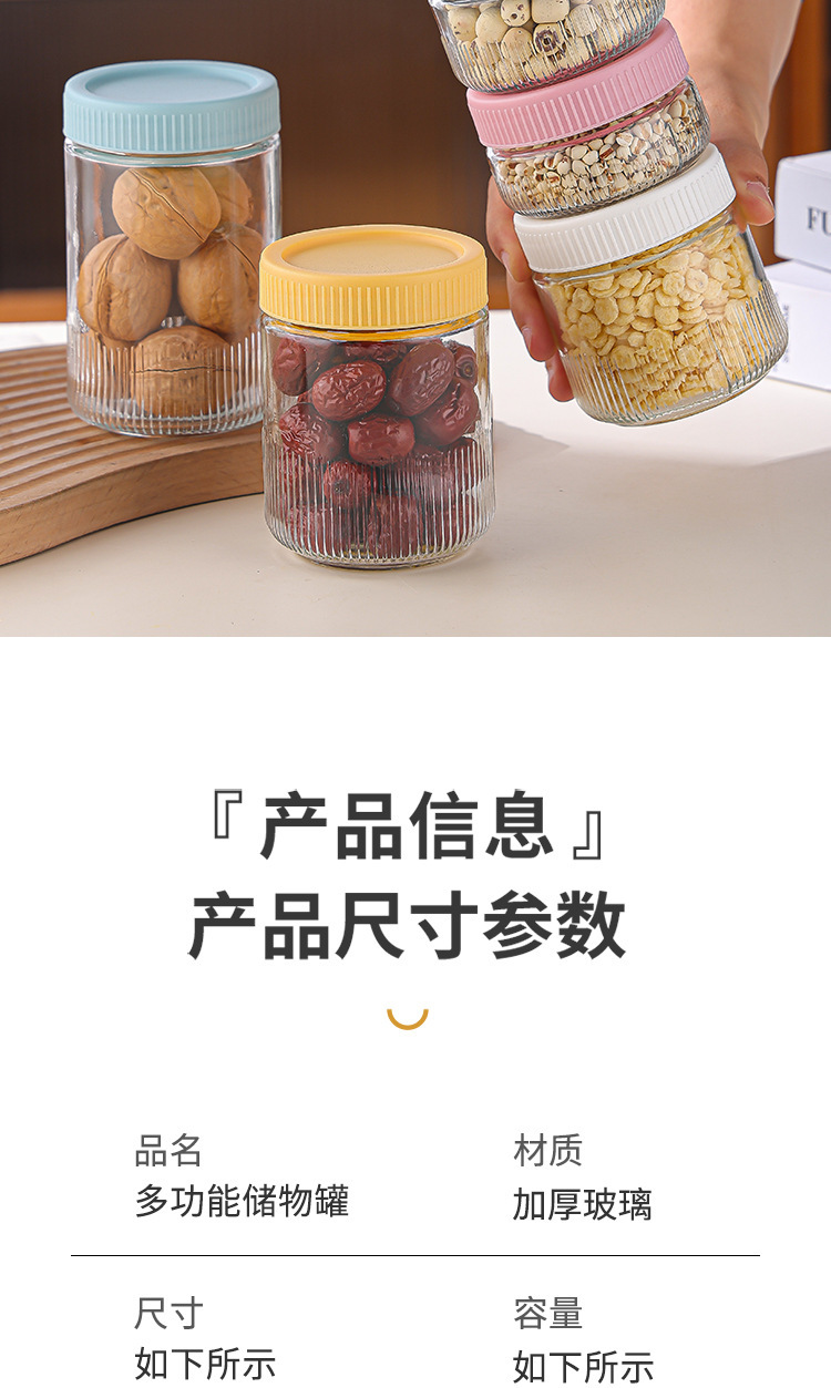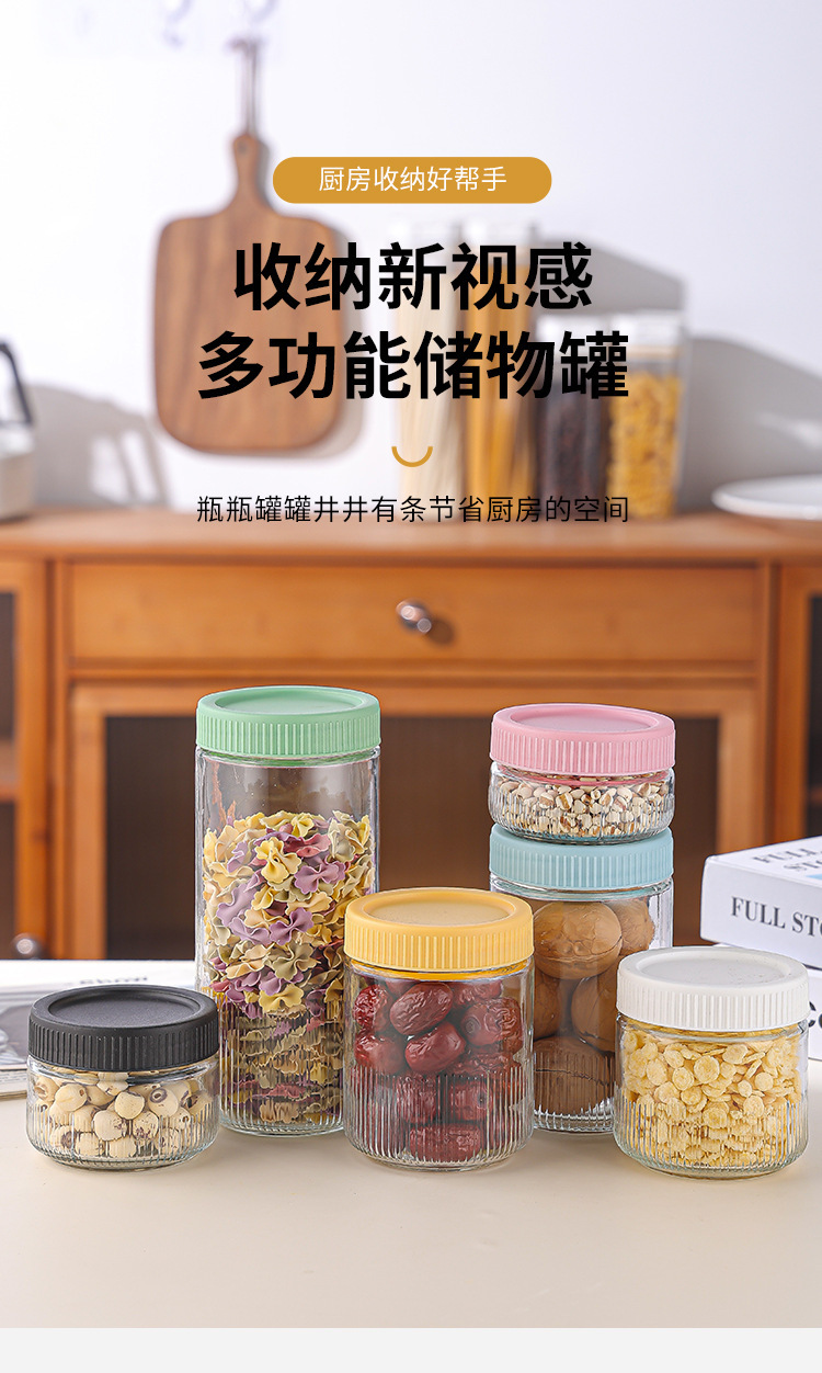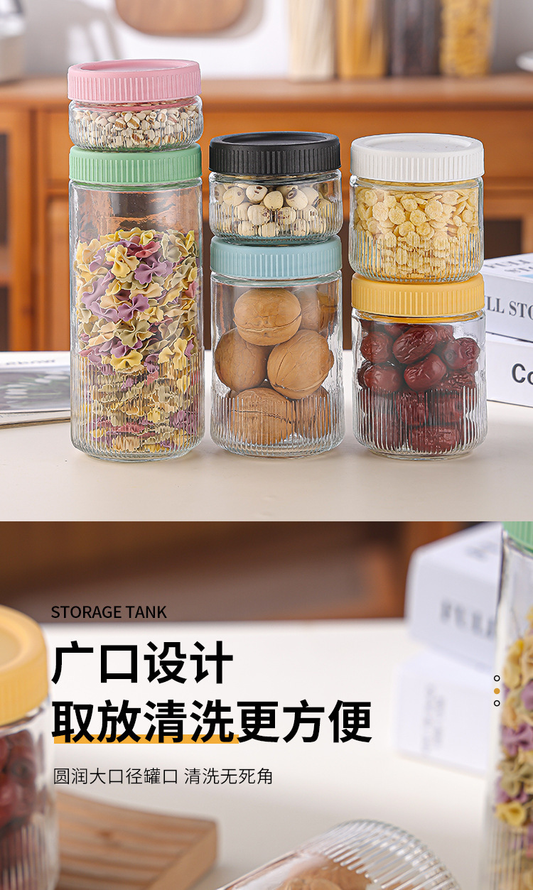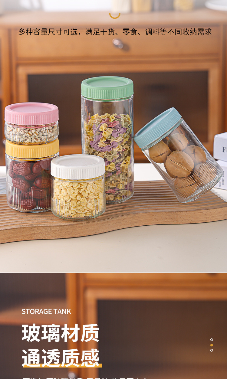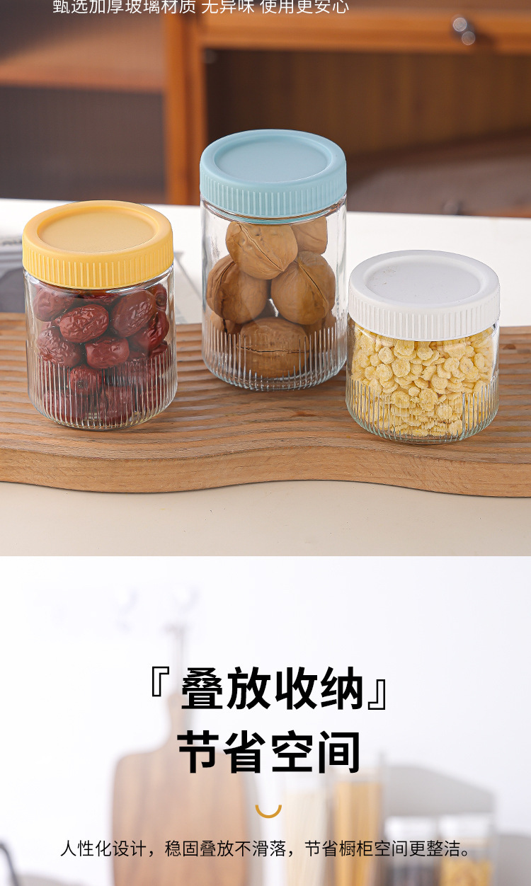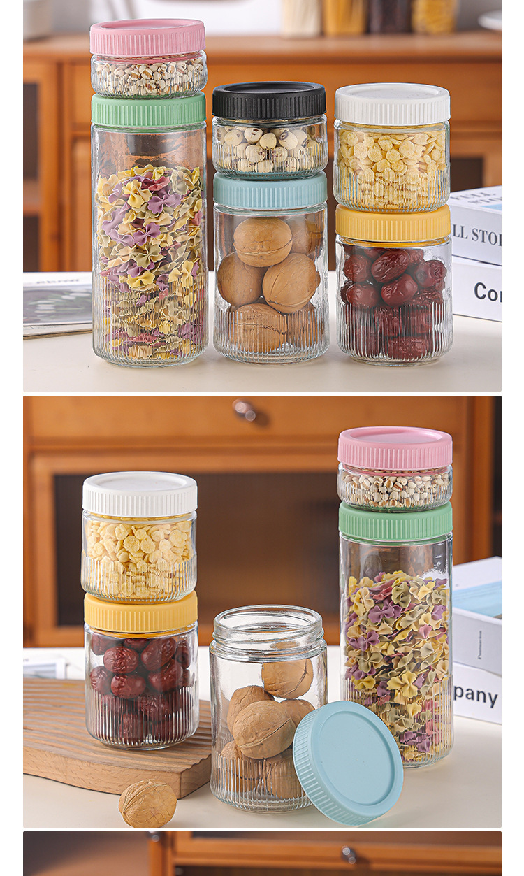 Tanque de almacenamiento de vidrio a rayas multifuncional granos domésticos granos de cocina frutas secas frasco sellado botella de salsa de miel