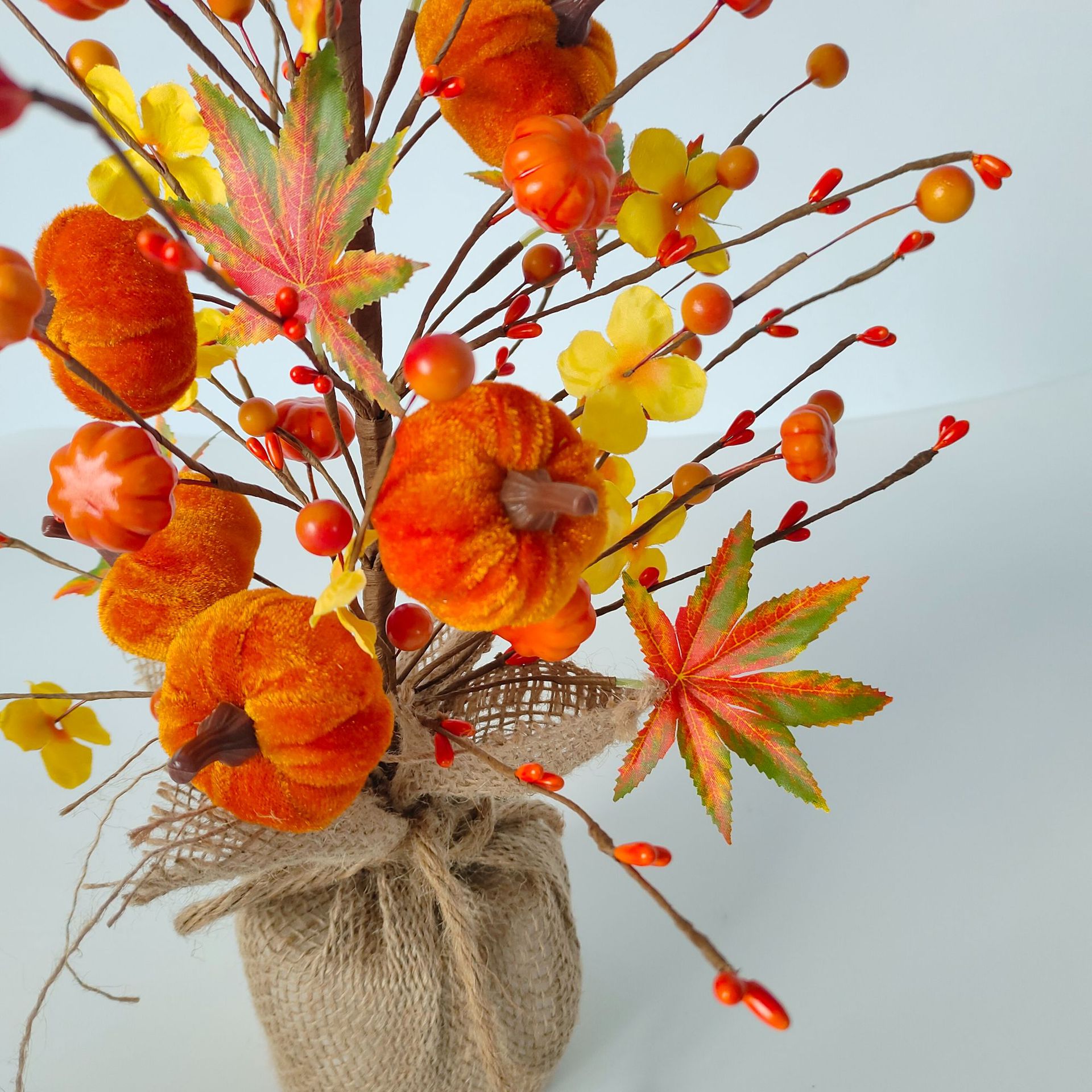 Simulación bayas franela calabaza decoración árbol pequeño decoración de mesa festival de la cosecha de otoño día de acción de gracias árbol de arce de Halloween