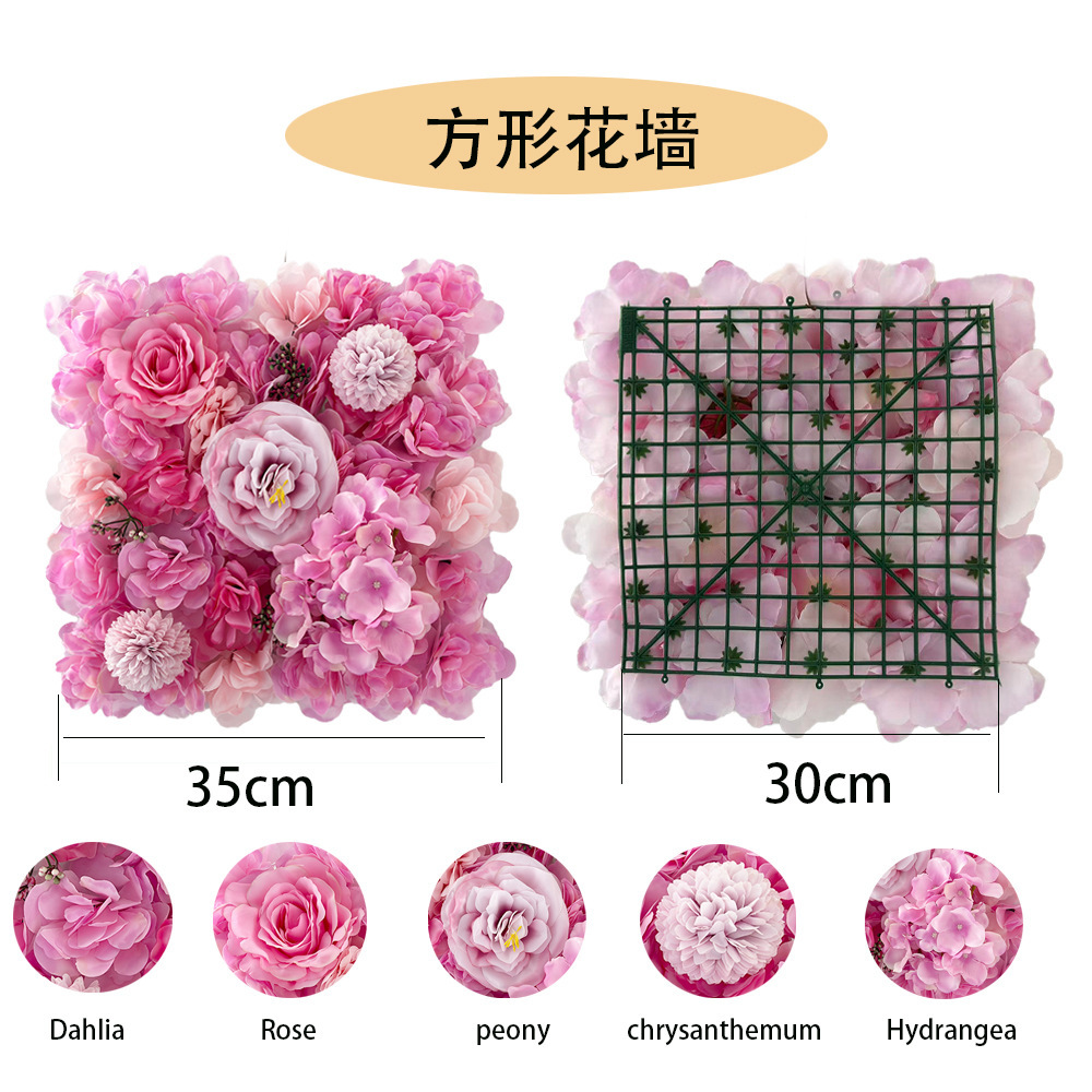 Pared de flores simulada rosa pared de plantas de bodas artículos de fondo decoración pared de flores falsas peonía diseño de fila de flores del centro comercial