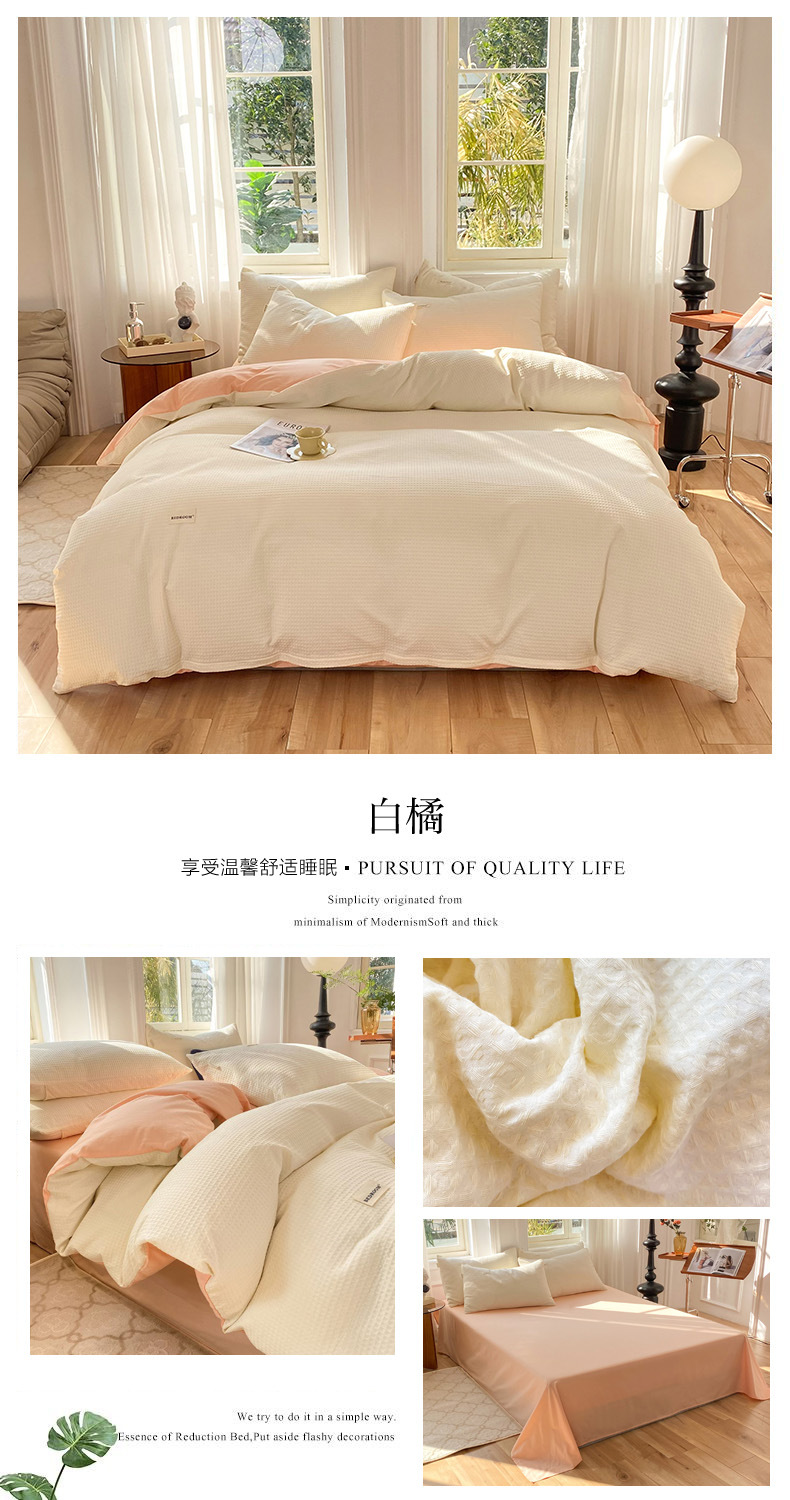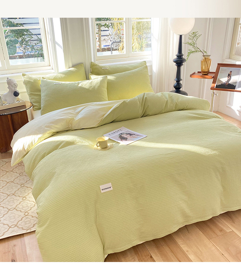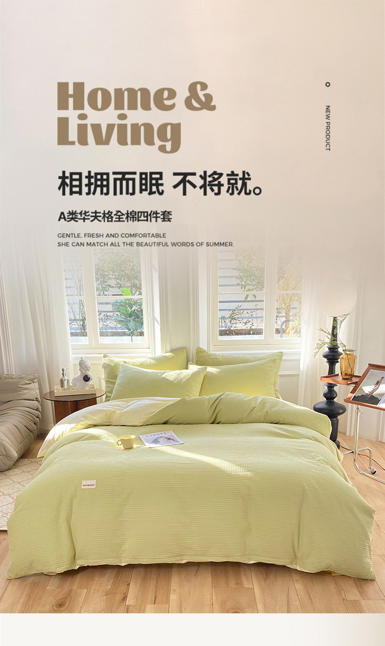 Clase A de alta gama de algodón waffle de cuatro piezas de algodón japonés waffle hoja de cama cubierta del edredón ins ropa de cama de algodón puro