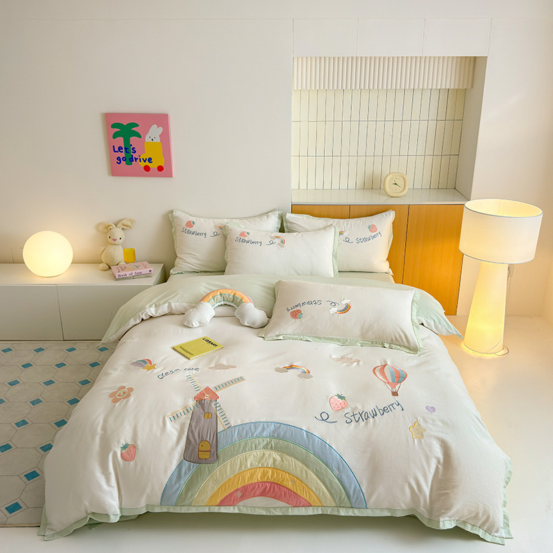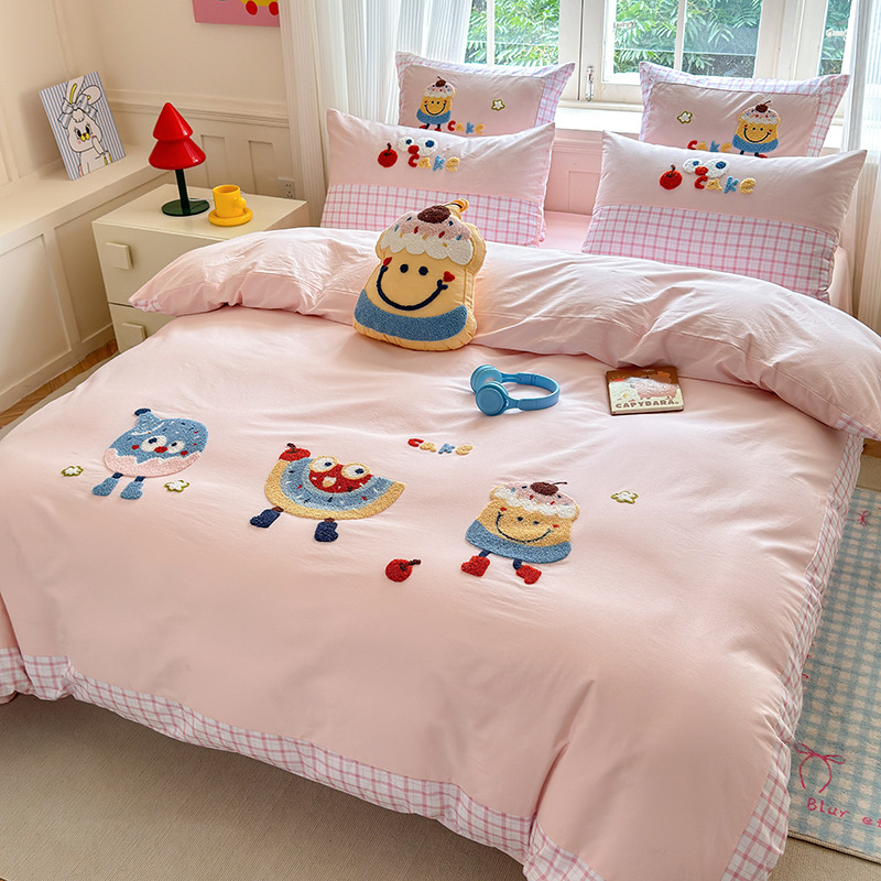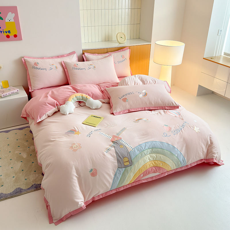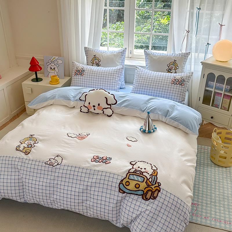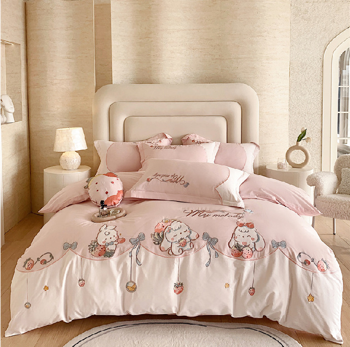 Juego de cuatro piezas de algodón para niños de alta gama 100 dormitorio estudiantil algodón lindo ropa de cama de algodón de tres piezas