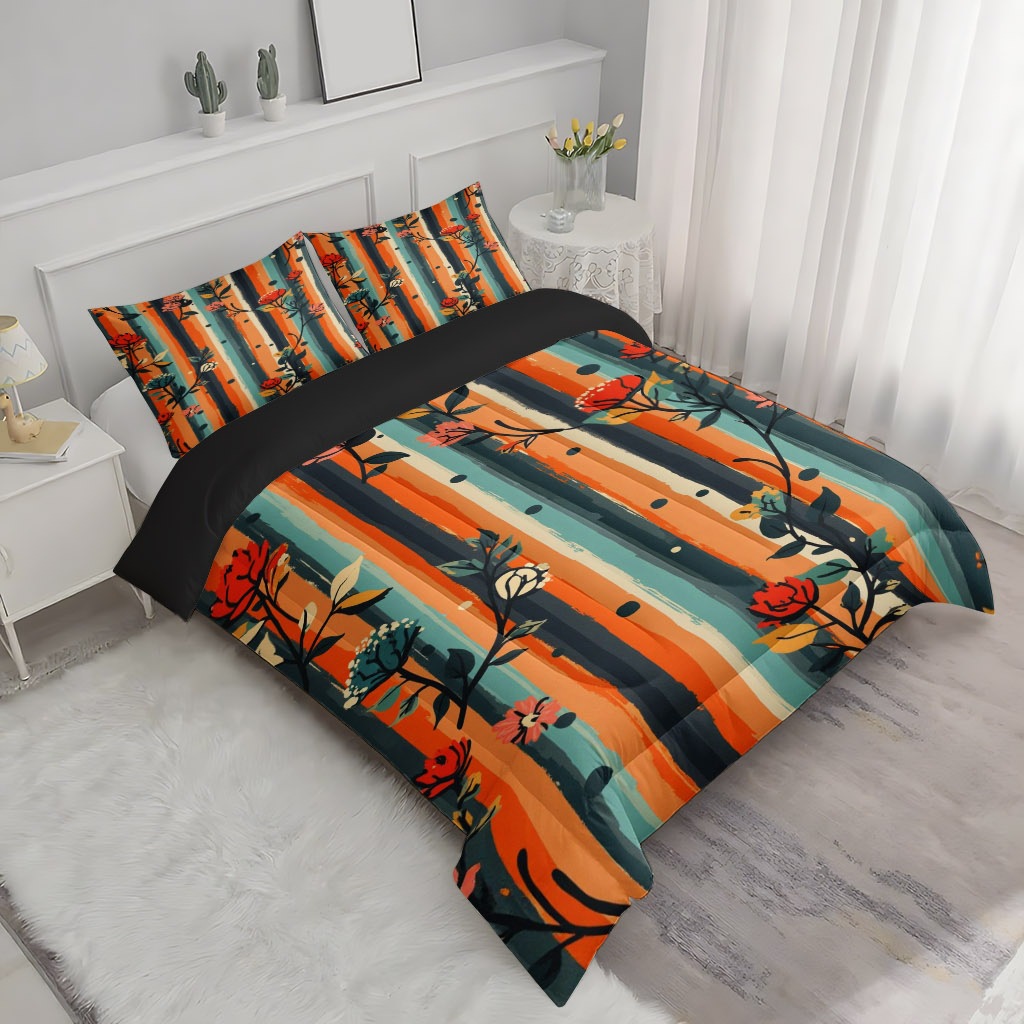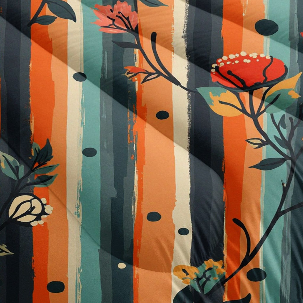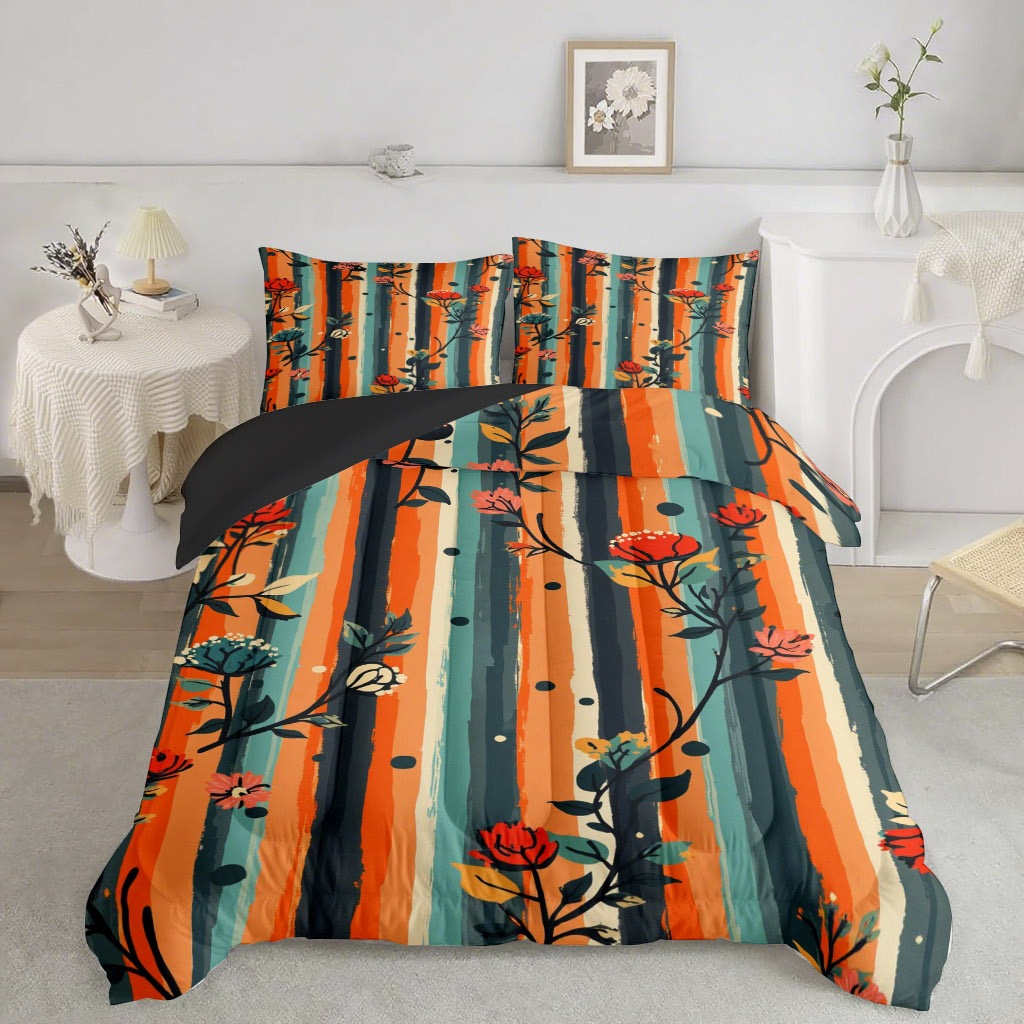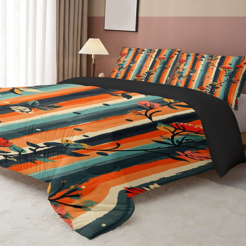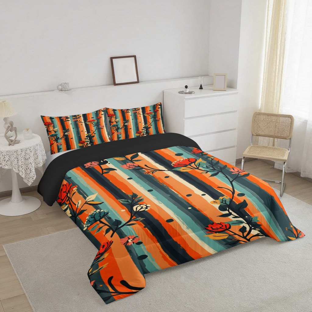 TEMU / JIT transfronterizo multicolor estriado floral HD impresión digital 180gms colcha colcha colchón kit