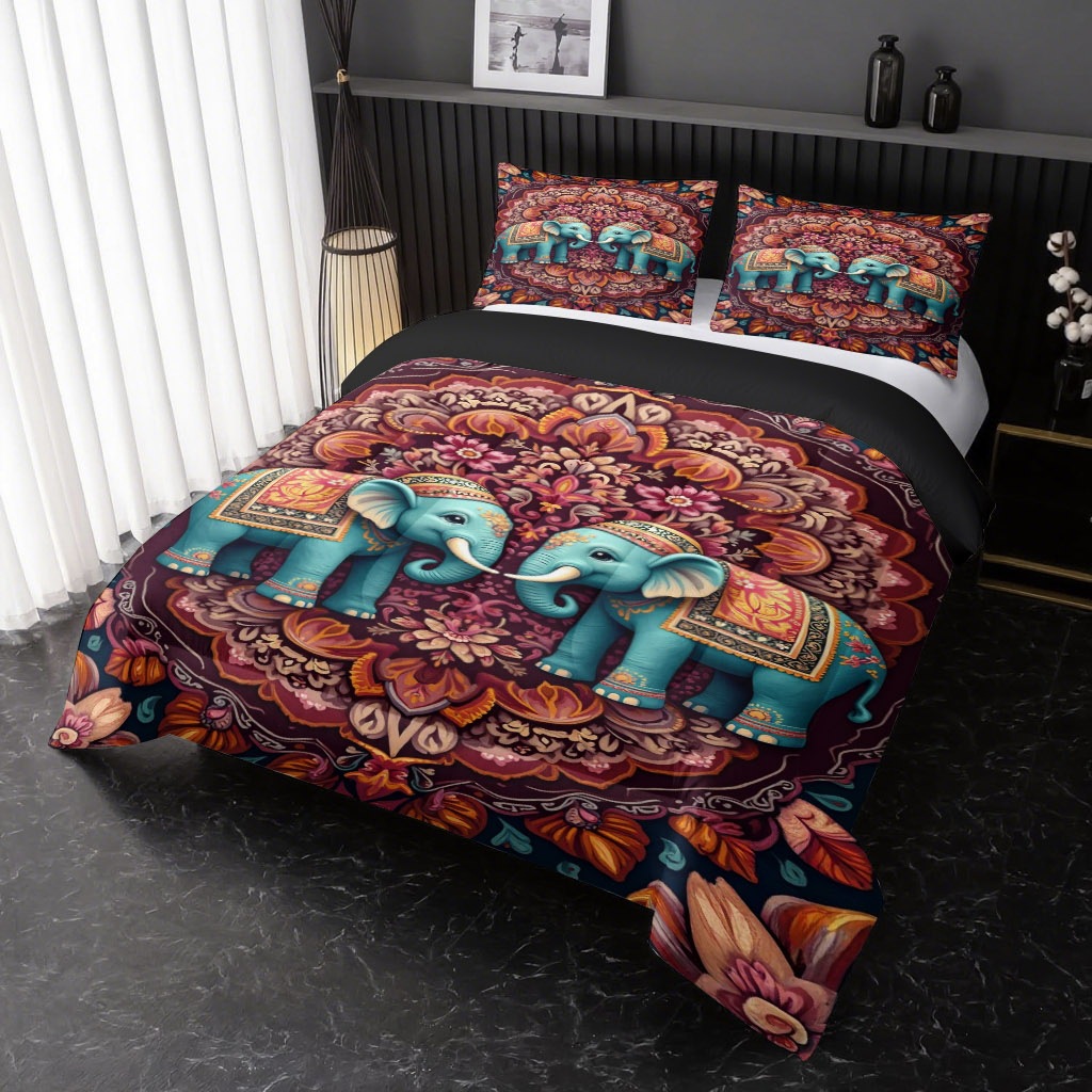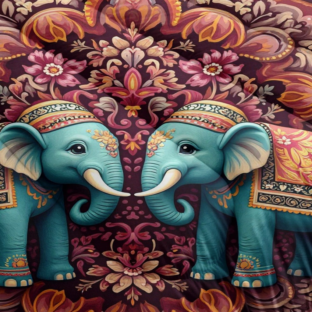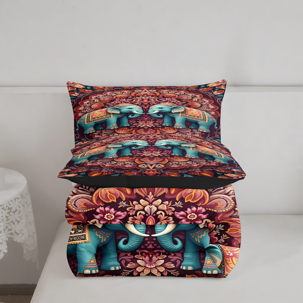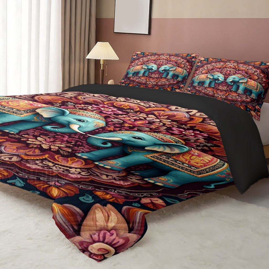TEMU / JIT mango elefante impresión digital 3D 180gms colcha colcha ajuste de almohada para diseñar