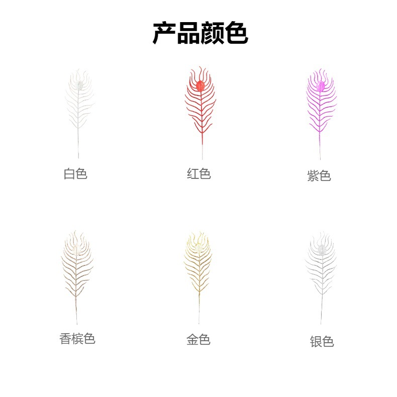 Transfronterizo franquicia de nueva serie de polvo de oro de plástico imitación de decoraciones navideñas 37cm de polvo de oro hojas de pavón