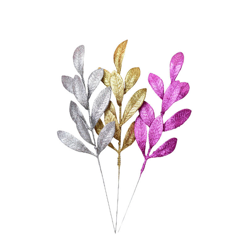 Navidad polvo de oro hojas plástico 36cm árbol de Navidad material decoración adornos hojas de árbol imitación hojas de árbol de oro polvo