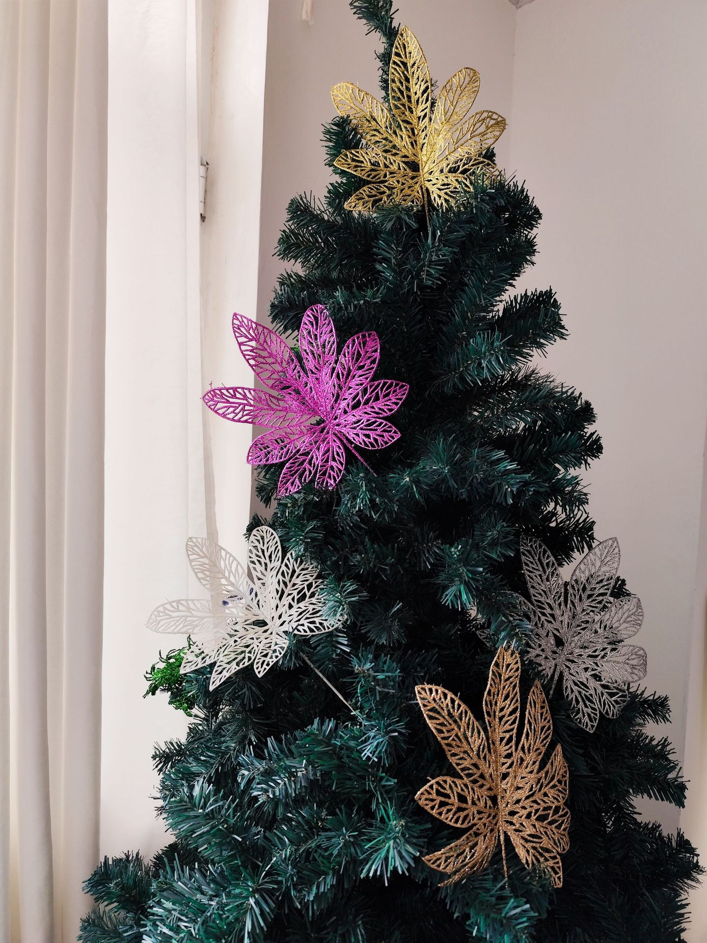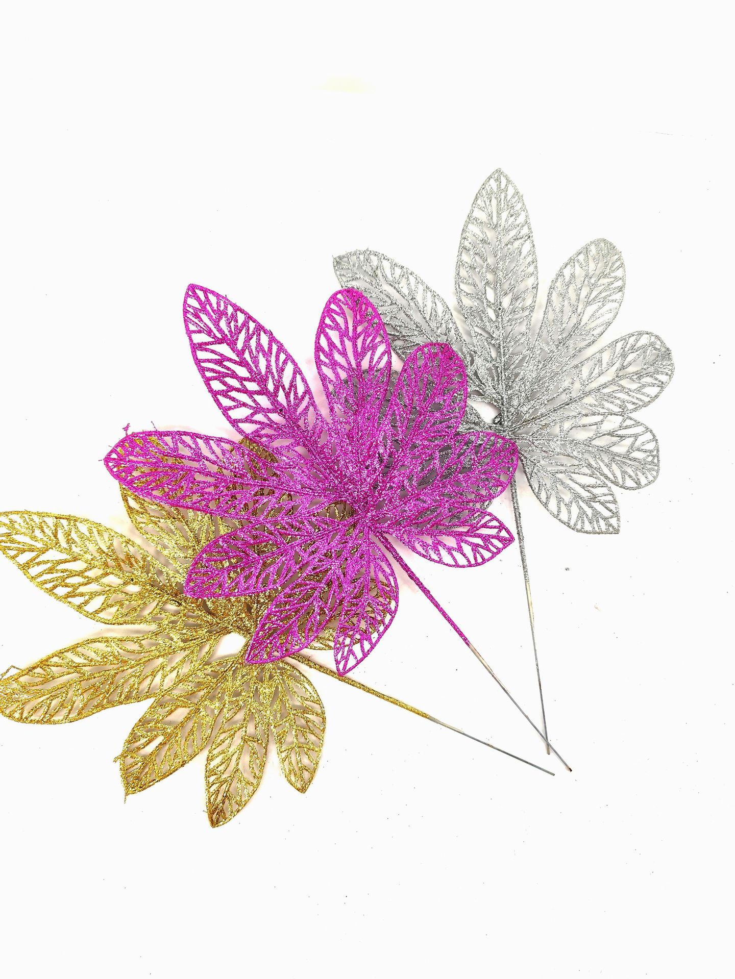Transfronterizo nuevo polvo de oro de Navidad de imitación de gran tamaño, decoración especial de Navidad, adornos para el hogar, polvo de oro, hojas de bayam