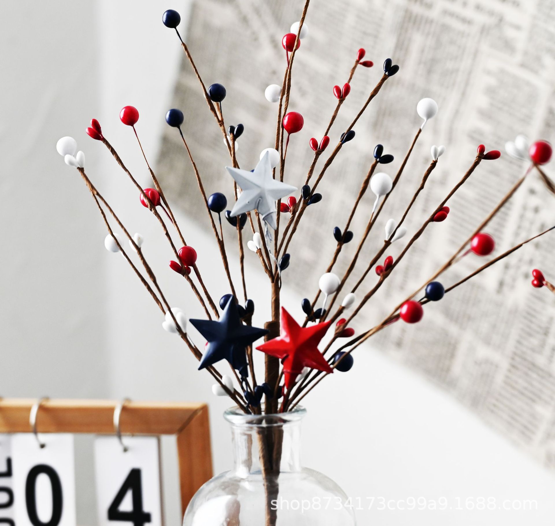 Día de la Independencia transfronterizo de Estados Unidos Día de la Independencia de Estados Unidos Decoraciones Rojo, Blanco, Azul, Planta de la Independencia Flores Simuladas