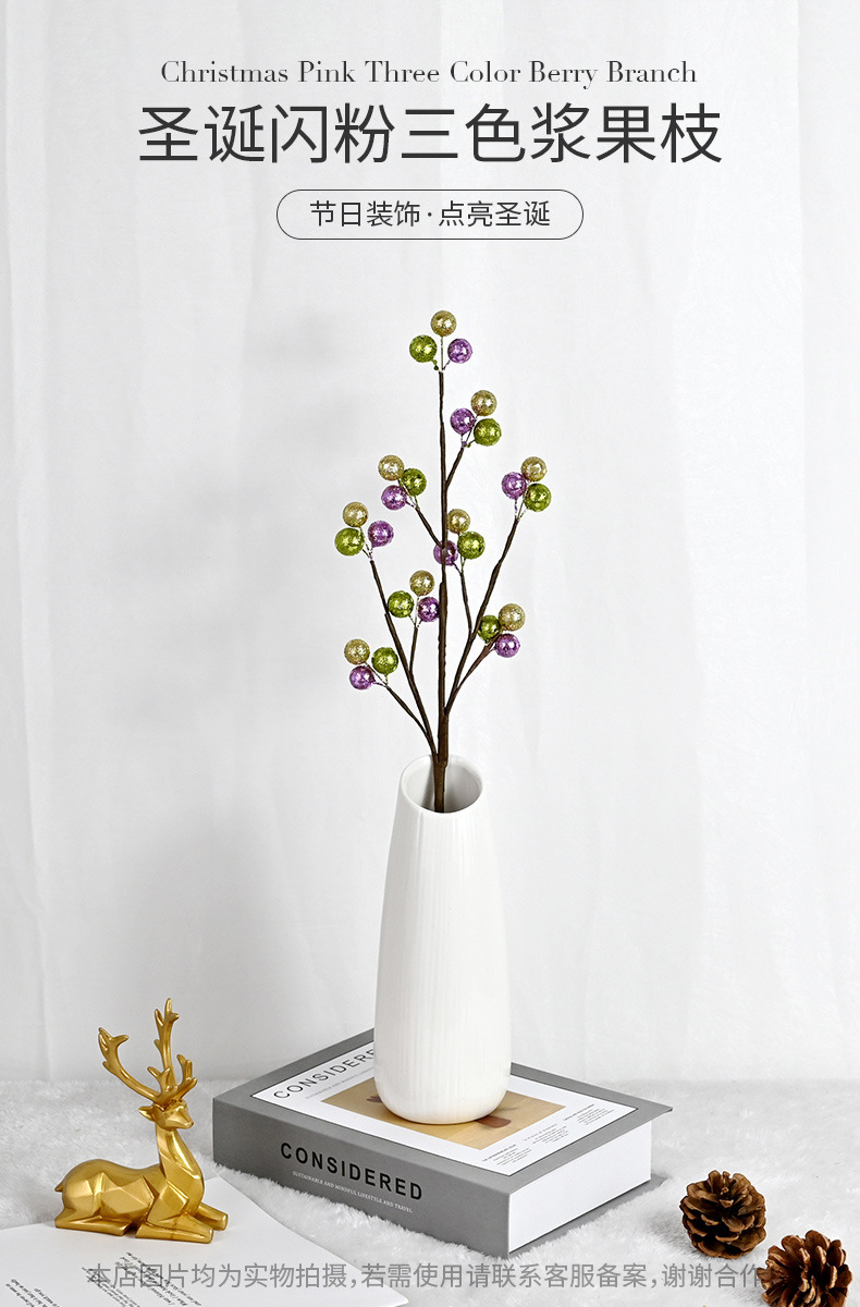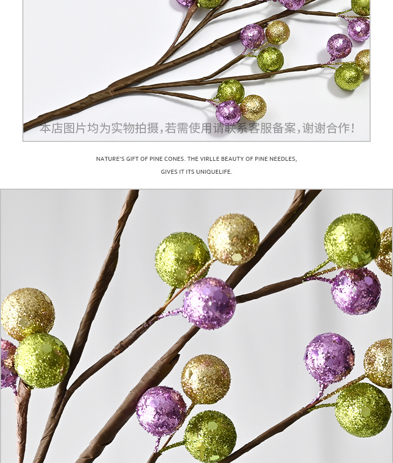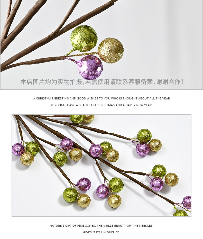 Envío Gratis, brillo transfronterizo, rama de bayas de tres colores, decoración navideña para el hogar, fotografía, suministros hechos a mano DIY, bayas brillantes