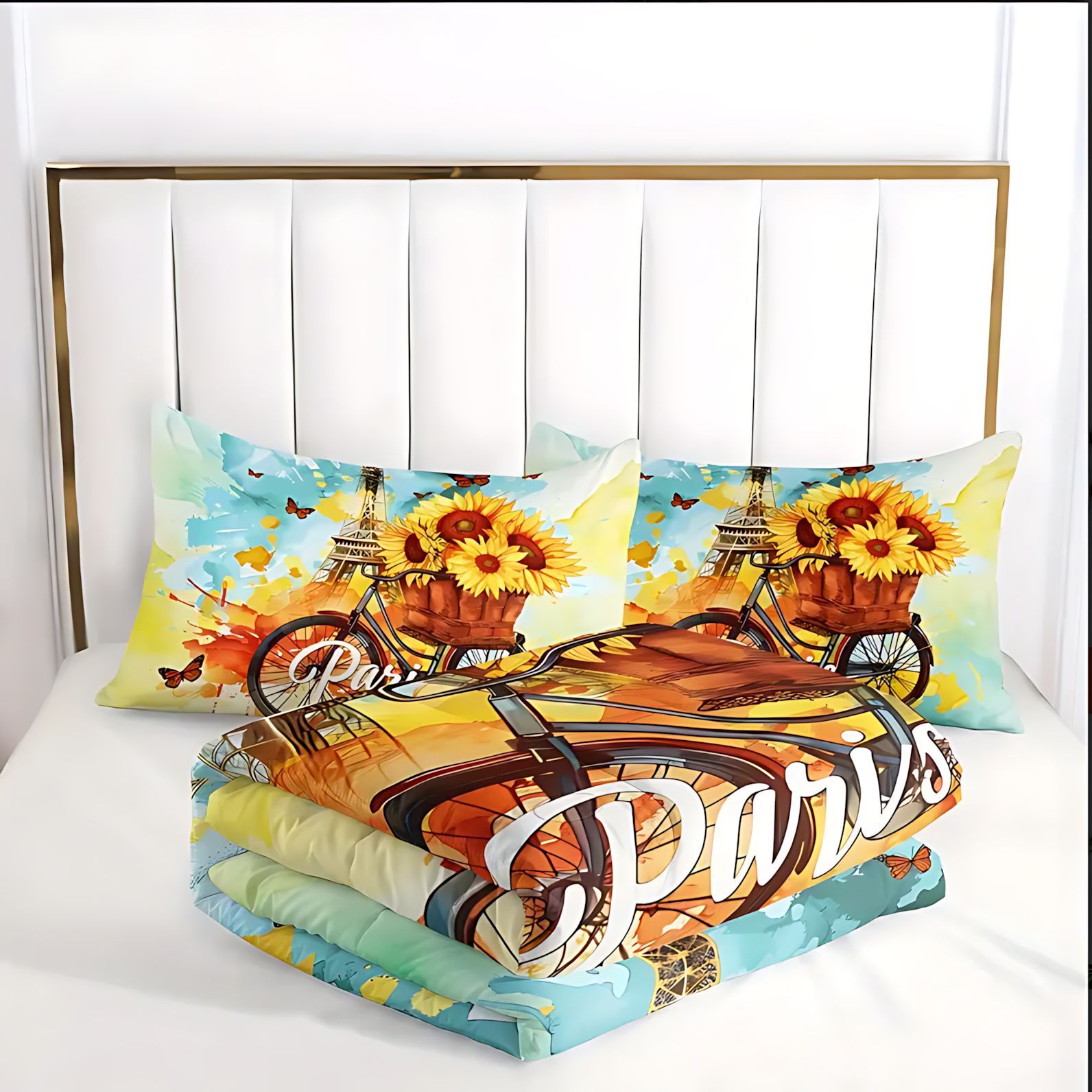 TEMU / JIT transfronterizo direccional girasol tema de impresión digital HD 180gms colcha colchón conjunto de almohada