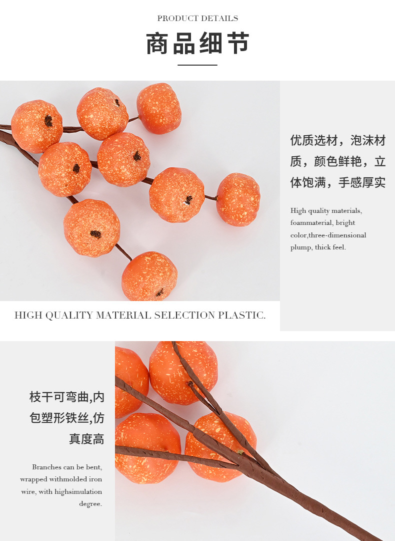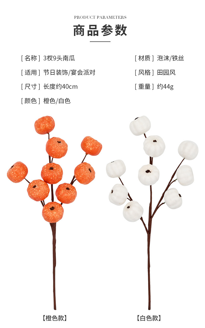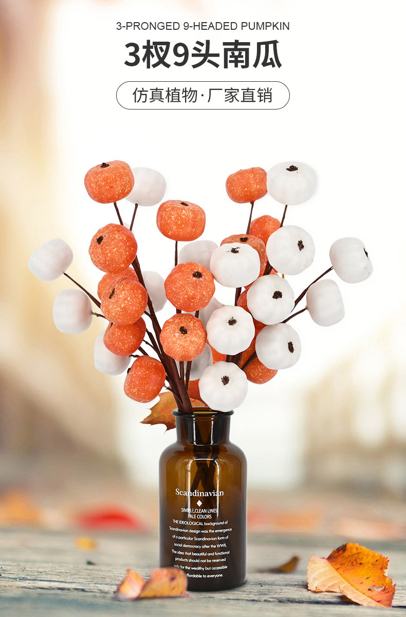 Ramillete de calabaza simulada de tres puntas y nueve cabezas, accesorios de diseño de escena para fiesta de Halloween, disfraz de vacaciones, calabaza de Halloween